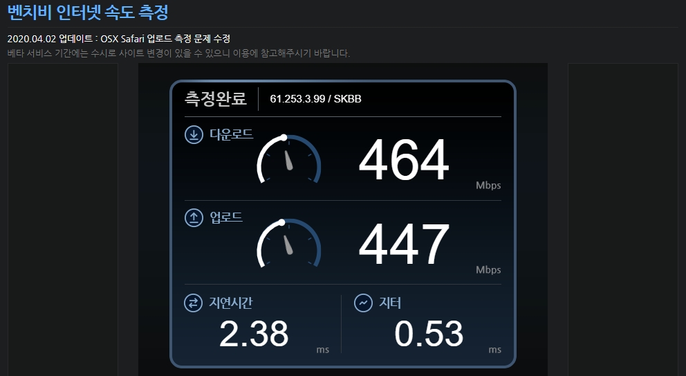 1) 인터넷 속도 테스트 (SKB 500M 라이트 기가랜)