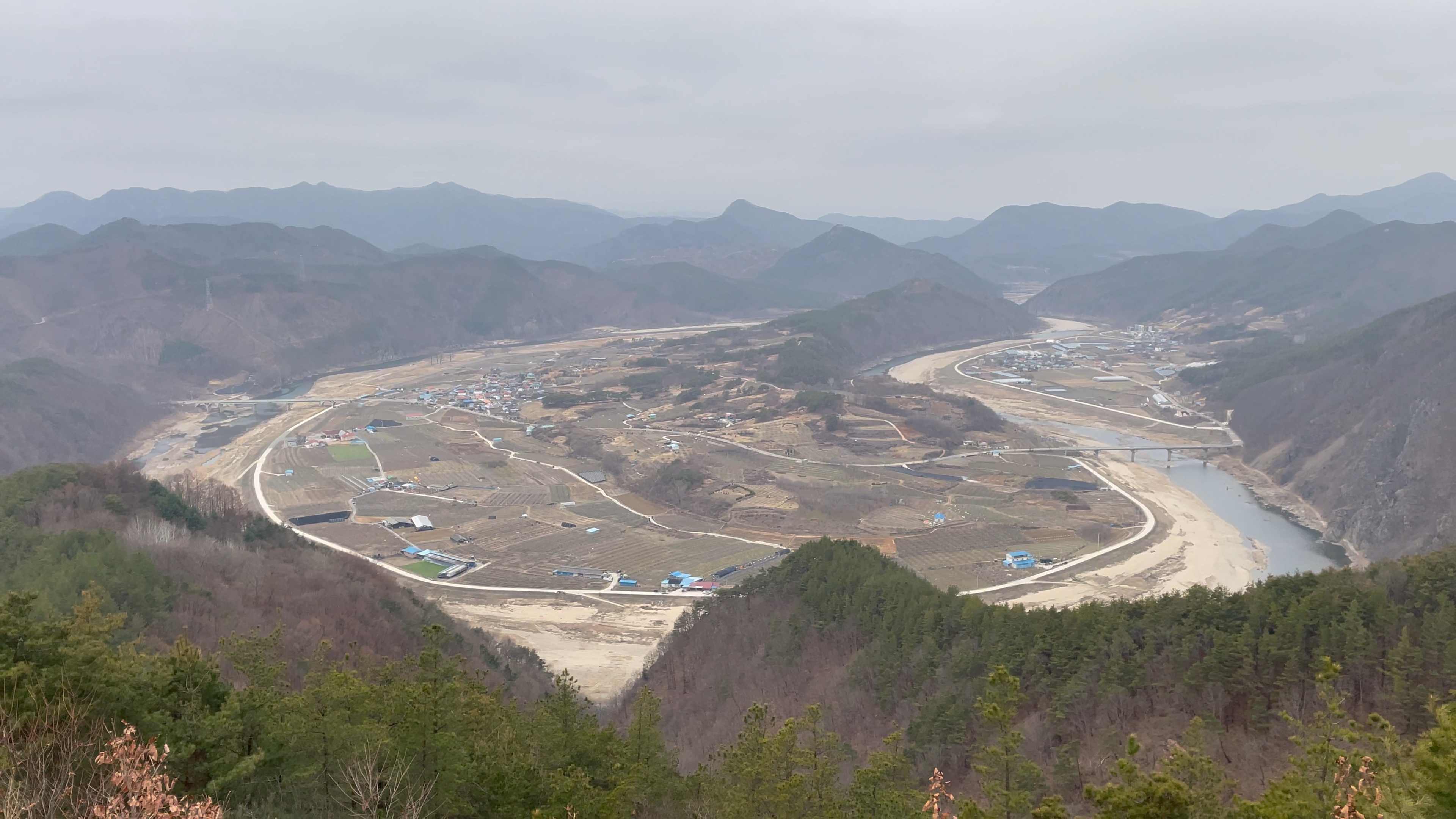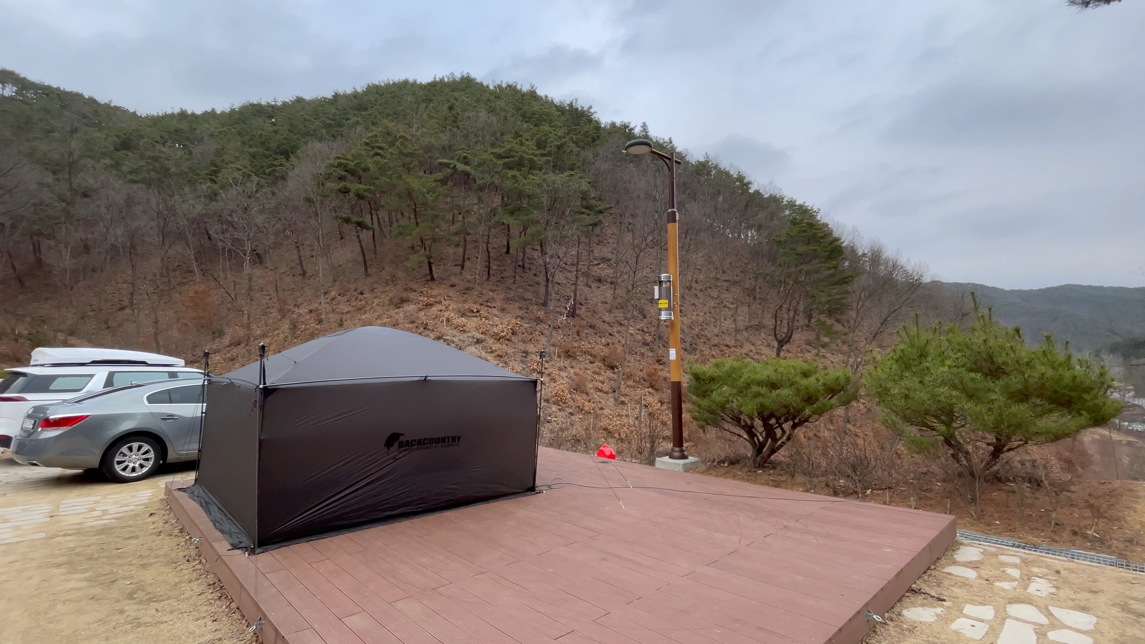 A4 야영데크에서 바라본 풍경. 아직 겨울이 채 지나지 않아 푸른 숲의 모습은 전혀 느껴지지 않는다.