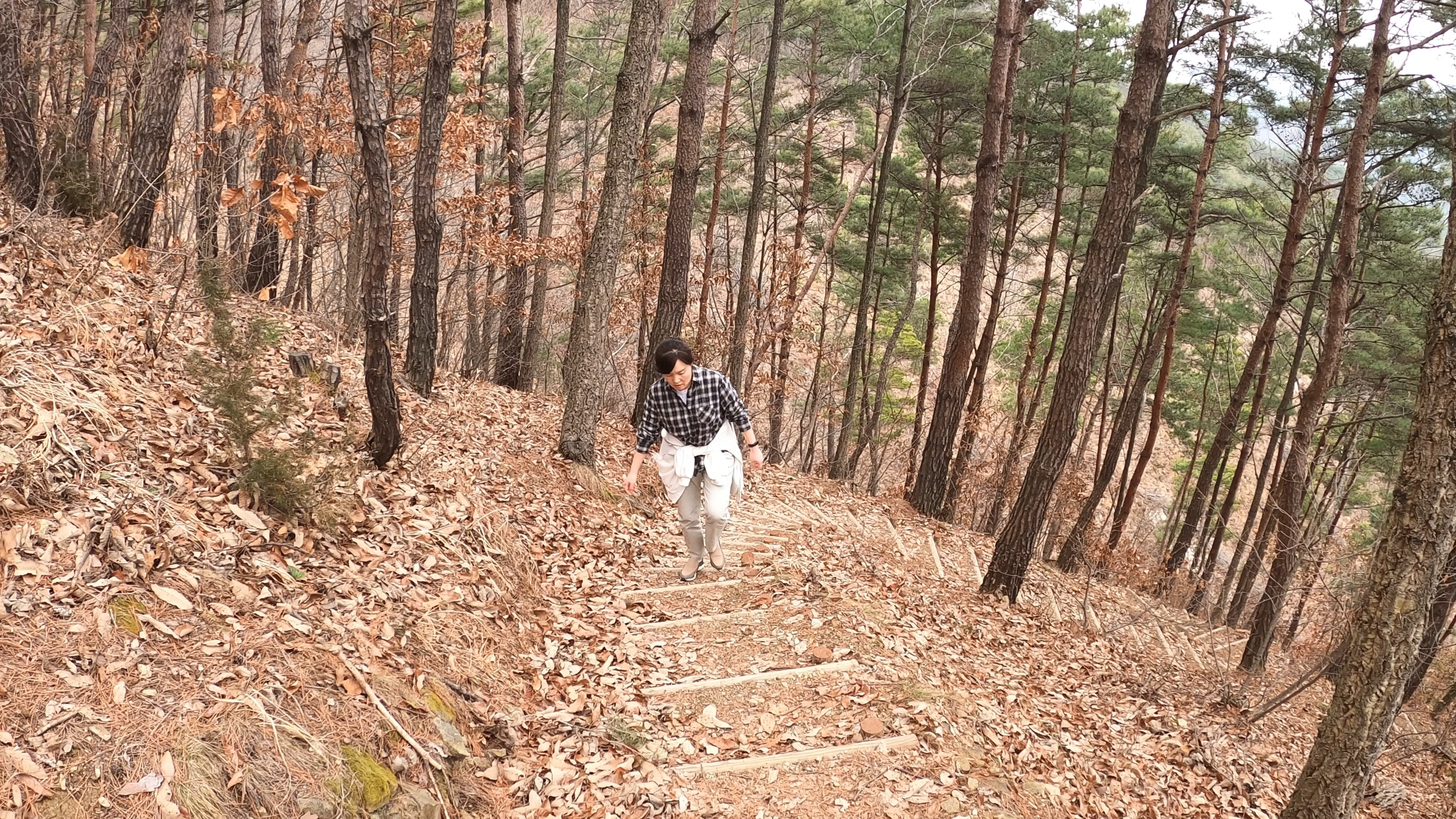 산책을 하기 위해 등산로를 찾아보니 숲속의 집 쪽에 향로봉 정산으로 향하는 등산로가 있다고 해서 찾아갔다. 사진에 보이는 산길이 바로 그 등산로