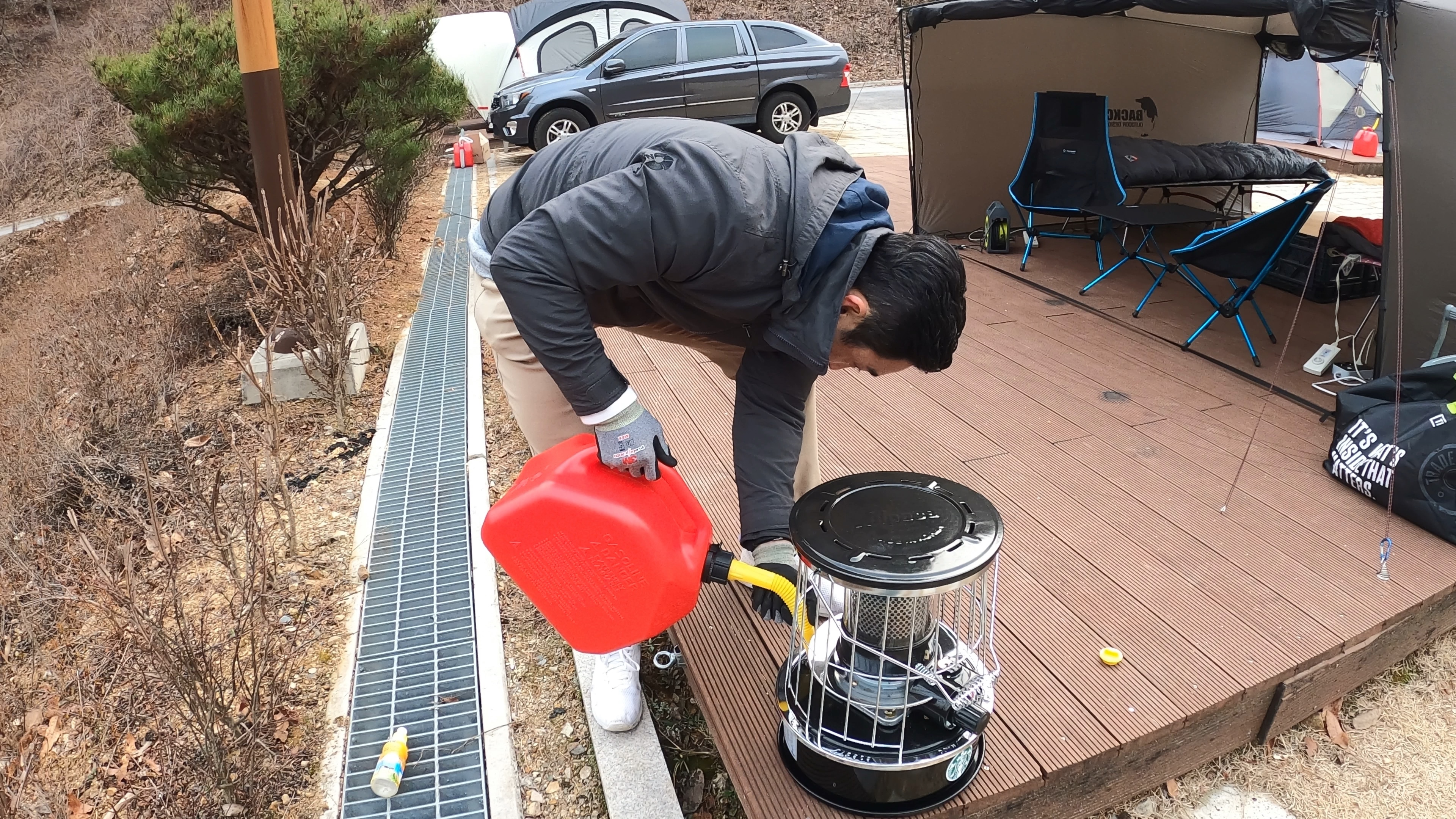 두번째로 사용하는 태서 77A 난로. 이 작은 난로 하나가 우리가족 겨울 캠핑때 제 몫을 단단히 한다.