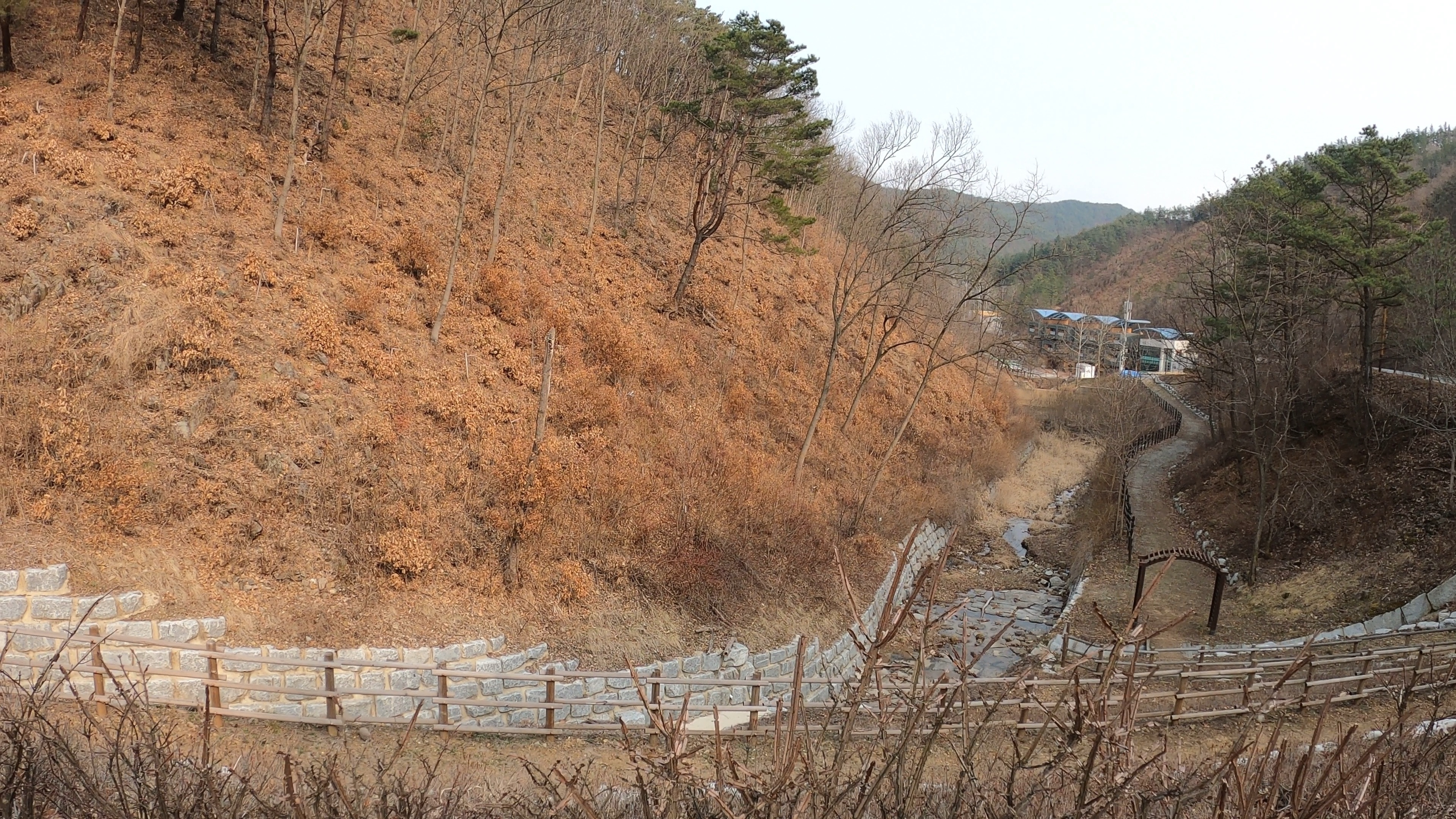 A4 야영데크에서 바라본 풍경. 아직 겨울이 채 지나지 않아 푸른 숲의 모습은 전혀 느껴지지 않는다.