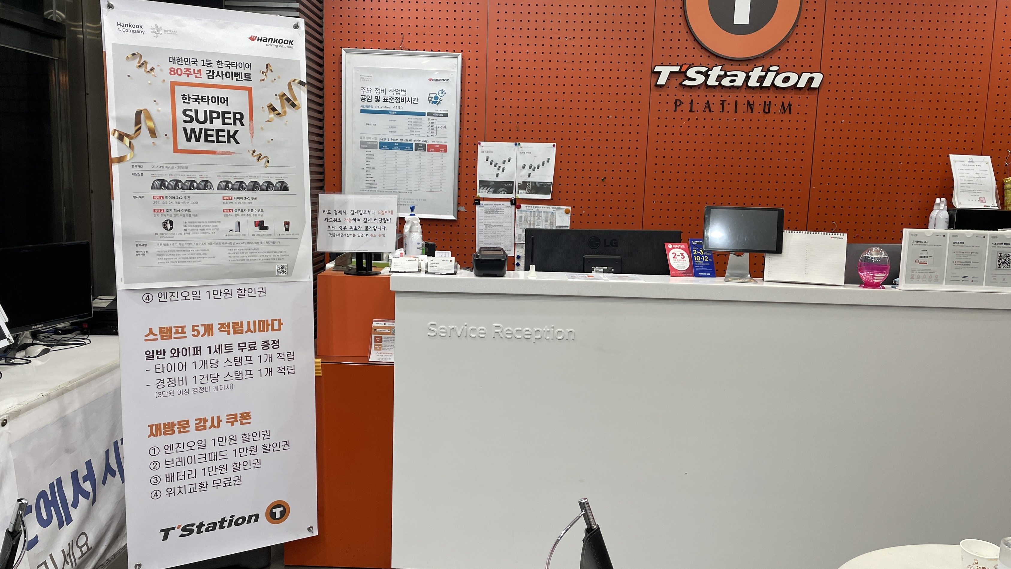 4월 안에 쿠폰을 써야 하는터라, 집 인근의 티스테이션 서초점으로 주말에 예약해두었으나, 평일 퇴근길 저녁에 들러도 괜찮냐고 물어보니 타이어가 이미 도착해있고 저녁 8시전에만 오면 된다 하여 퇴근후 직행하여 티스테이션 도착.