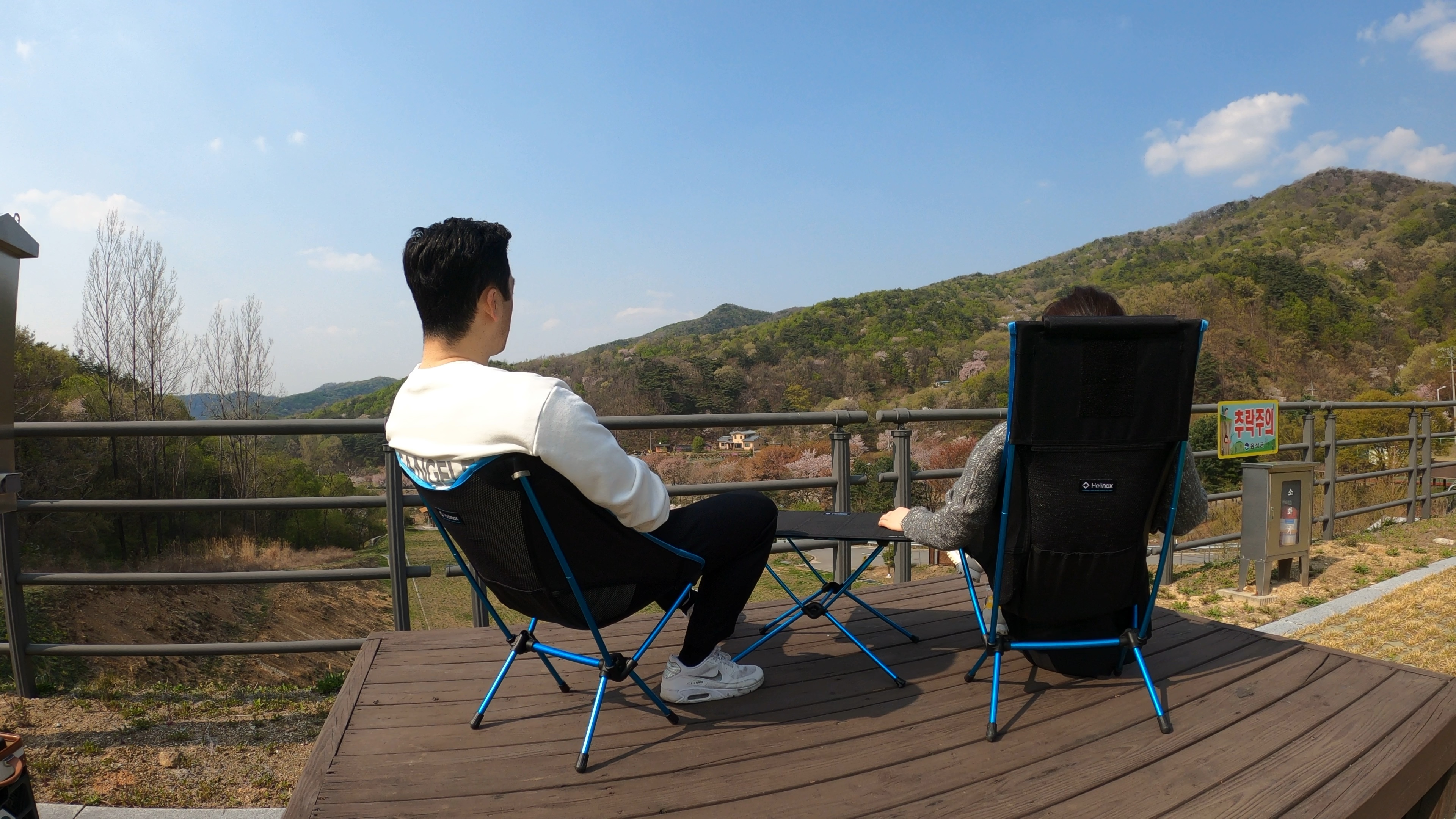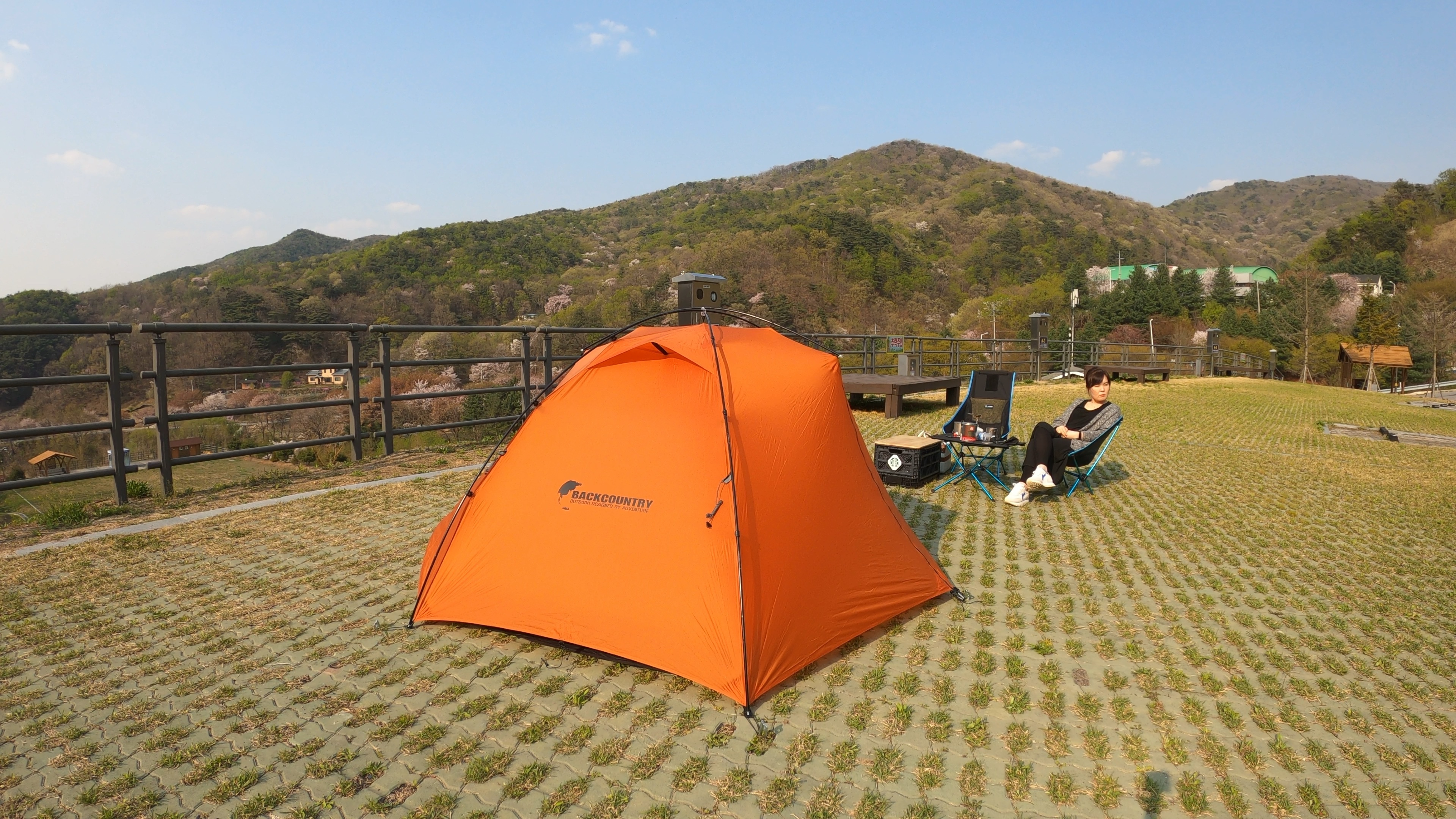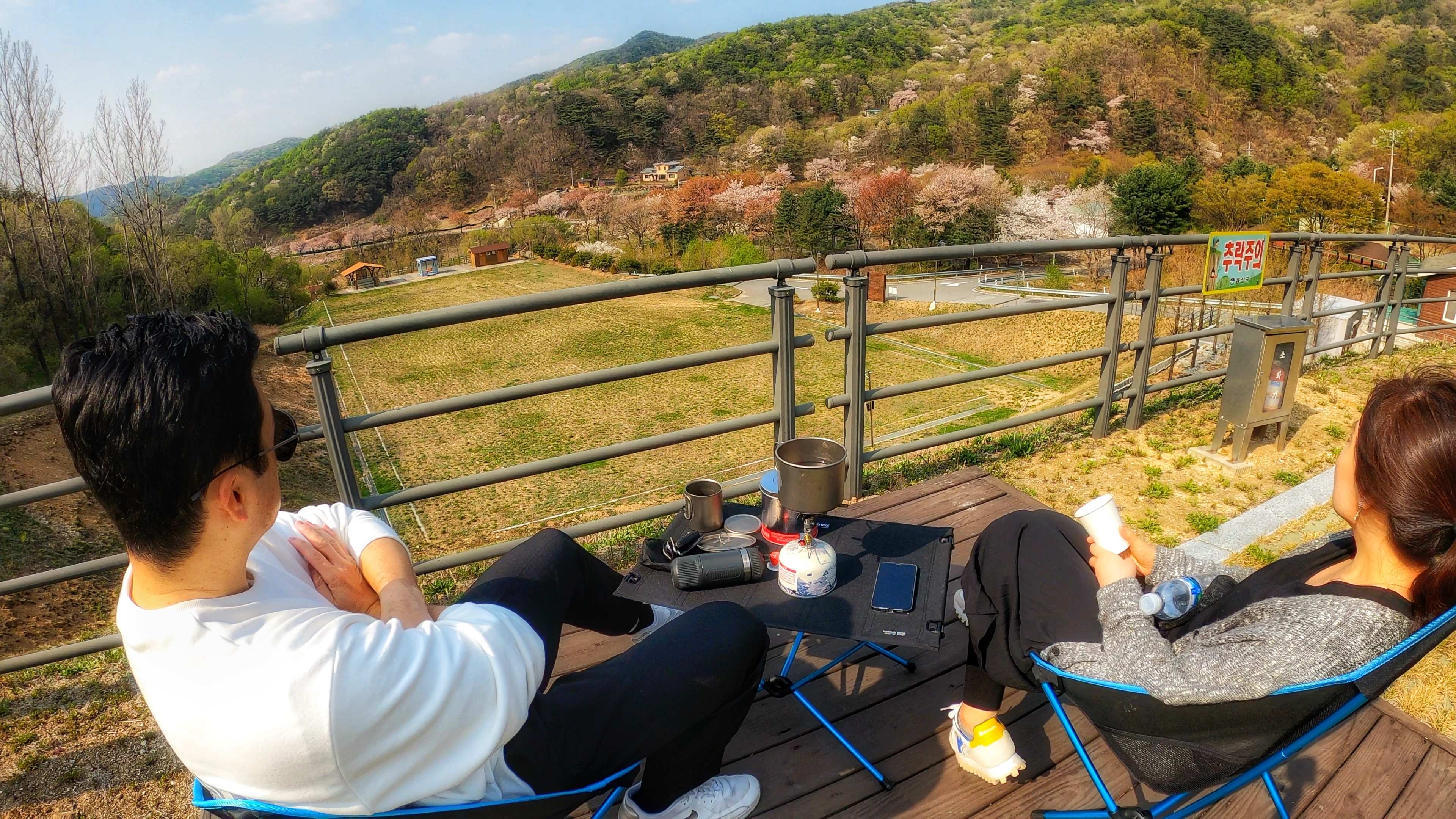예약한 곳은 A구역 4번 사이트. 사이트 넓이가 너무 넓어서 당황. 바로 앞 난간으로 내려다 보이는 풍경이 제법 이뻤다. 일단 텐트 치기 전에 커피 한잔.