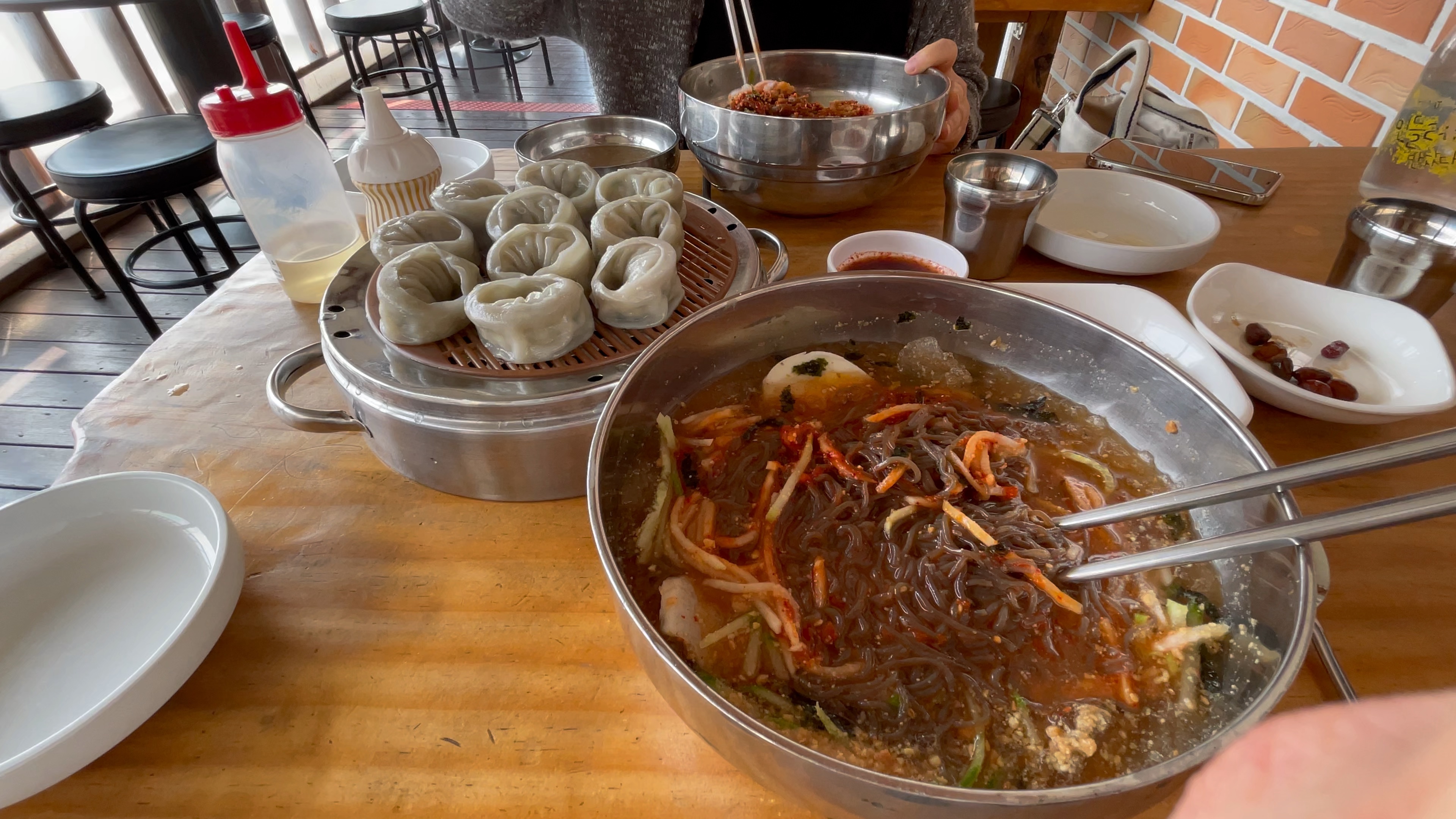 막국수만 먹기엔 심심해서 만두를 시켰으나, 막국수 양이 많아서 만두를 거의 먹지 못했다.