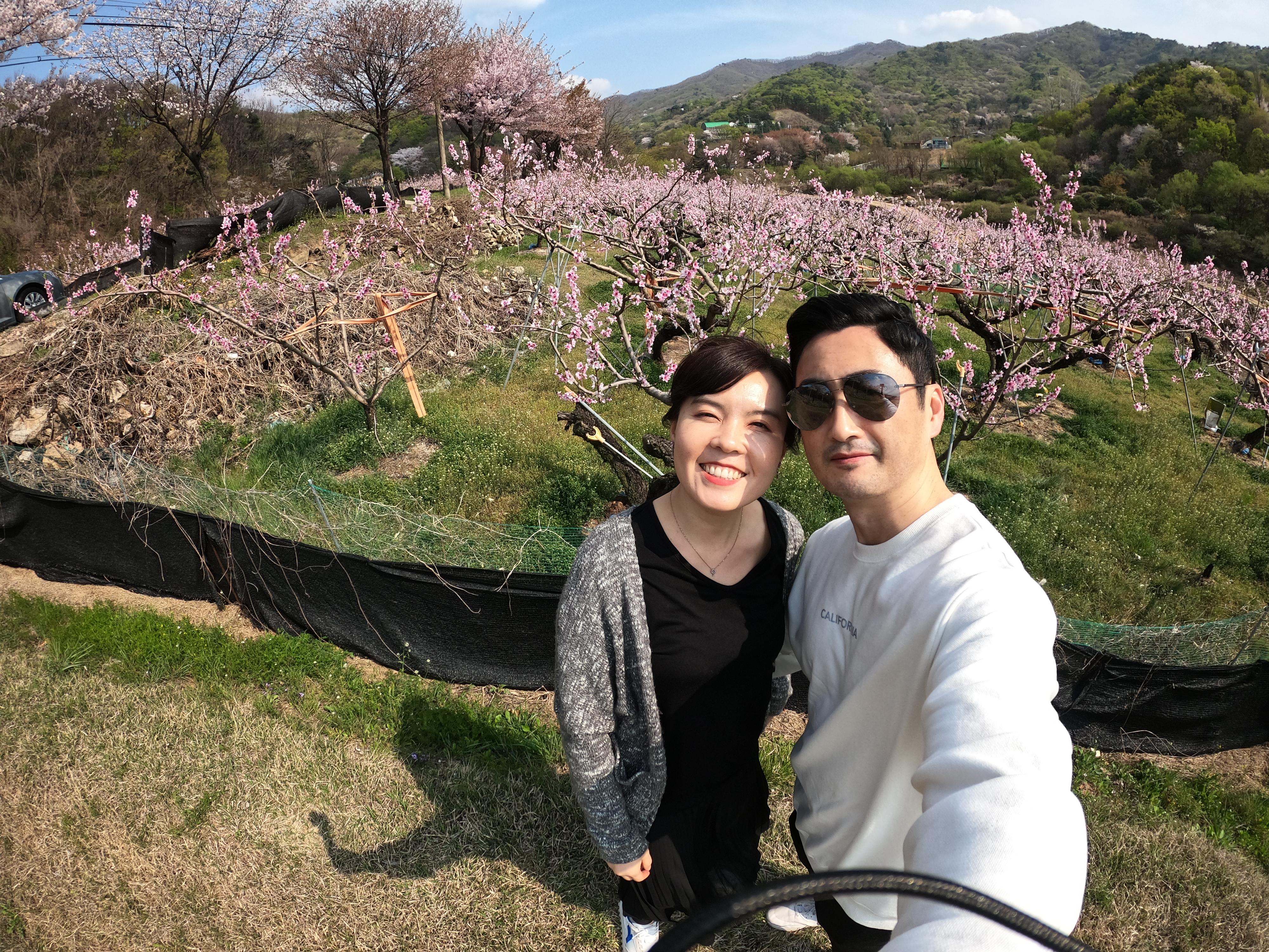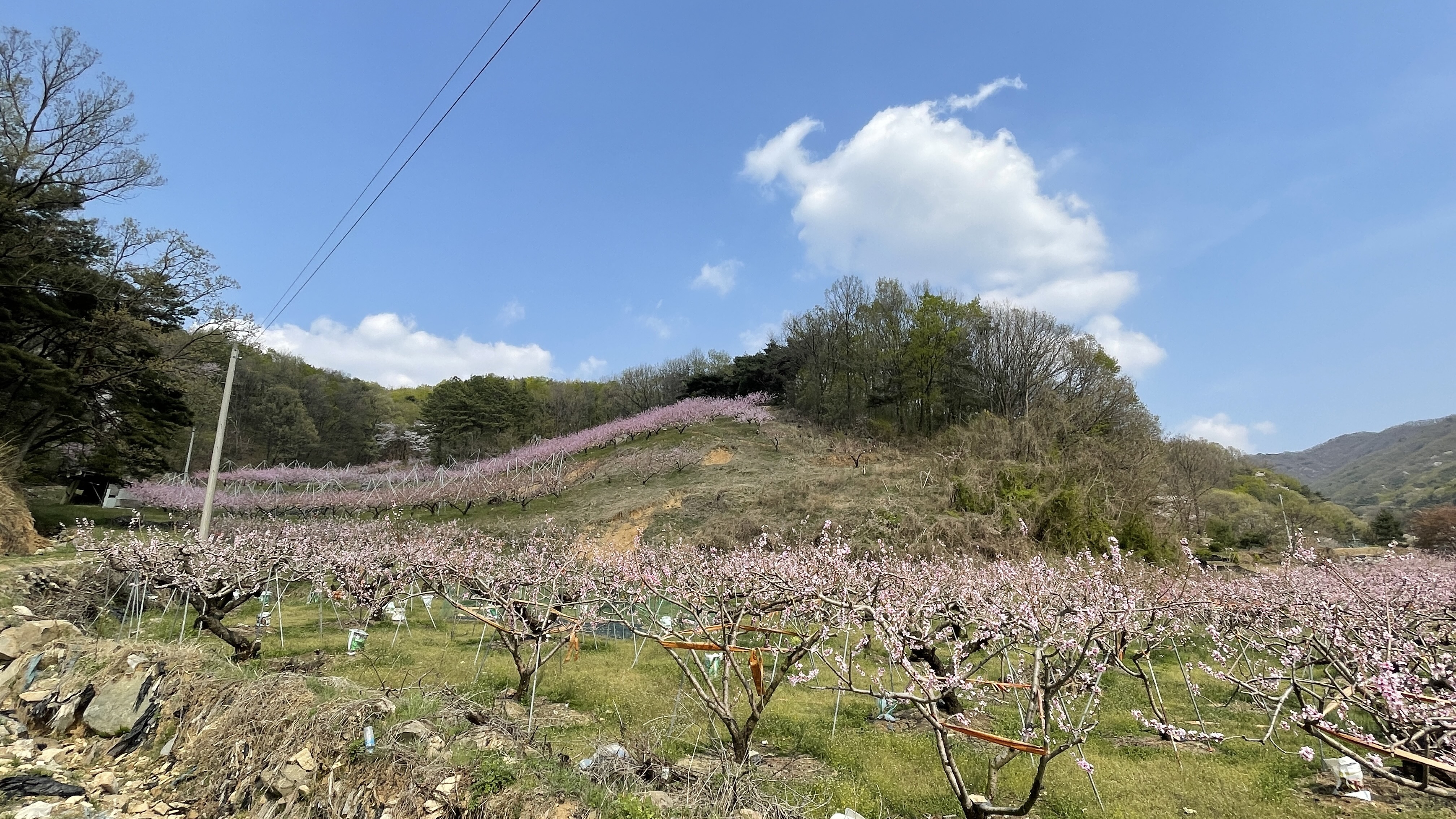 벚꽃길에서 시간을 보내고 휴양림으로 올라가는 길에 발견한 복사꽃 밭.