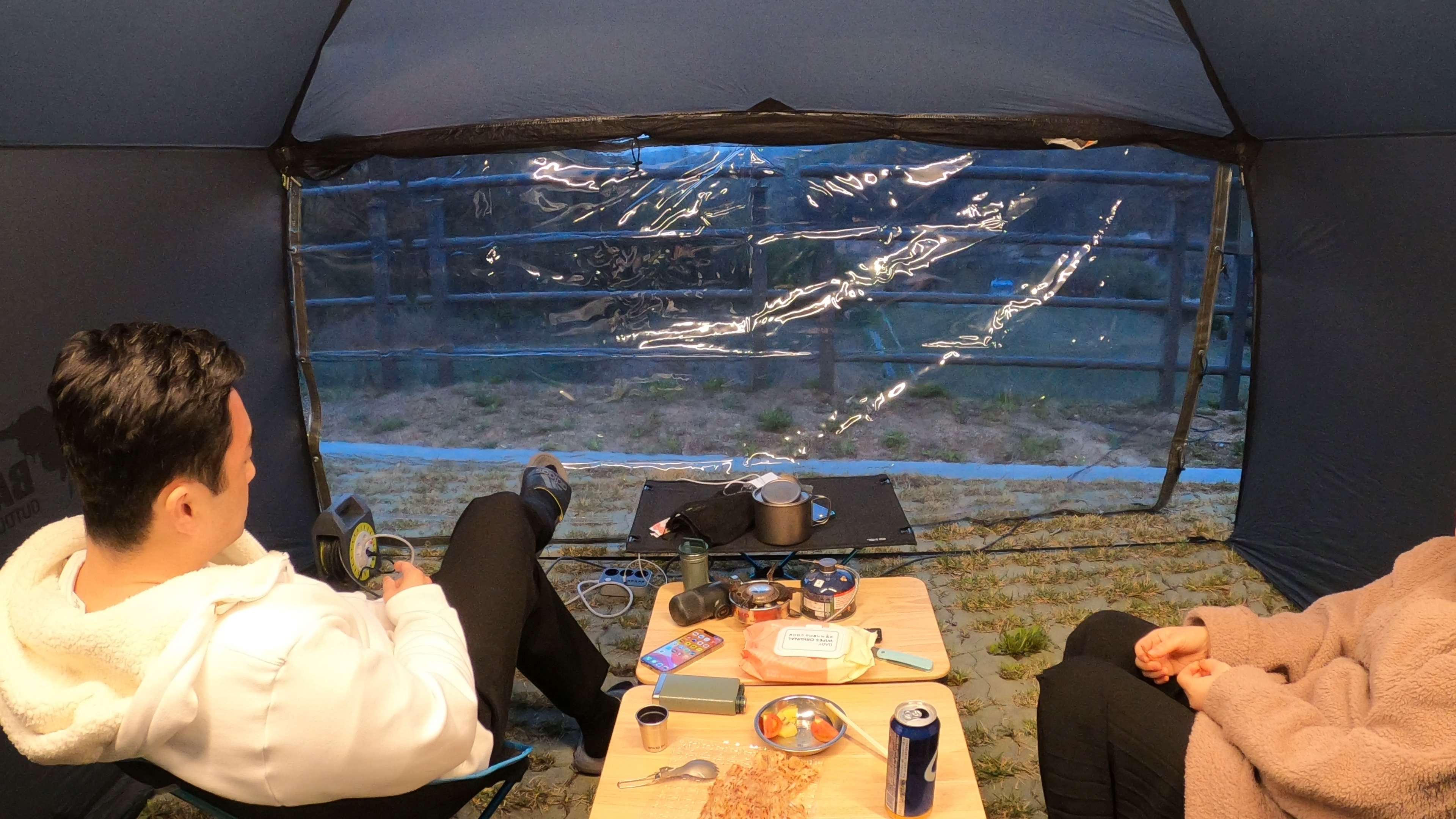 조금 앉아 있다 보니 쌀쌀해져서 쉘터를 결국 치기로 했다.
