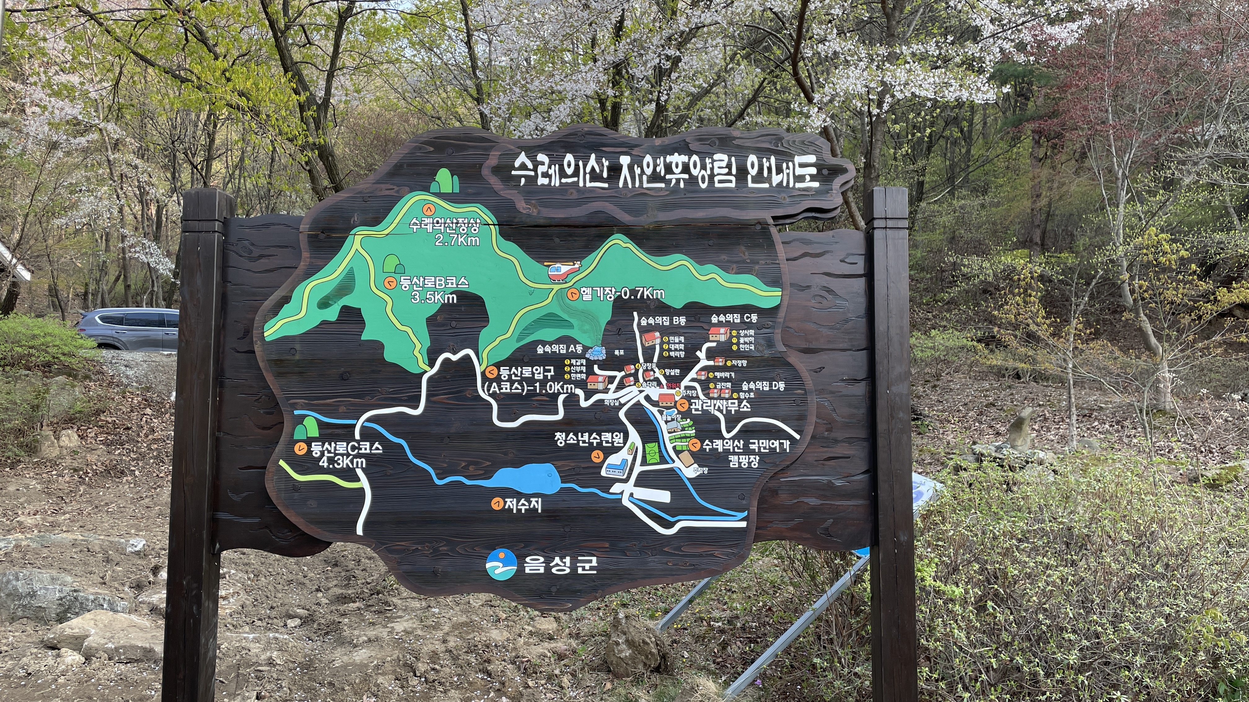 4월 10일. 오래전에 예약해둔 캠핑장이 있어 길을 나섰다. 충북 음성에 위치한 수레의산 자연휴양림