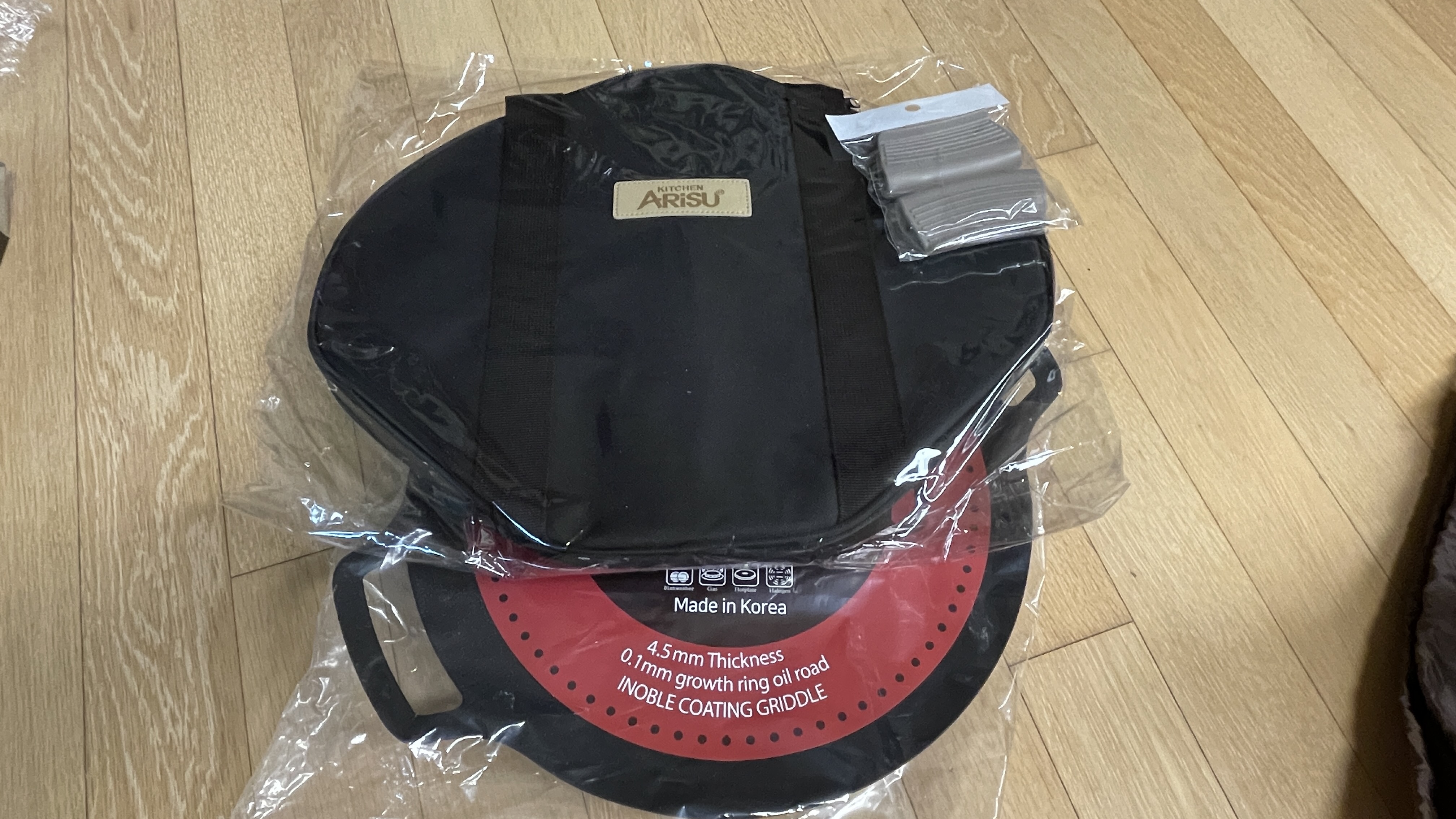 사이즈는 S,M,L 세가지가 있어서 S 를 사야겠다고 맘 먹었는데, 왕초 백마 후라이팬이 작은 사이즈니, 그리들은 큰거 사라는 와이프의 어명에 따라 아리수 그리들 중에서 L사이즈를 들이게 되었다.