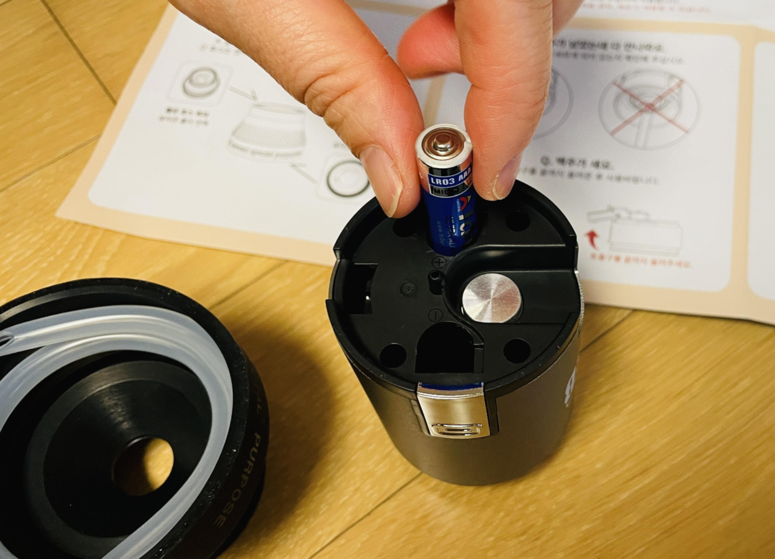 내장 배터리로 충전하는 거였으면 좋았을뻔. AA 배터리가 두개가 들어간다.