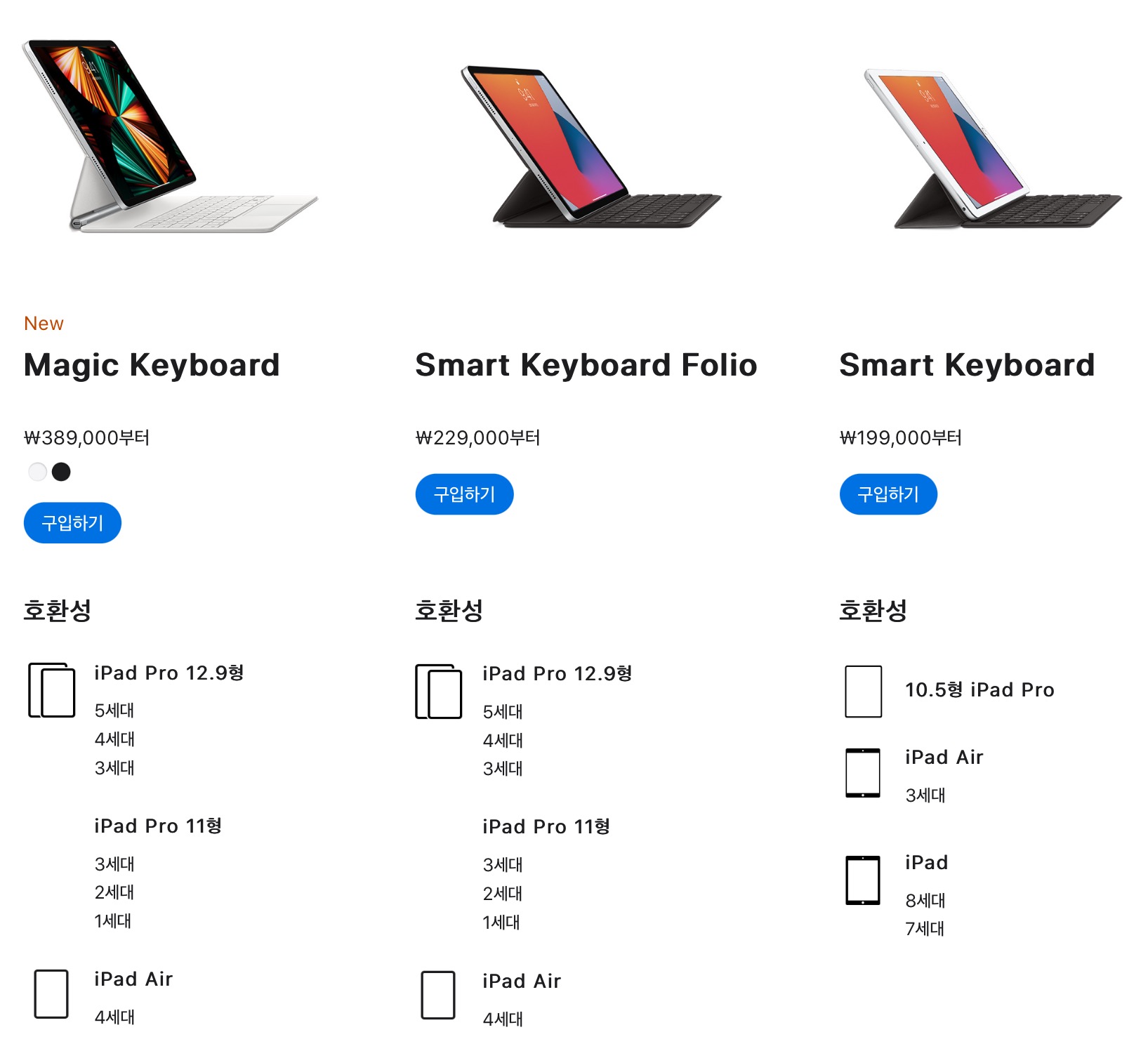 아이패드 프로 11형 3세대의 경우 스마트키보드 폴리오 아니면 매직키보드 둘중 하나를 구입할수 밖에 없는데, 17만원 차이…ㅜ.ㅜ