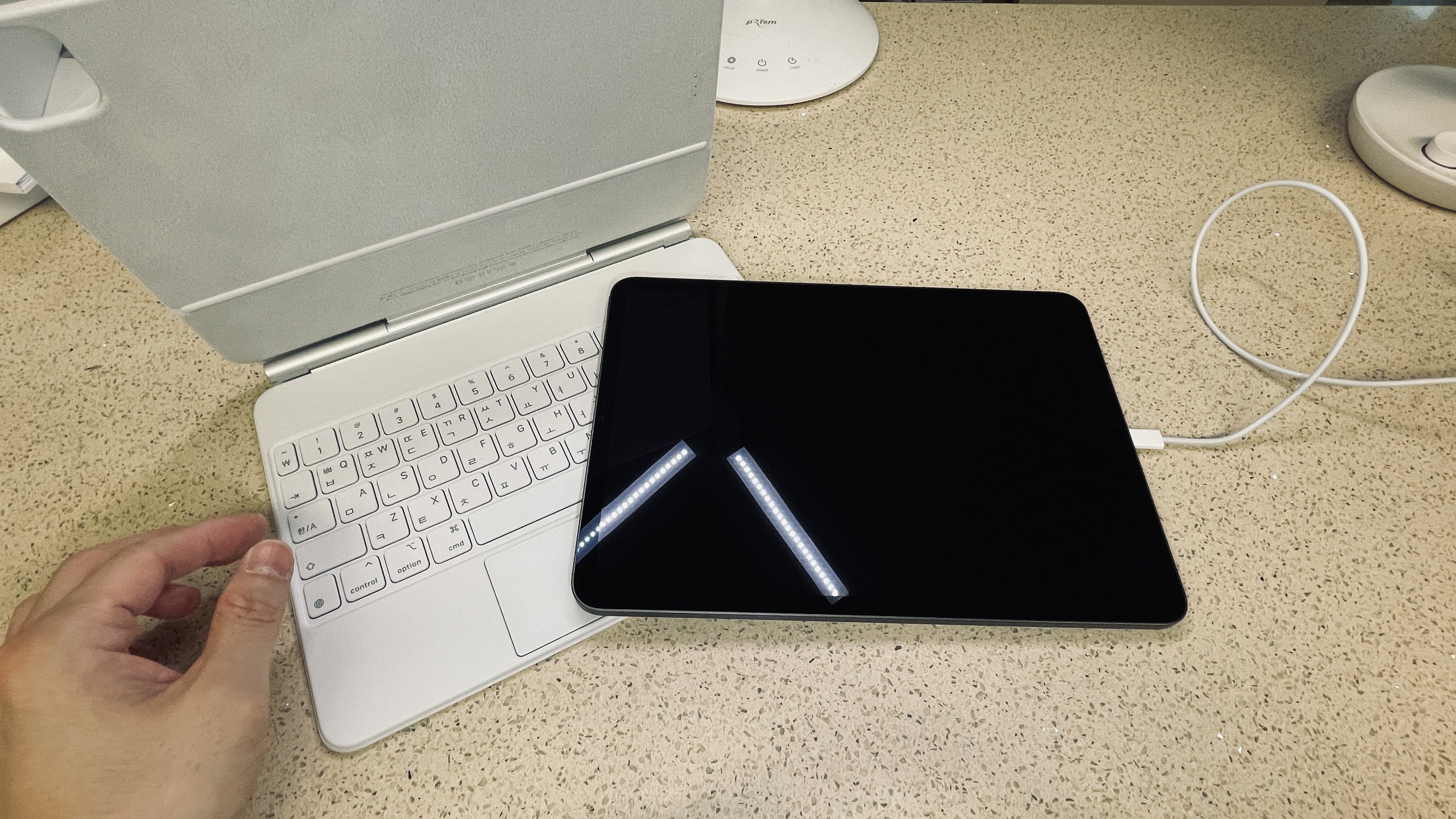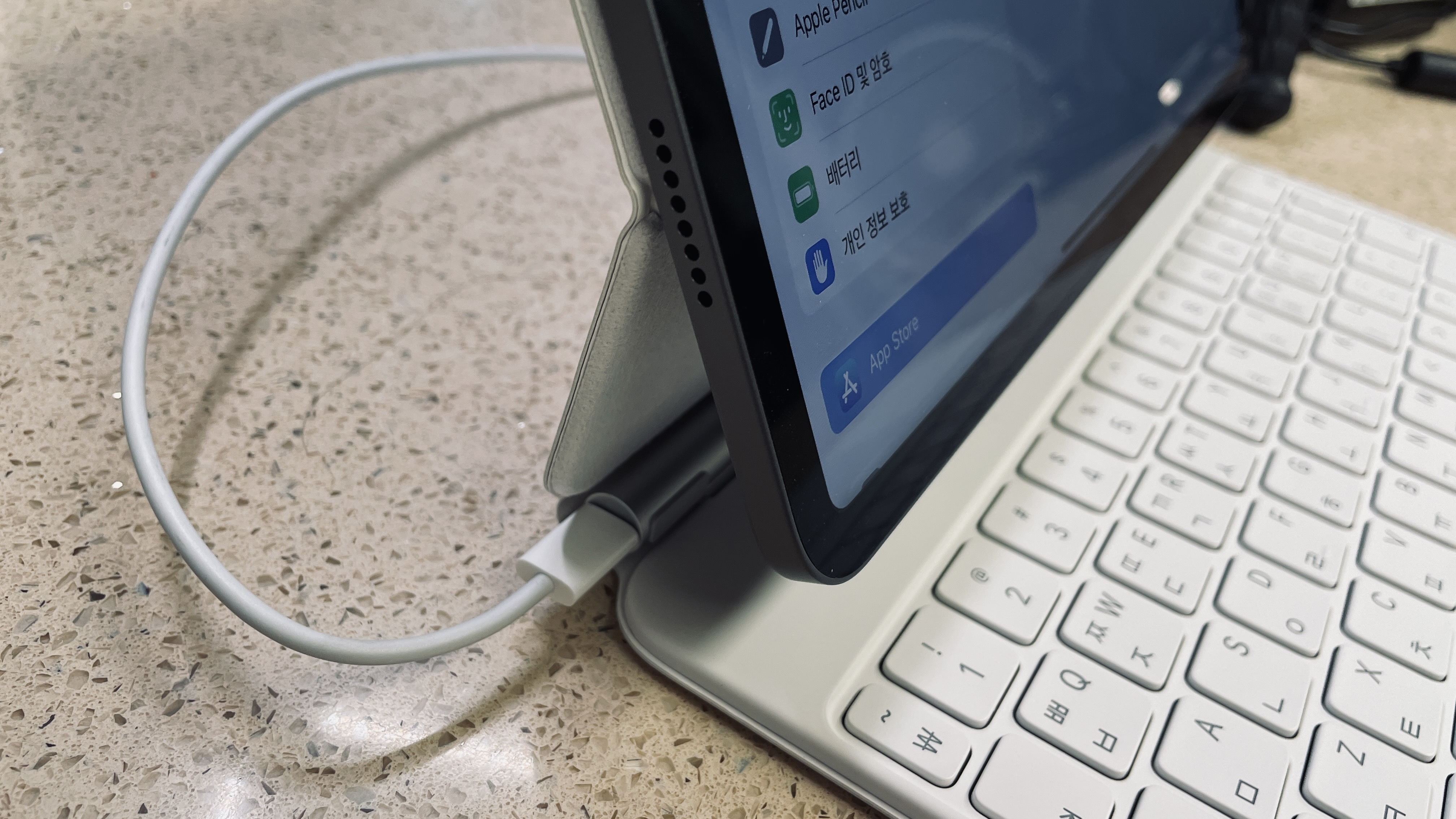 매직키보드 옆구멍으로 충전해보니 충전도 잘 되고..