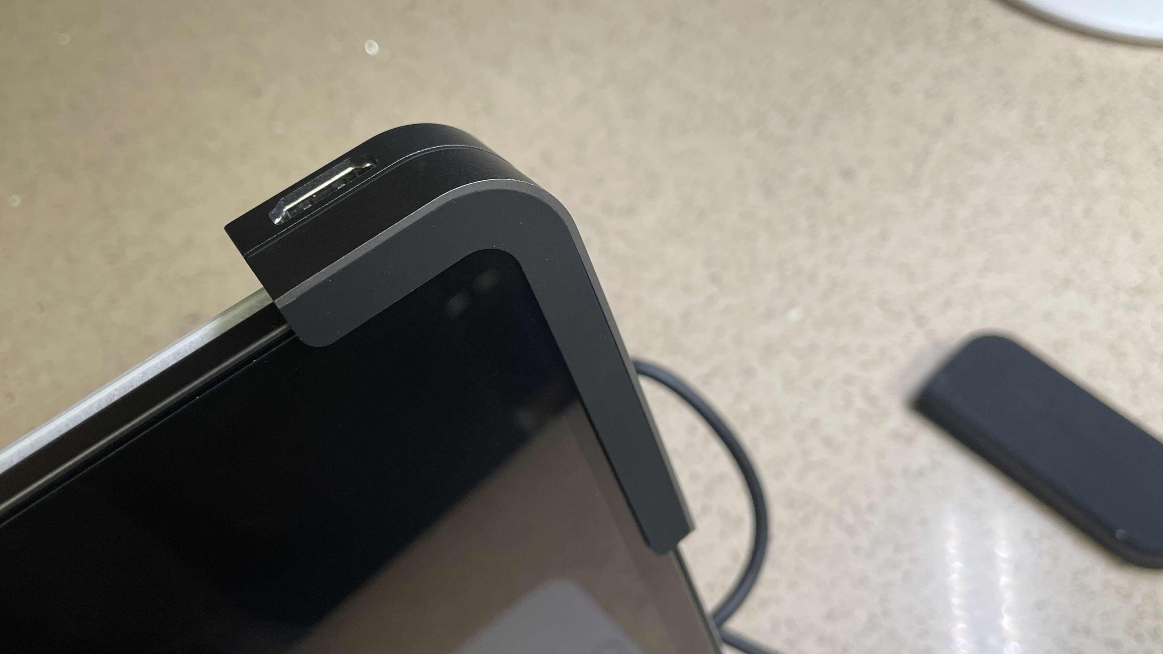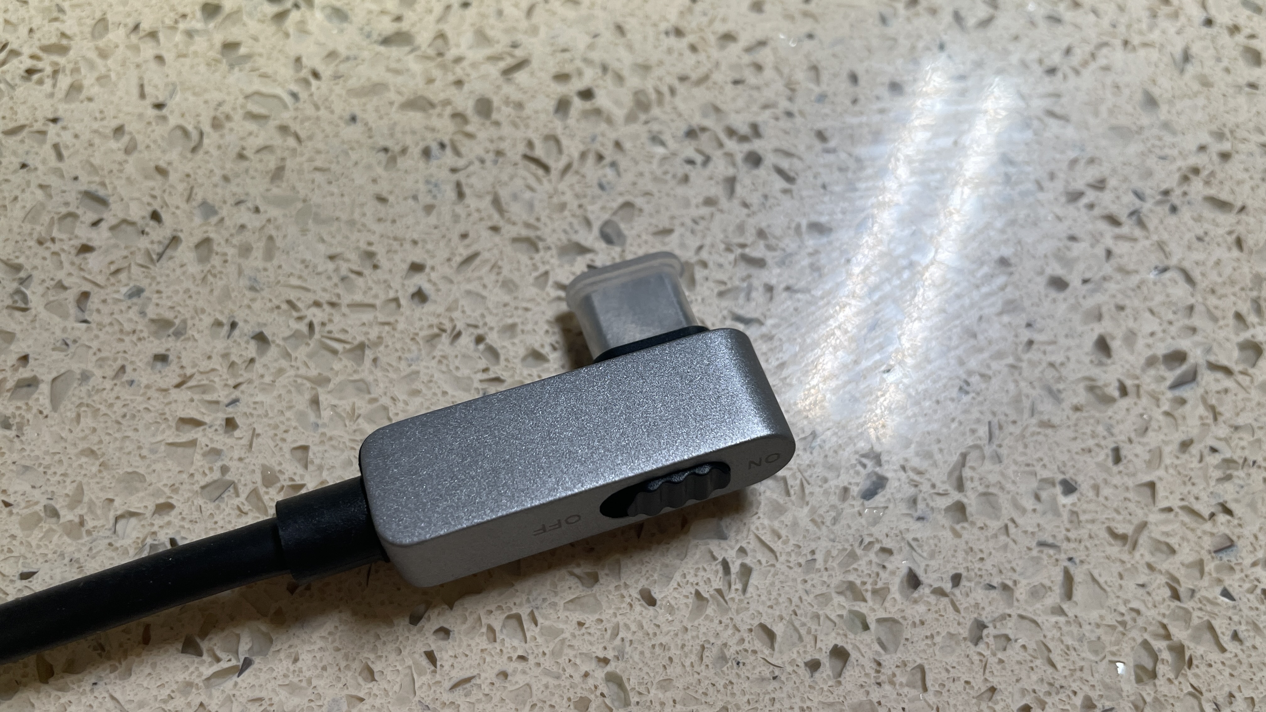 본체에 연결하는 USB-C단자. 온오프 스위치가 있어 전류 사용을 방지한다.