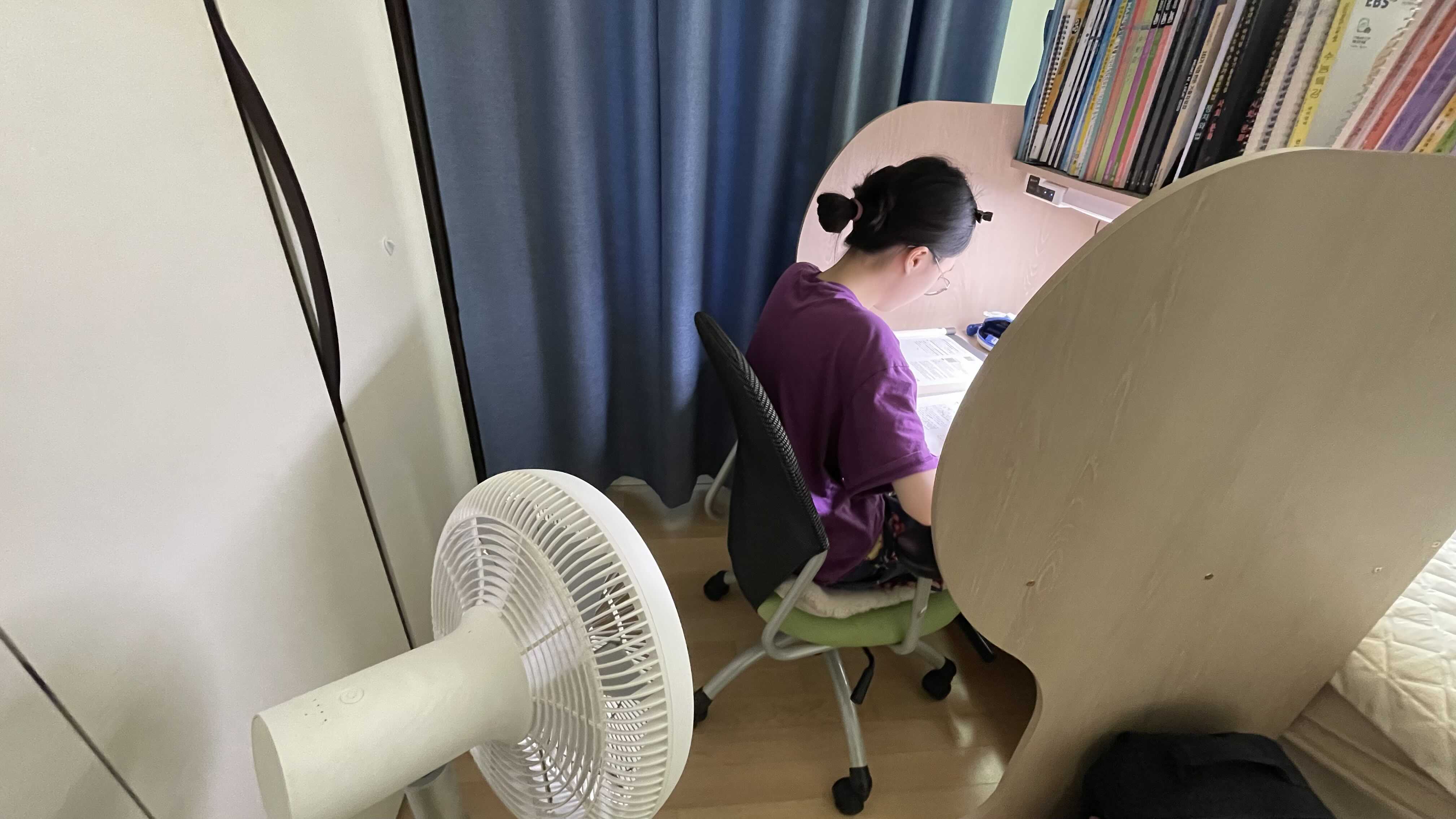 무더운 여름. 에어컨이 각방에 설치되어 있지 않다 보니 어쩔수 없이 안장으로 책상이동.