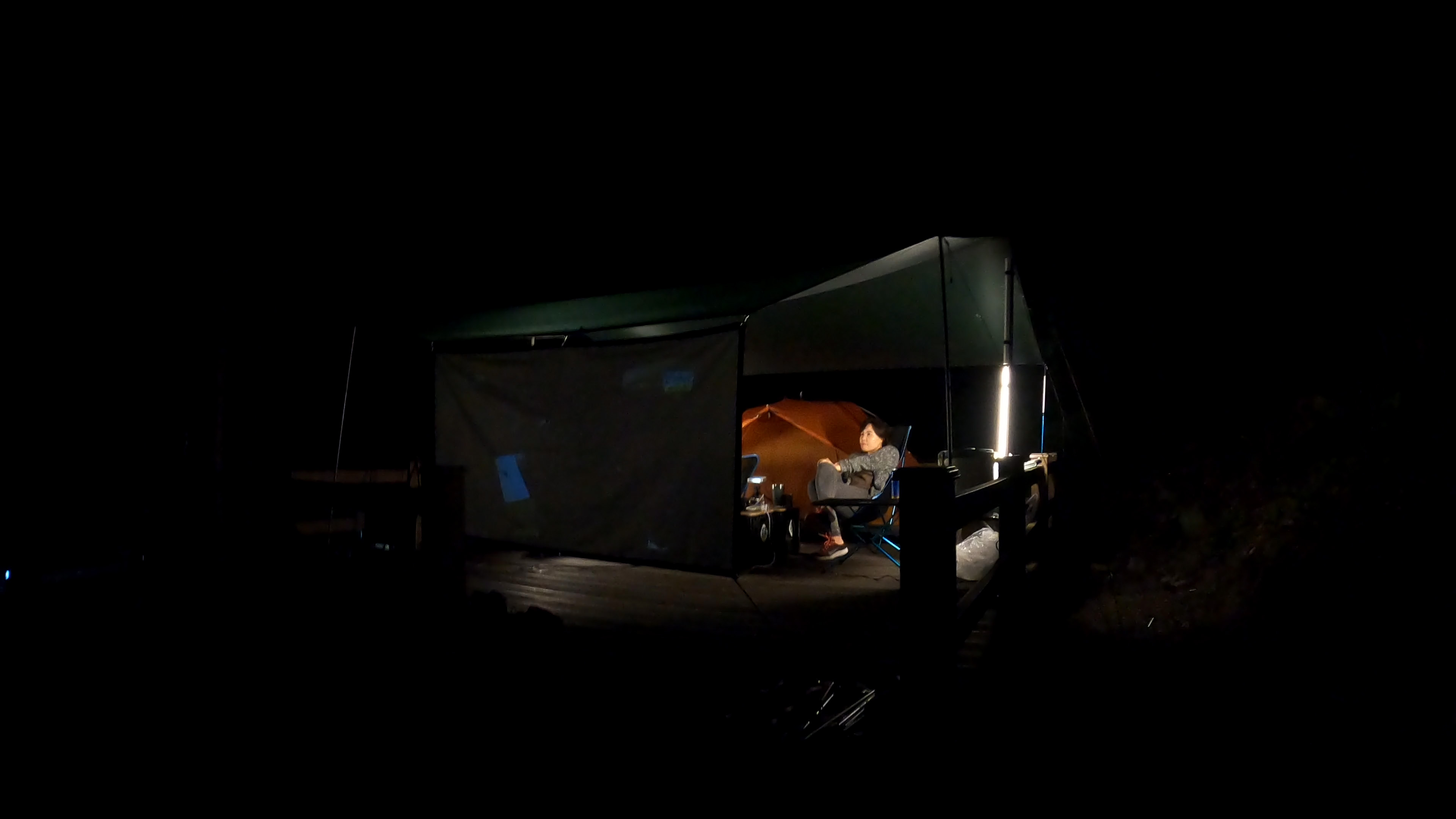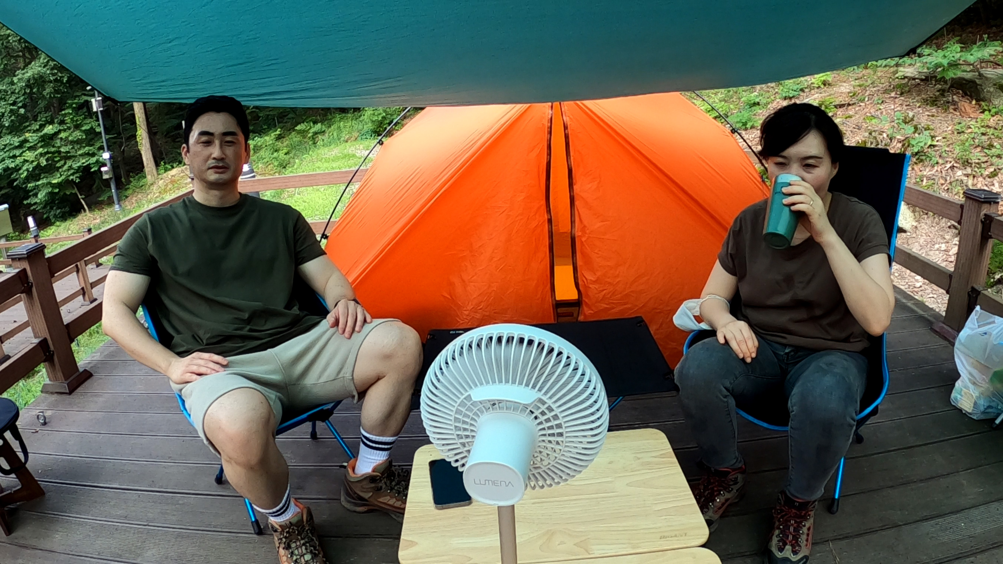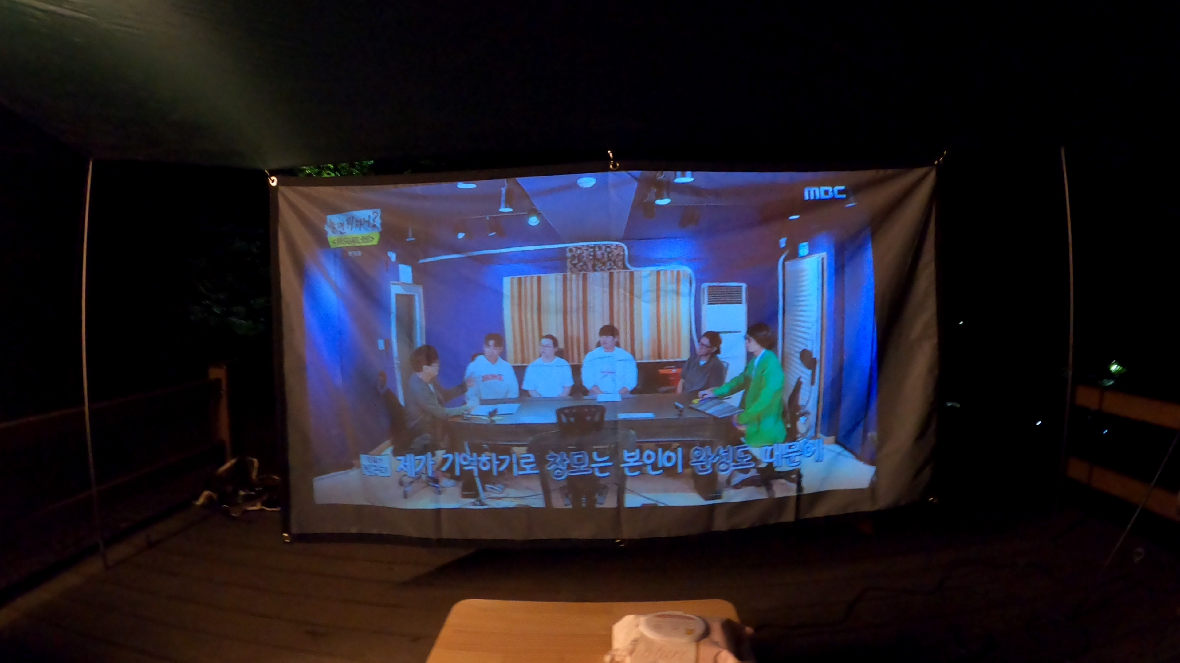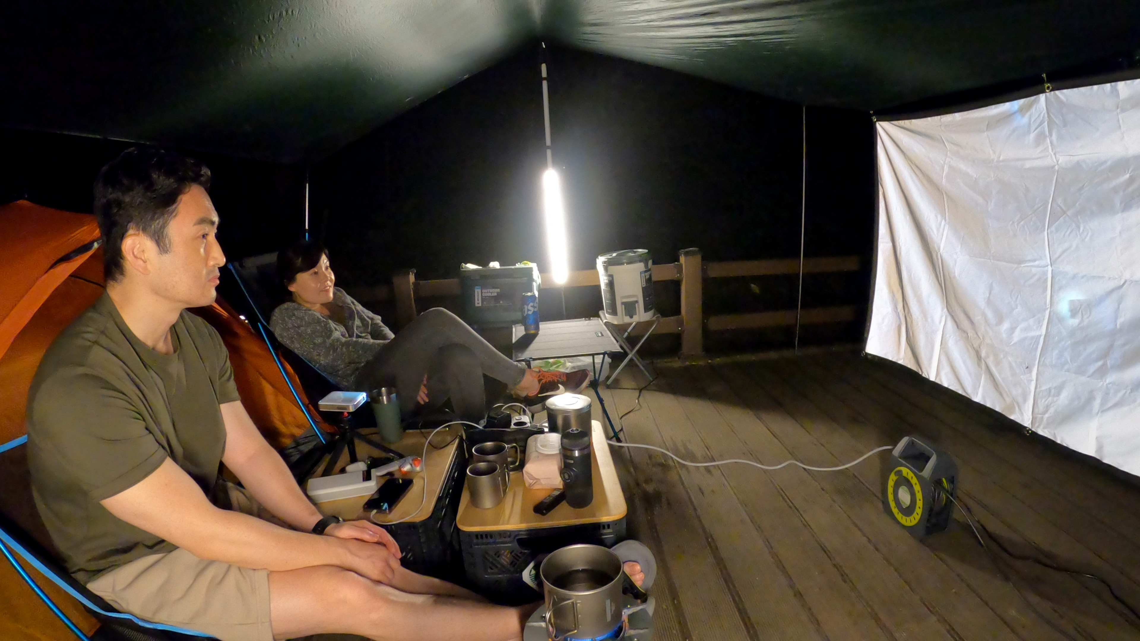 이렇게 한시간이 넘게 캠핑장에서 티비를 보고 있으니 부부사이의 대화시간이 줄어드는 단점이 있긴 하나, 그래도 긴 저녁시간을 보내기에 유용한 아이템이다.