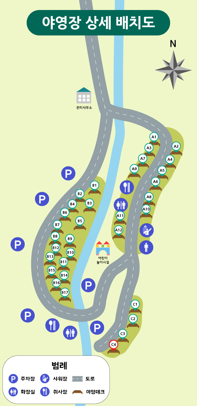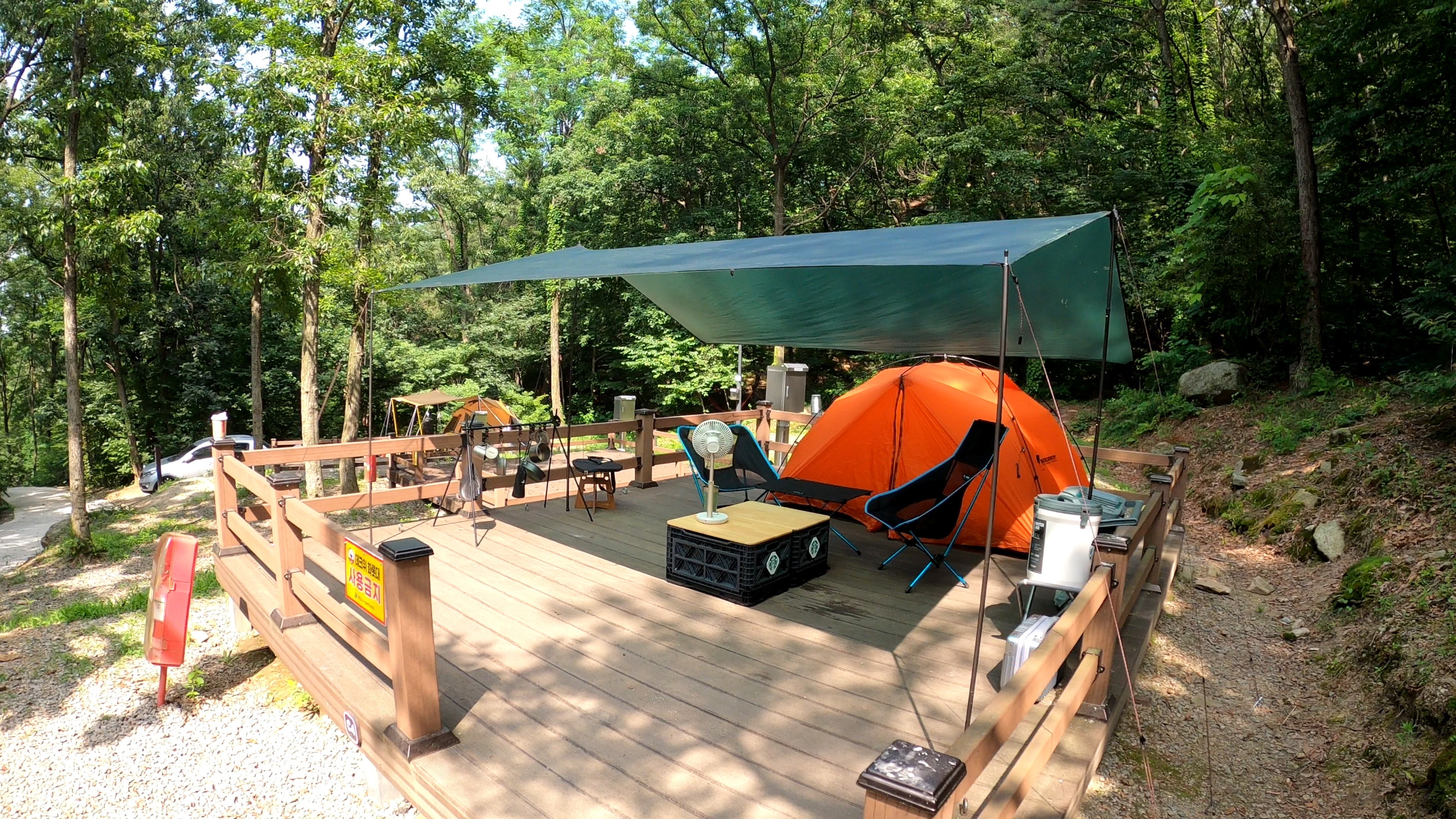 예약한 사이트는 C구역의 맨 안쪽 사이트인 C4 데크로 화장실과 취사장과 가깝기도 하고 맨 끝에 있어 한적하게 즐기기에 좋은 자리였다. 게다가 C3 구역은 사회적 거리두기로 비어있었던 터라 더더욱 조용했던 곳.