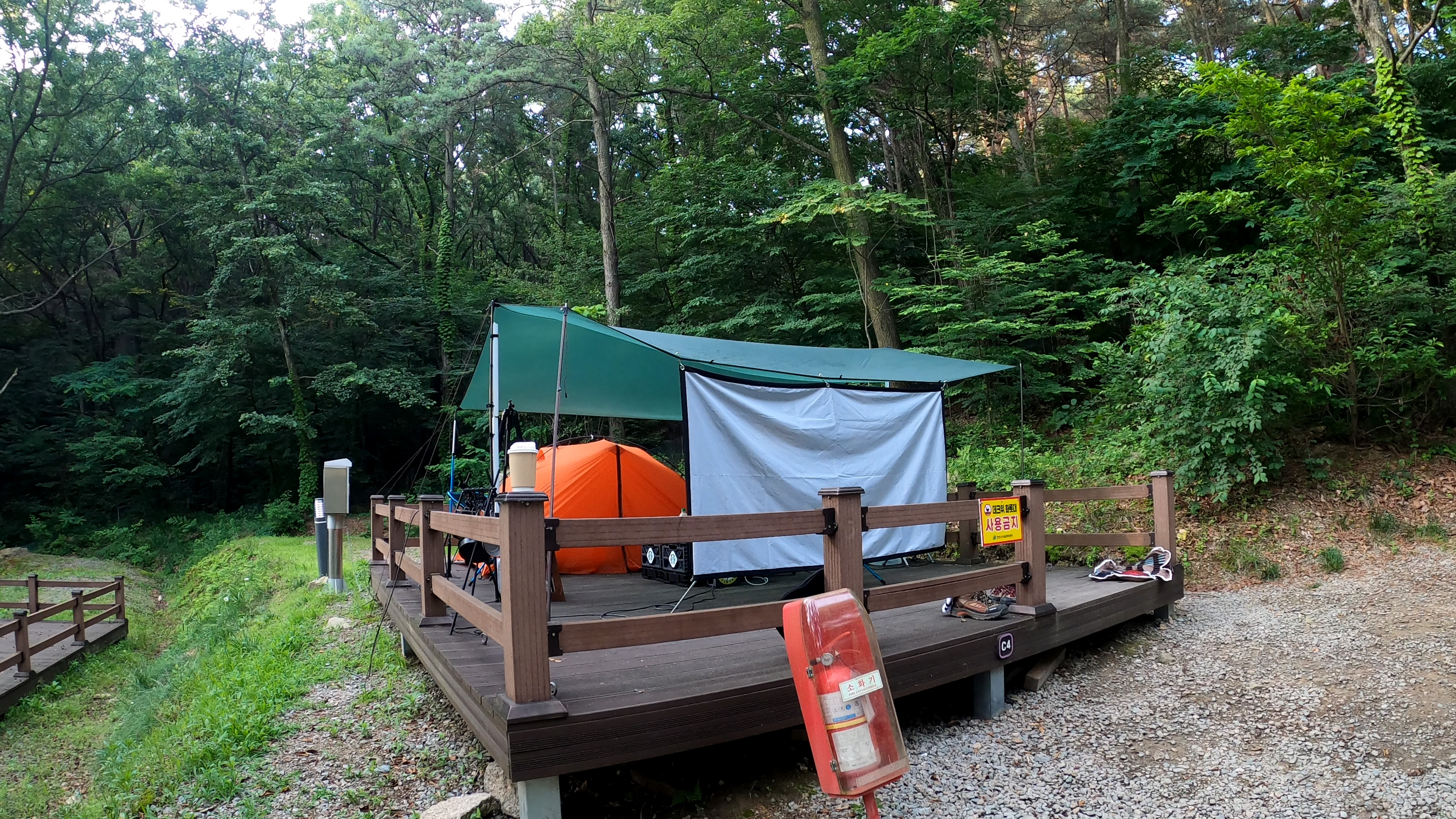 예약한 사이트는 C구역의 맨 안쪽 사이트인 C4 데크로 화장실과 취사장과 가깝기도 하고 맨 끝에 있어 한적하게 즐기기에 좋은 자리였다. 게다가 C3 구역은 사회적 거리두기로 비어있었던 터라 더더욱 조용했던 곳.