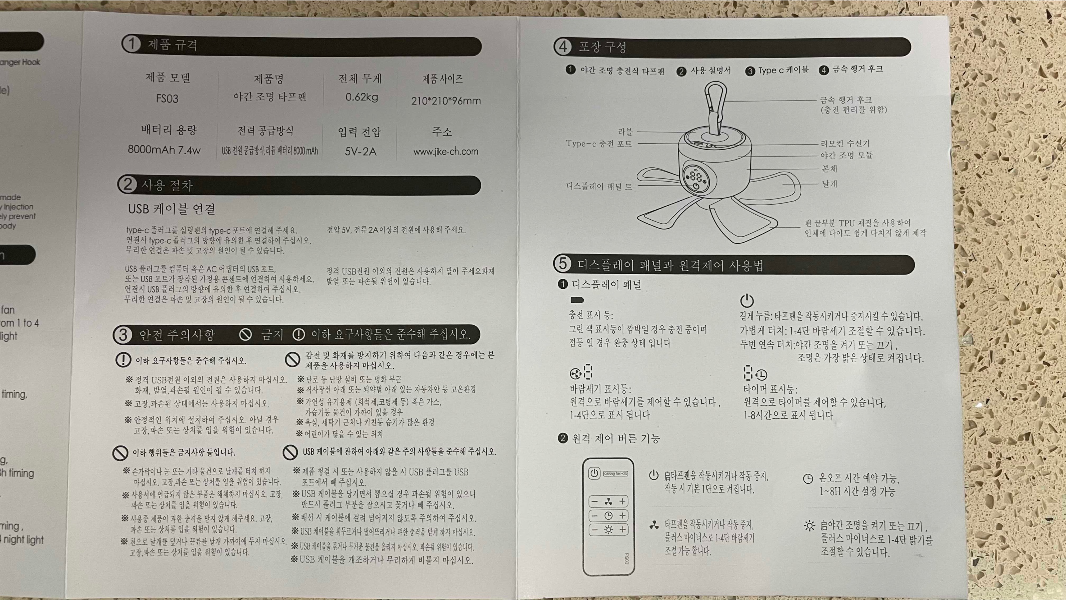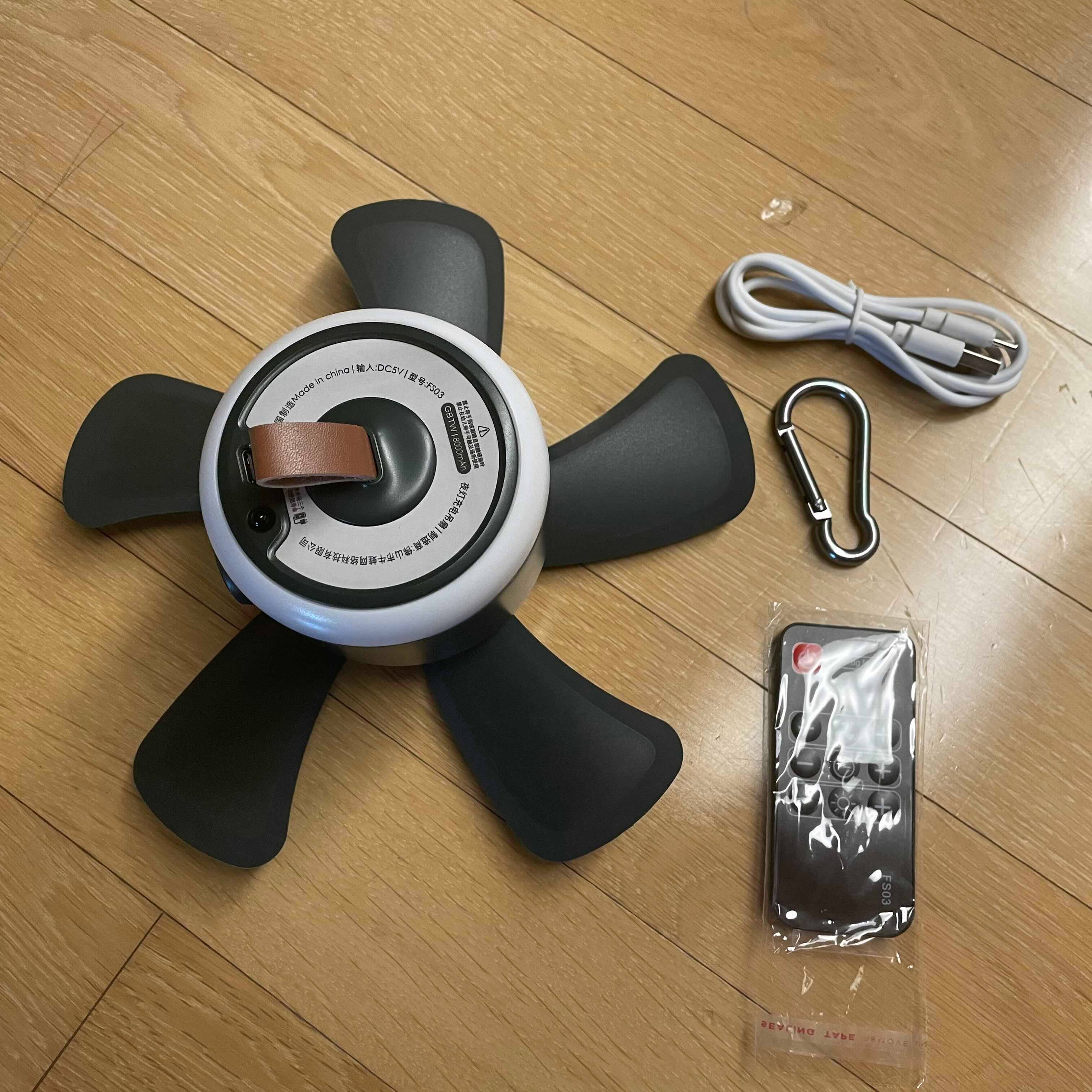 구성품은 타프팬, 리모컨, 카라비너, 케이블