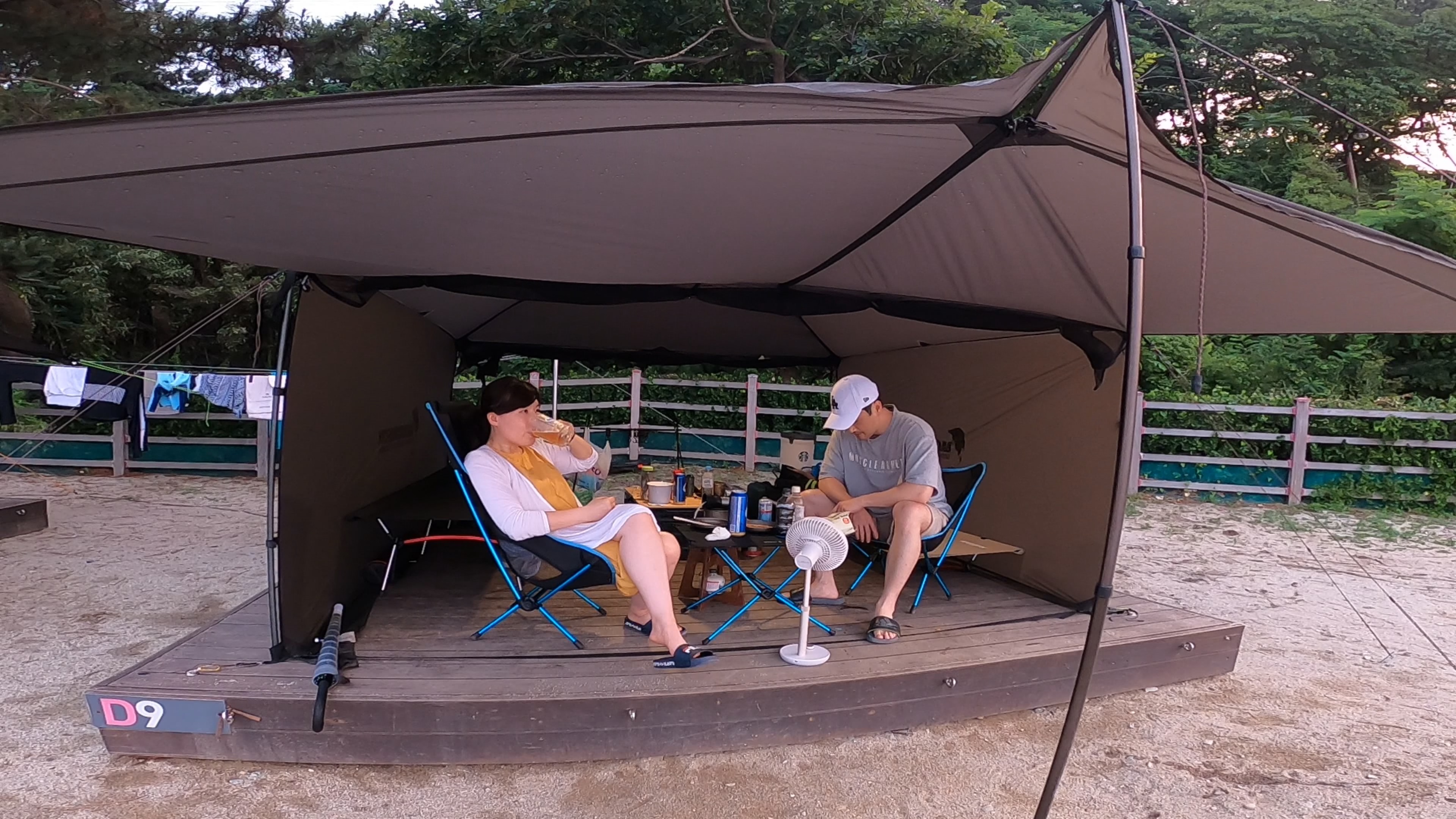도착. 예약한 곳은 D9 야영데크로, D구역에서 해변가쪽 구석에 위치한 자리다.