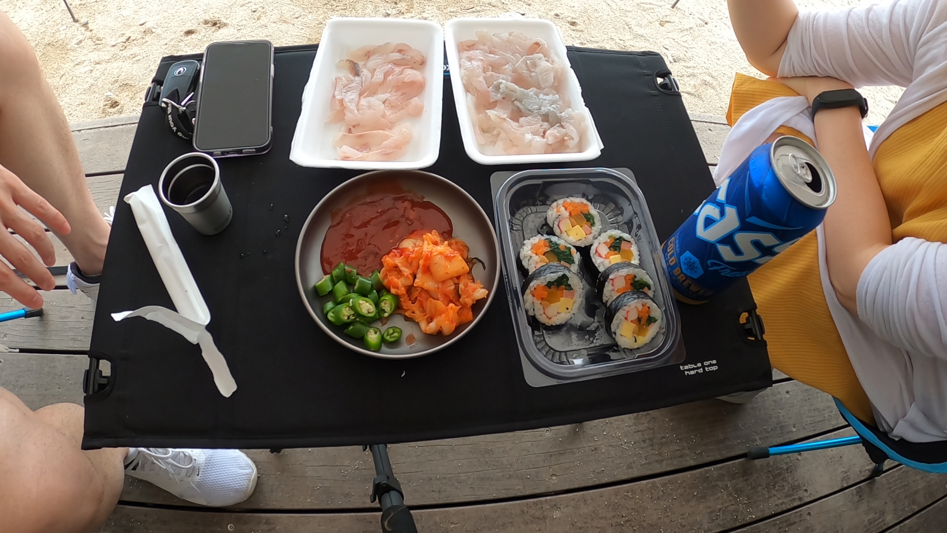 장비세팅후 . 이 때가 오후 4시 ? 먹을것이 준비가 전혀 되어 있지 않아 후다닥 근처 수산시장이 있는 임원항으로 향했다.