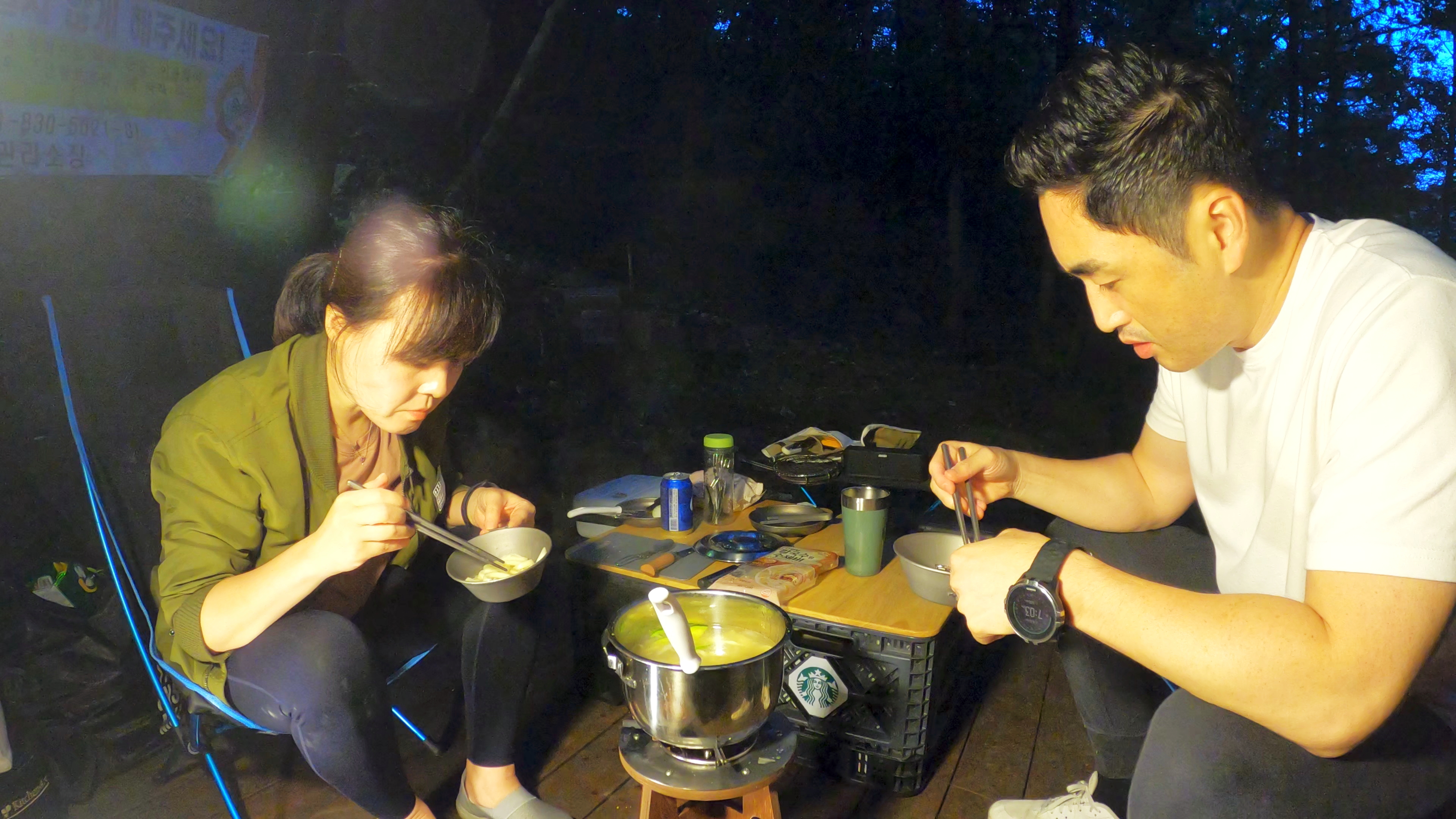 국물이 없으면 안되는 와이프가 준비한 수제비. 캠핑장에서 밀가루 음식 먹는것이 싫으나, 준비하는 사람 마음이니 맞춰줘야지.