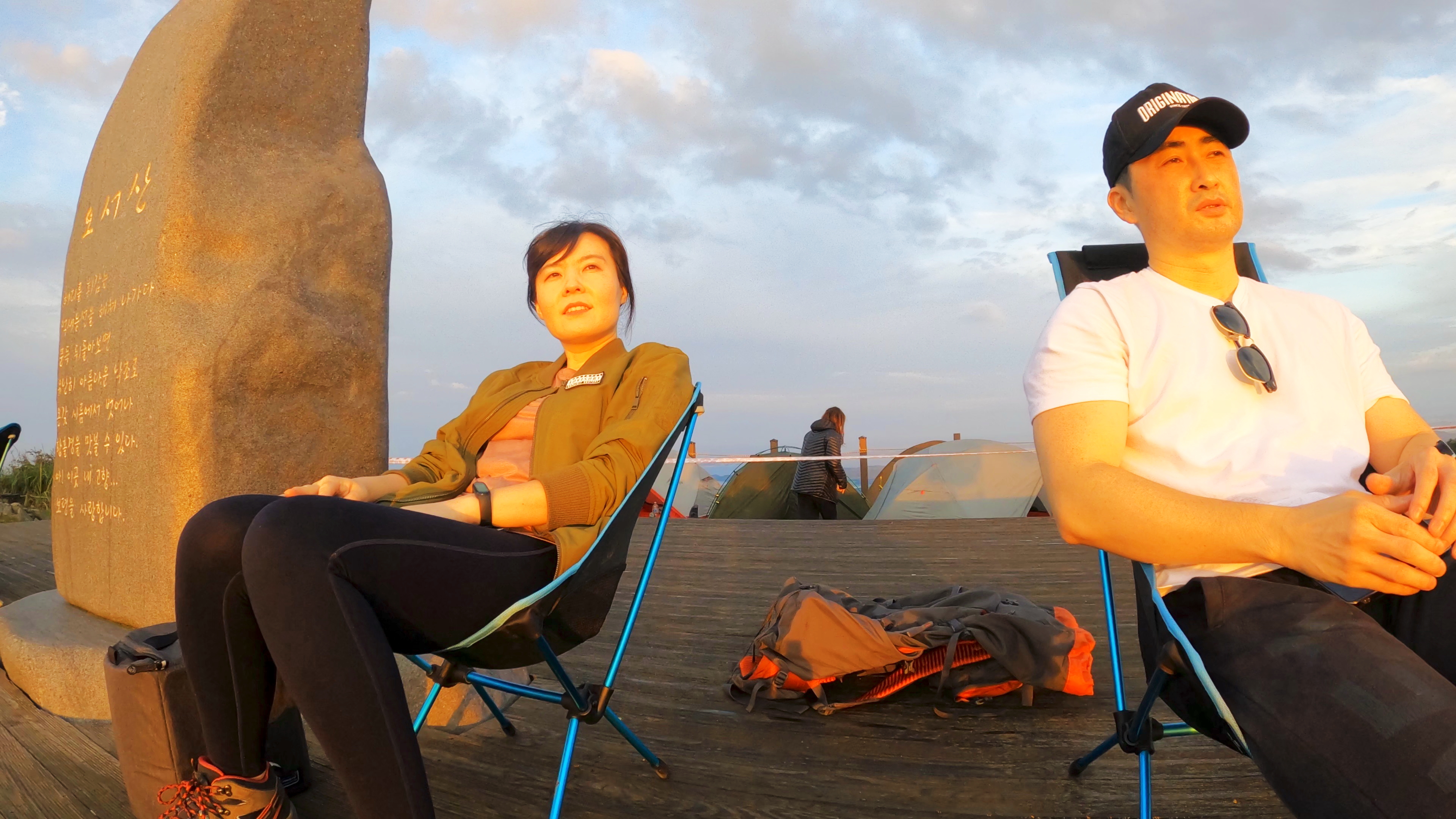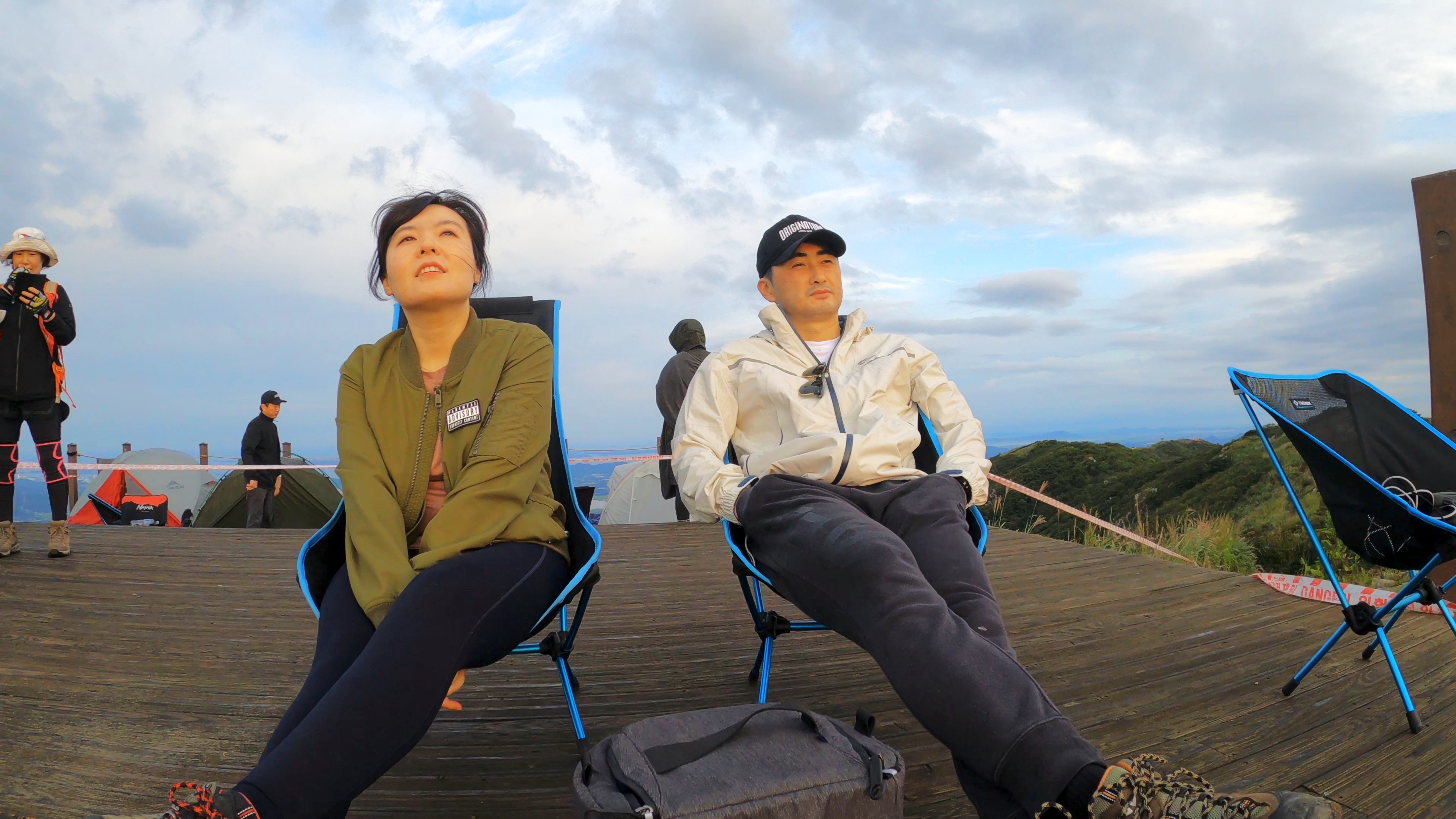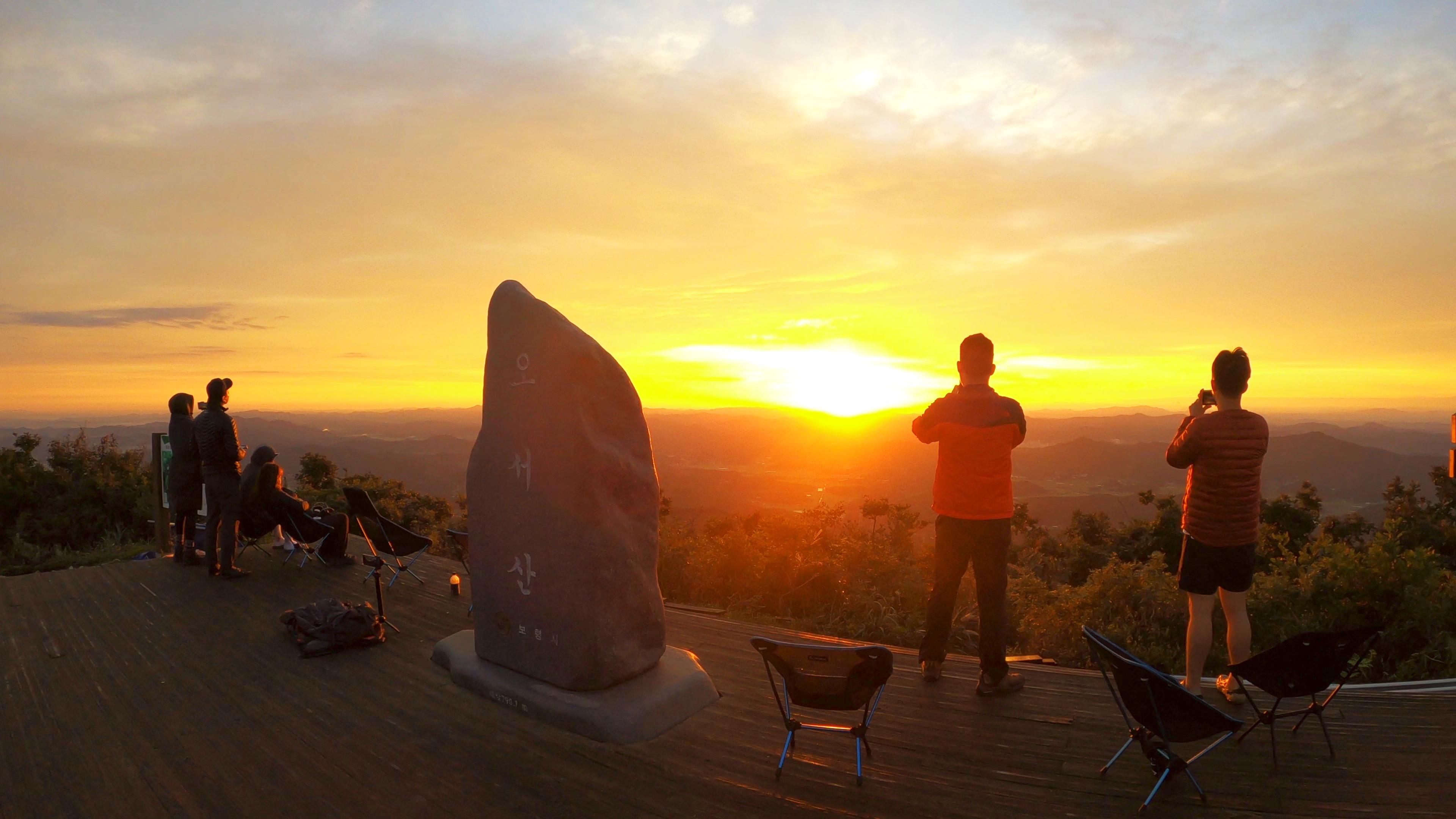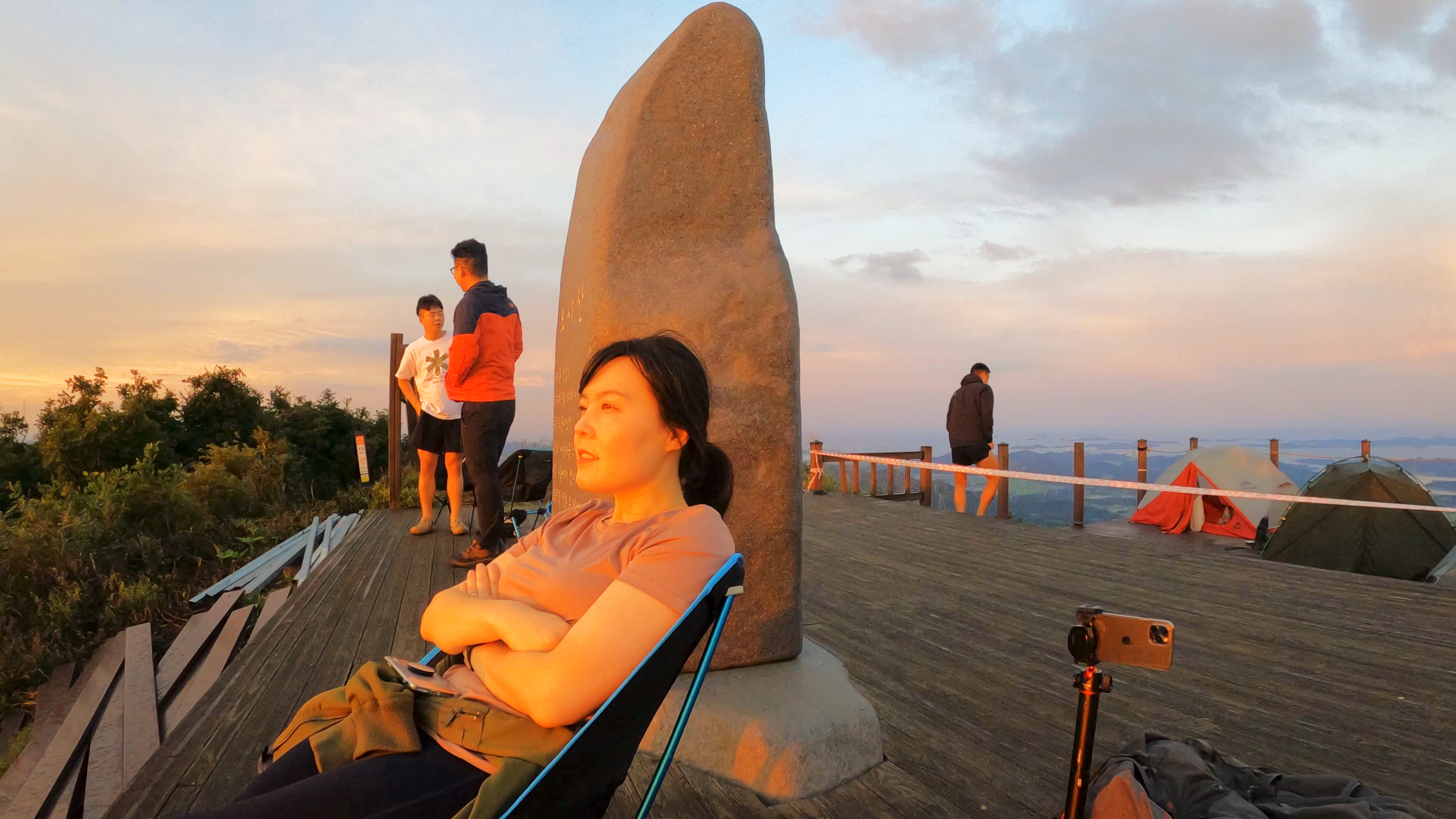 정상 전망대에 도착하니 캠핑족들이 해뜨는걸 기다리고 있었고 우리는 마치 백패킹을 하고 1박을 한 사람마냥 자연스럽게 자리를 펼치고 관람모드에 들어갔다.