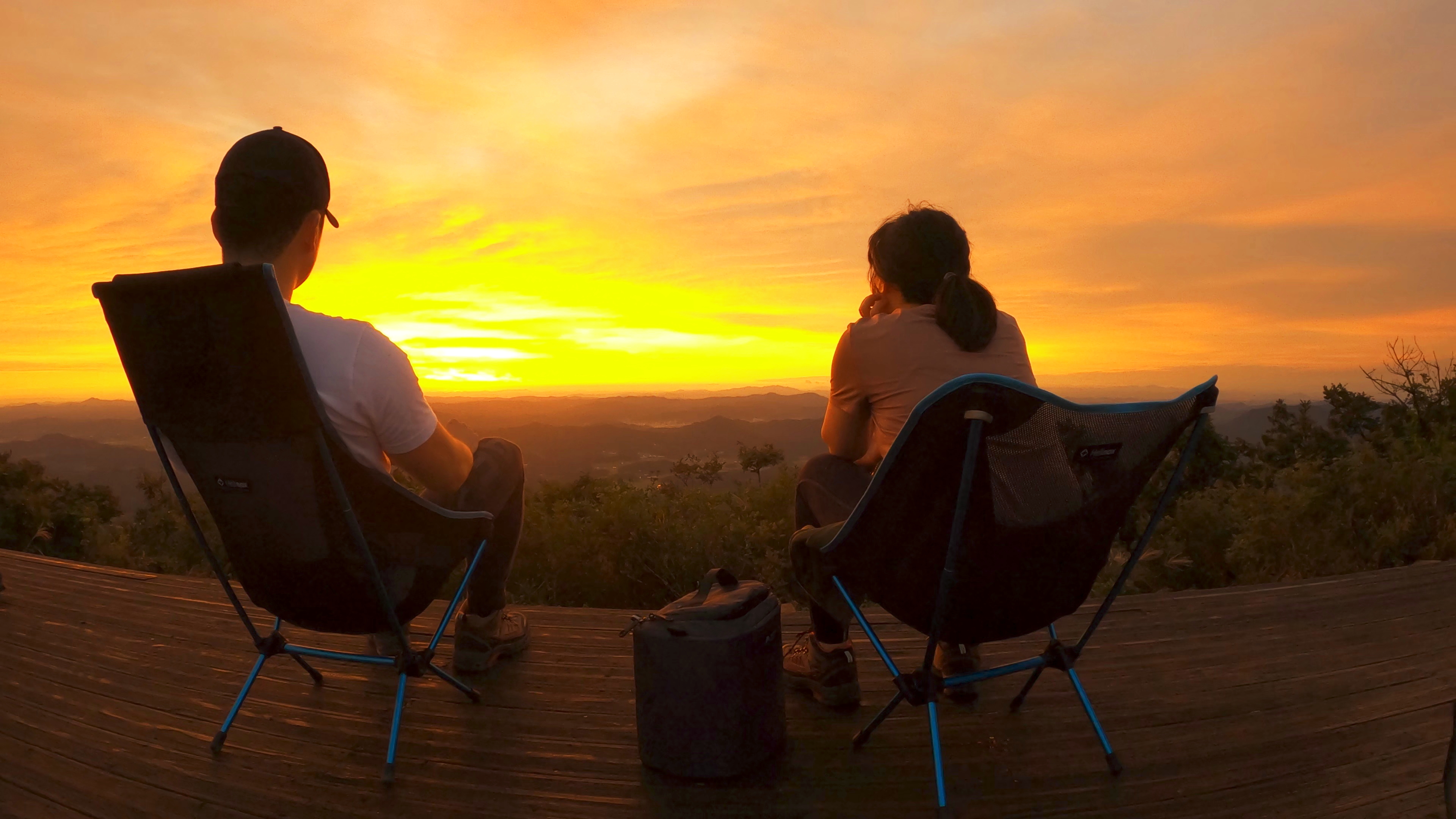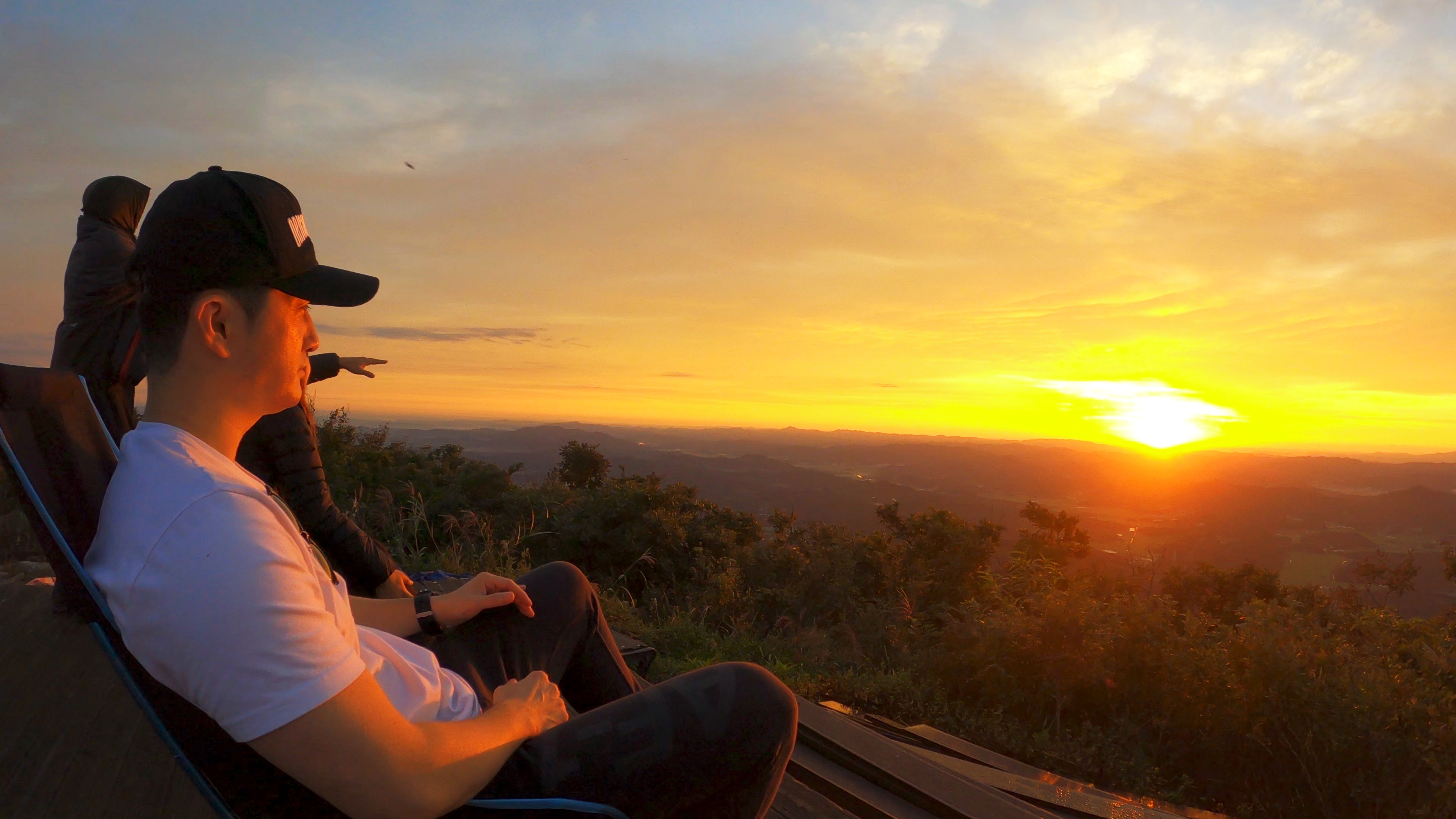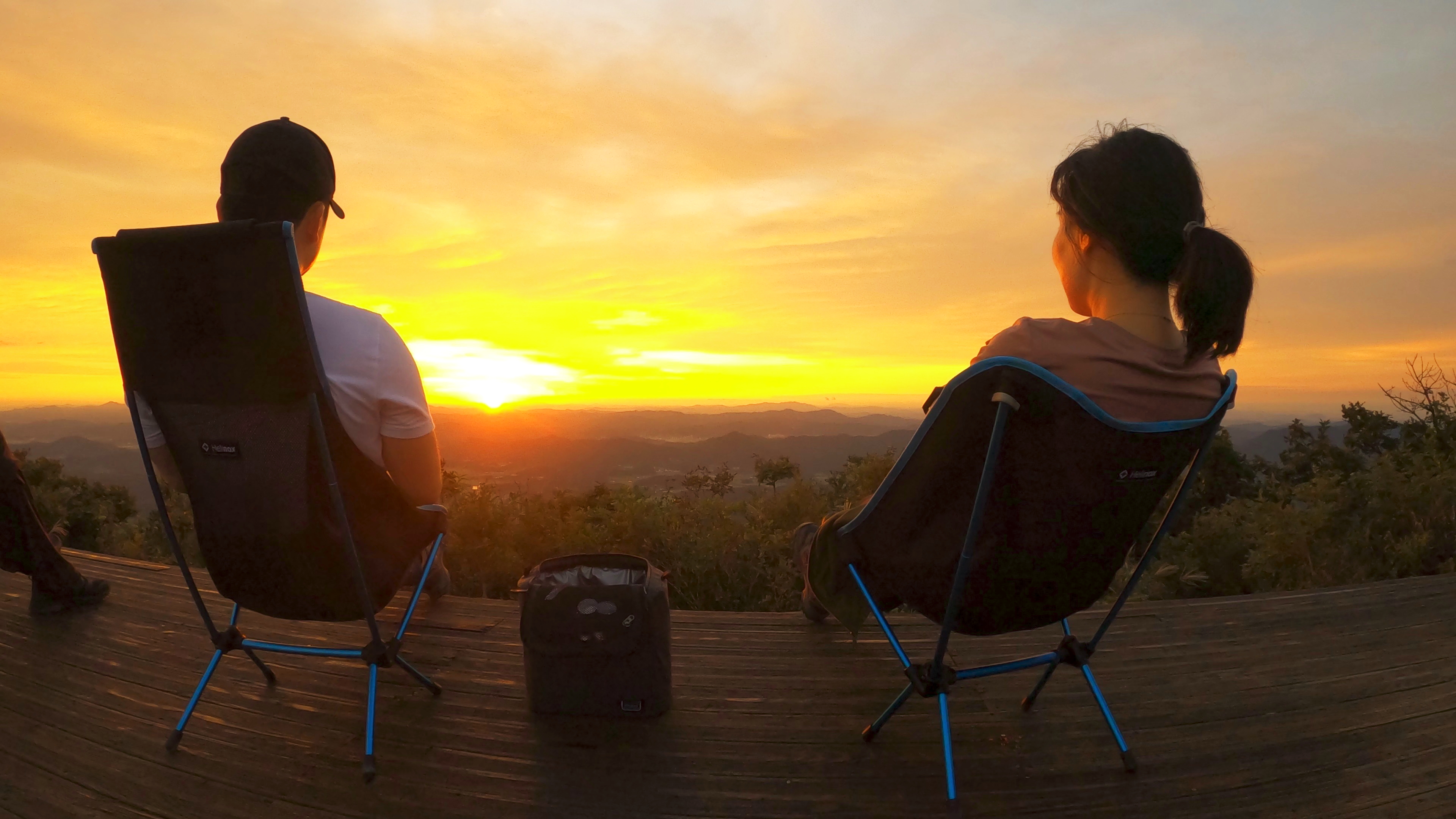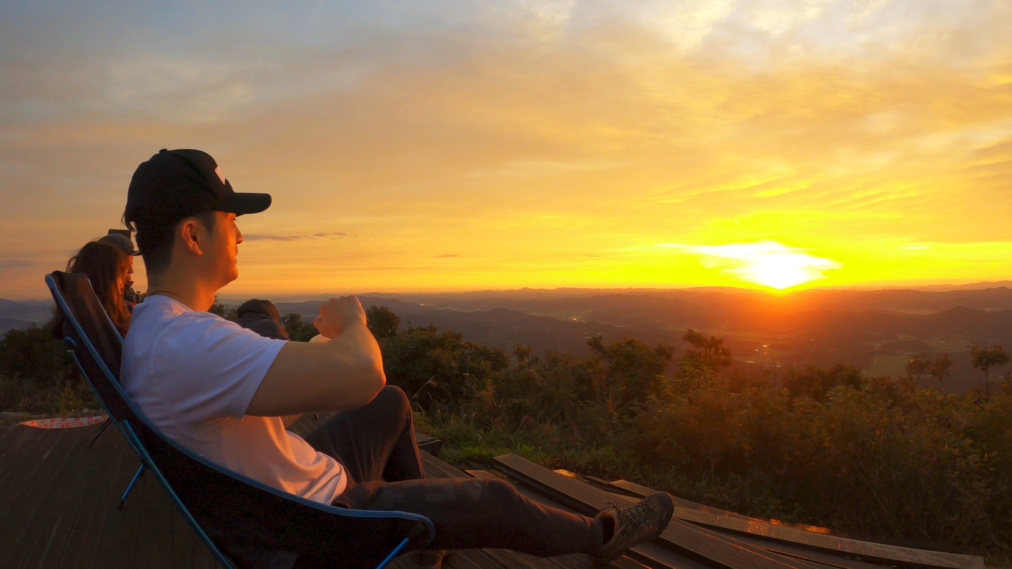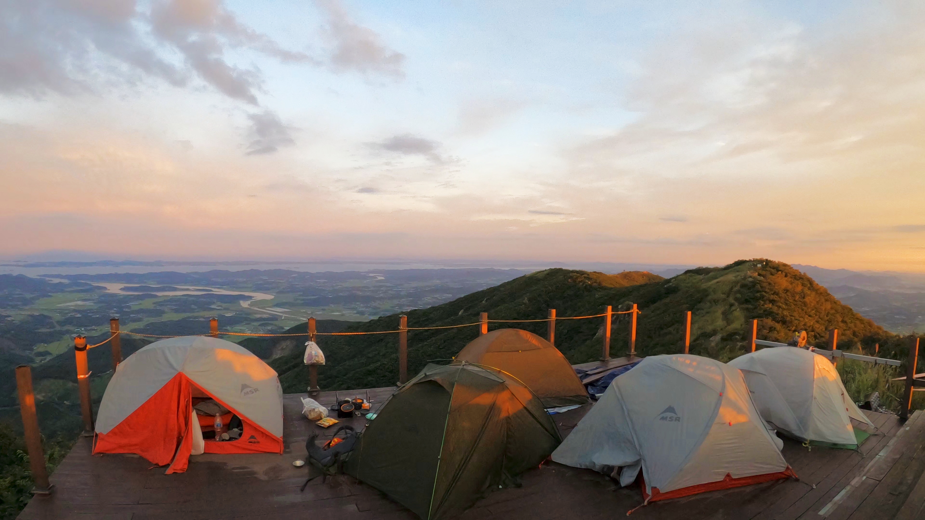 정상 전망대에 도착하니 캠핑족들이 해뜨는걸 기다리고 있었고 우리는 마치 백패킹을 하고 1박을 한 사람마냥 자연스럽게 자리를 펼치고 관람모드에 들어갔다.