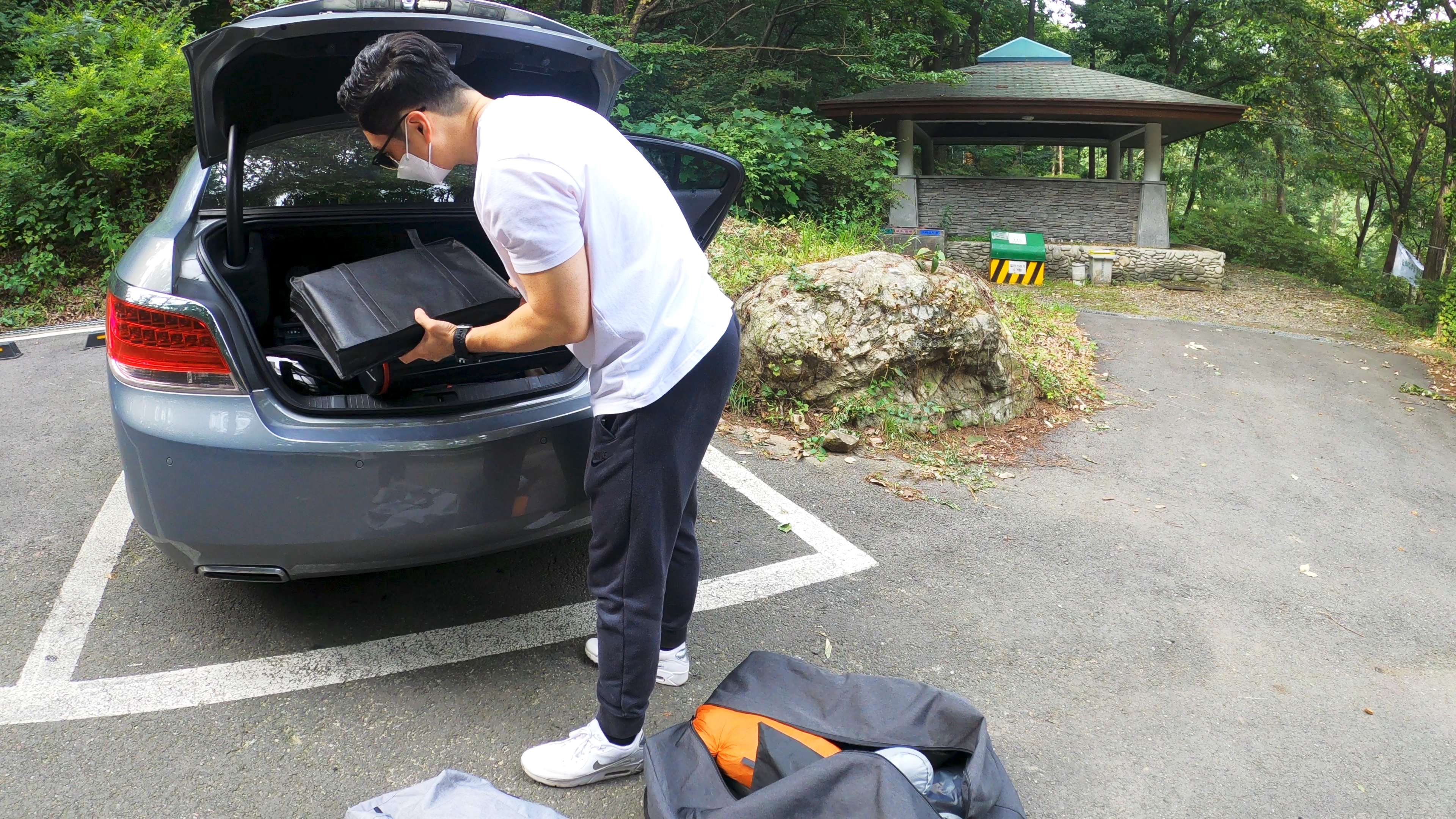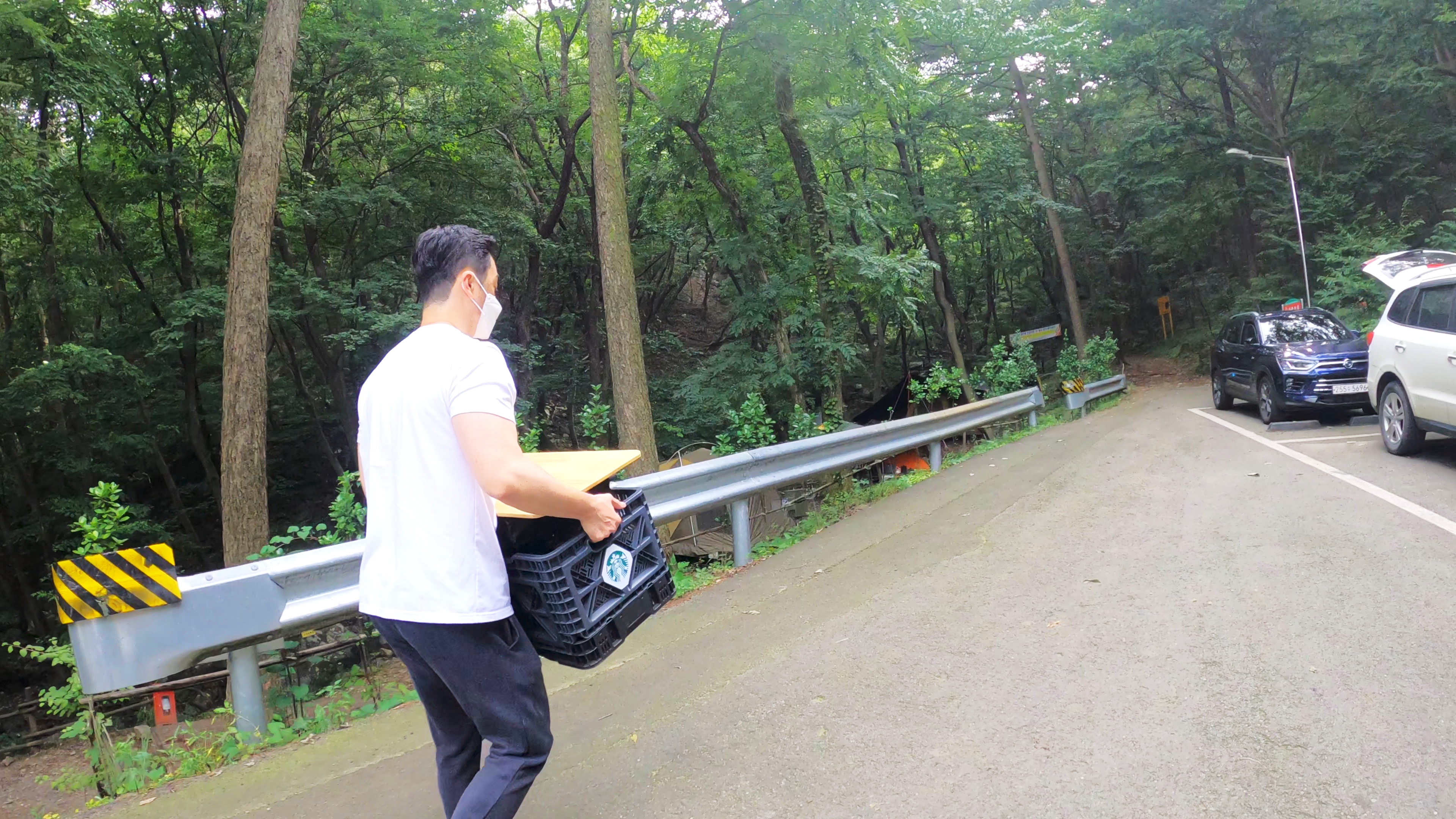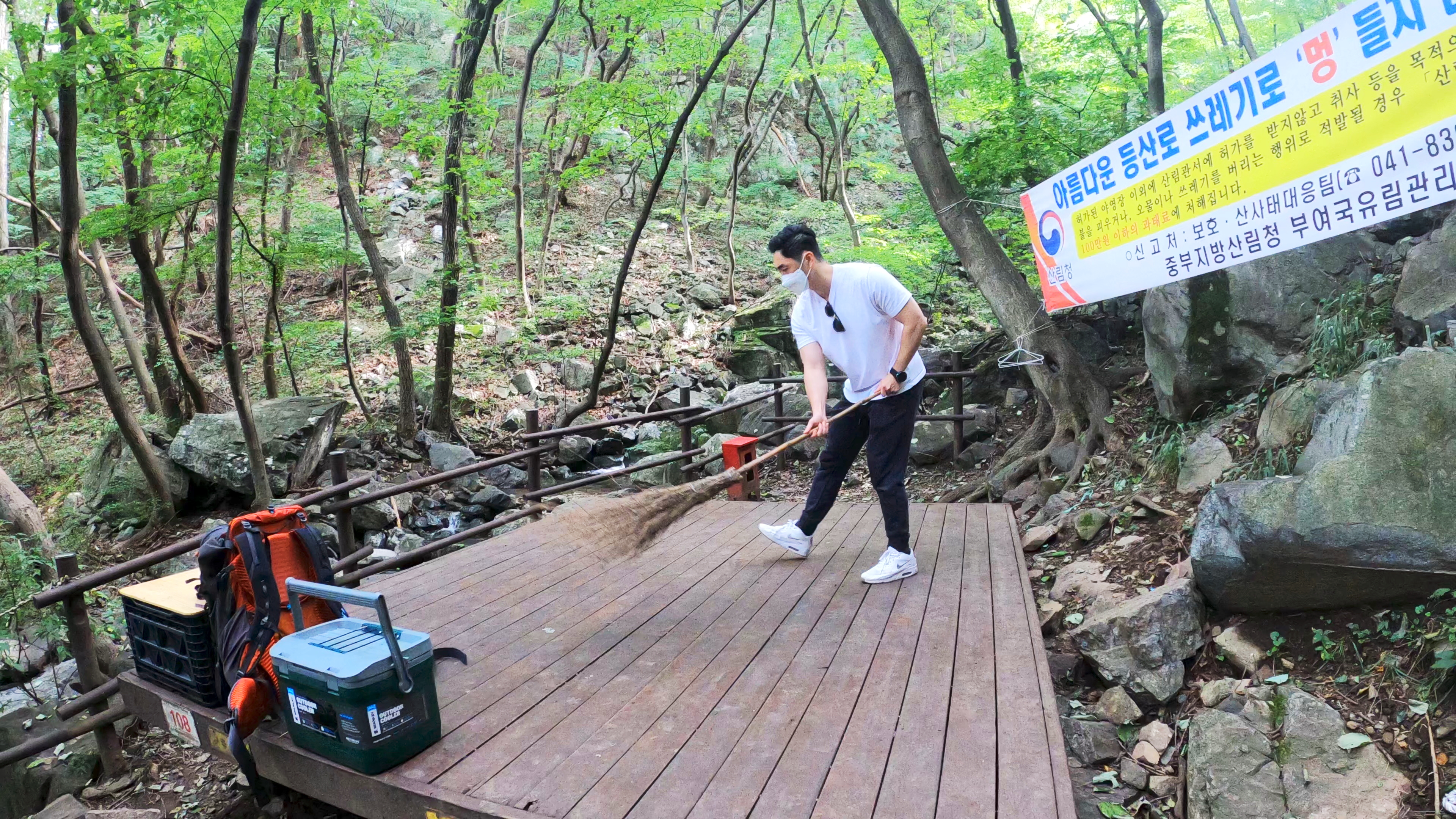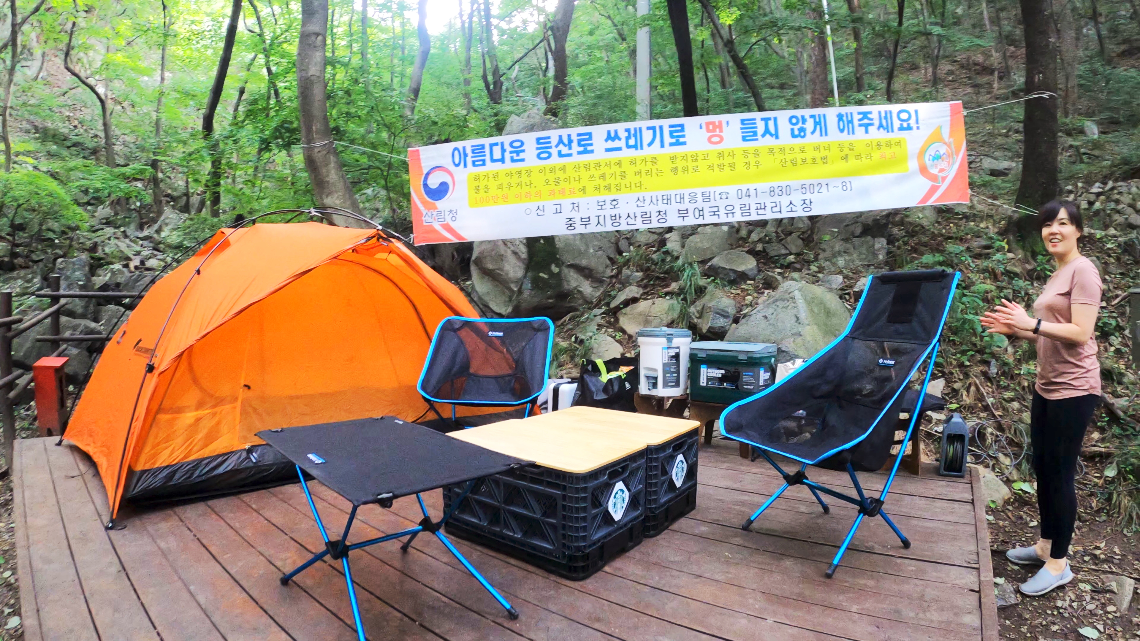 휴양림 도착. 예약한 곳은 108번 데크로, 이 곳 야영장 총 8개의 데크중에서 가장 안쪽에 독립적으로 위치한 사이트로 명당이다.