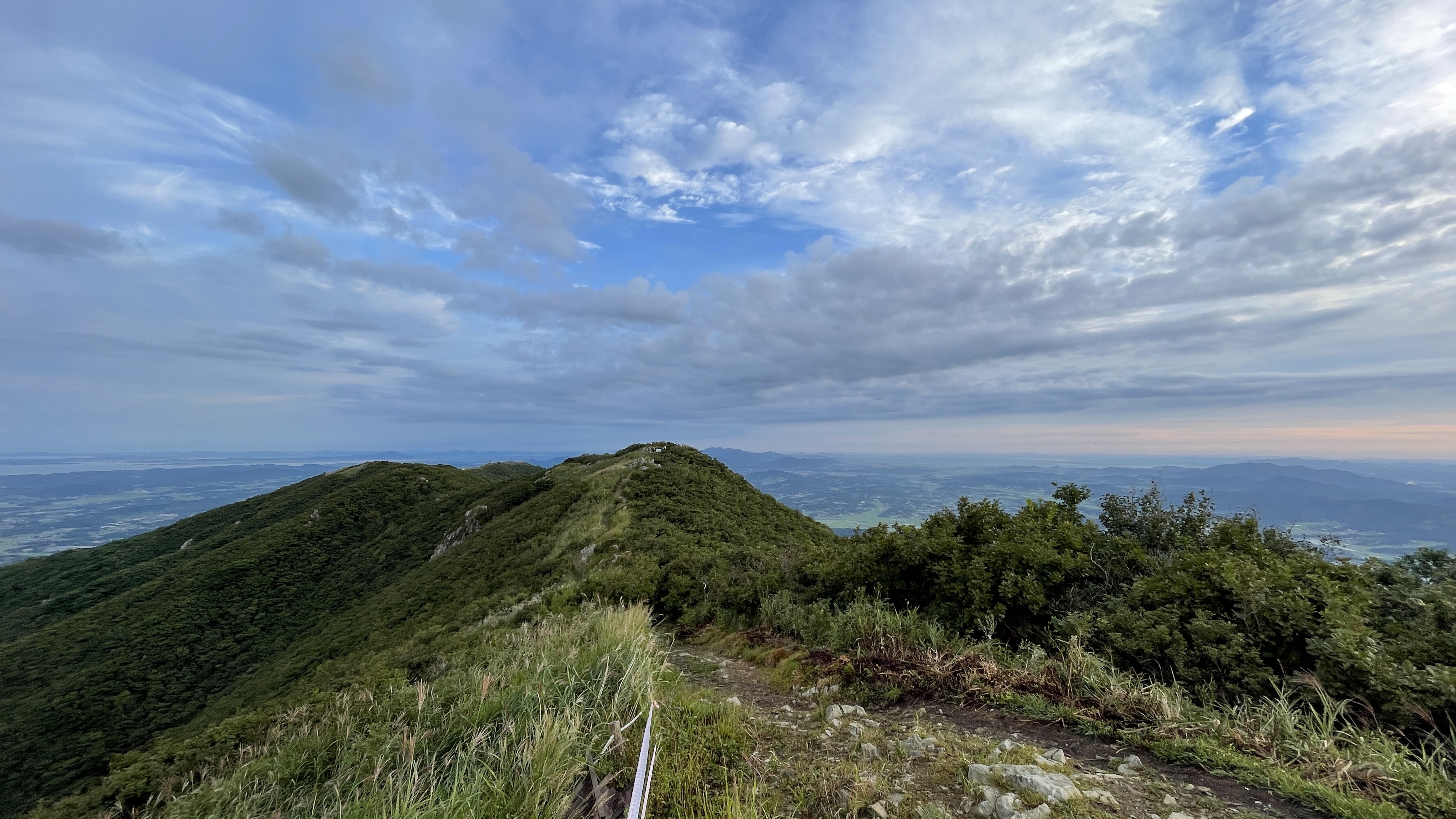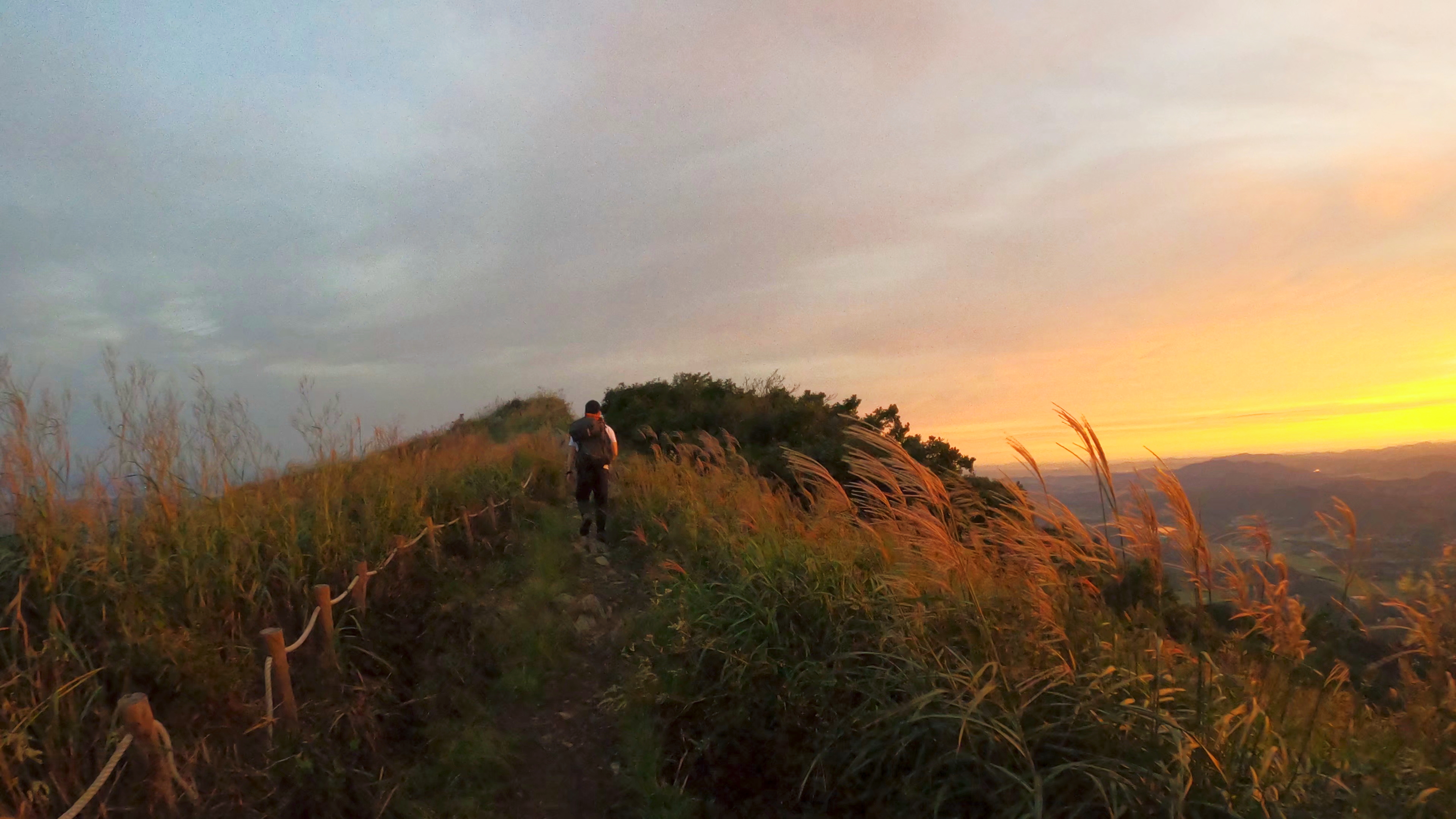 1시간 가량의 등산끝네 정상 부근 도착. 억새와 여명이 어울려 장관을 이룬다.