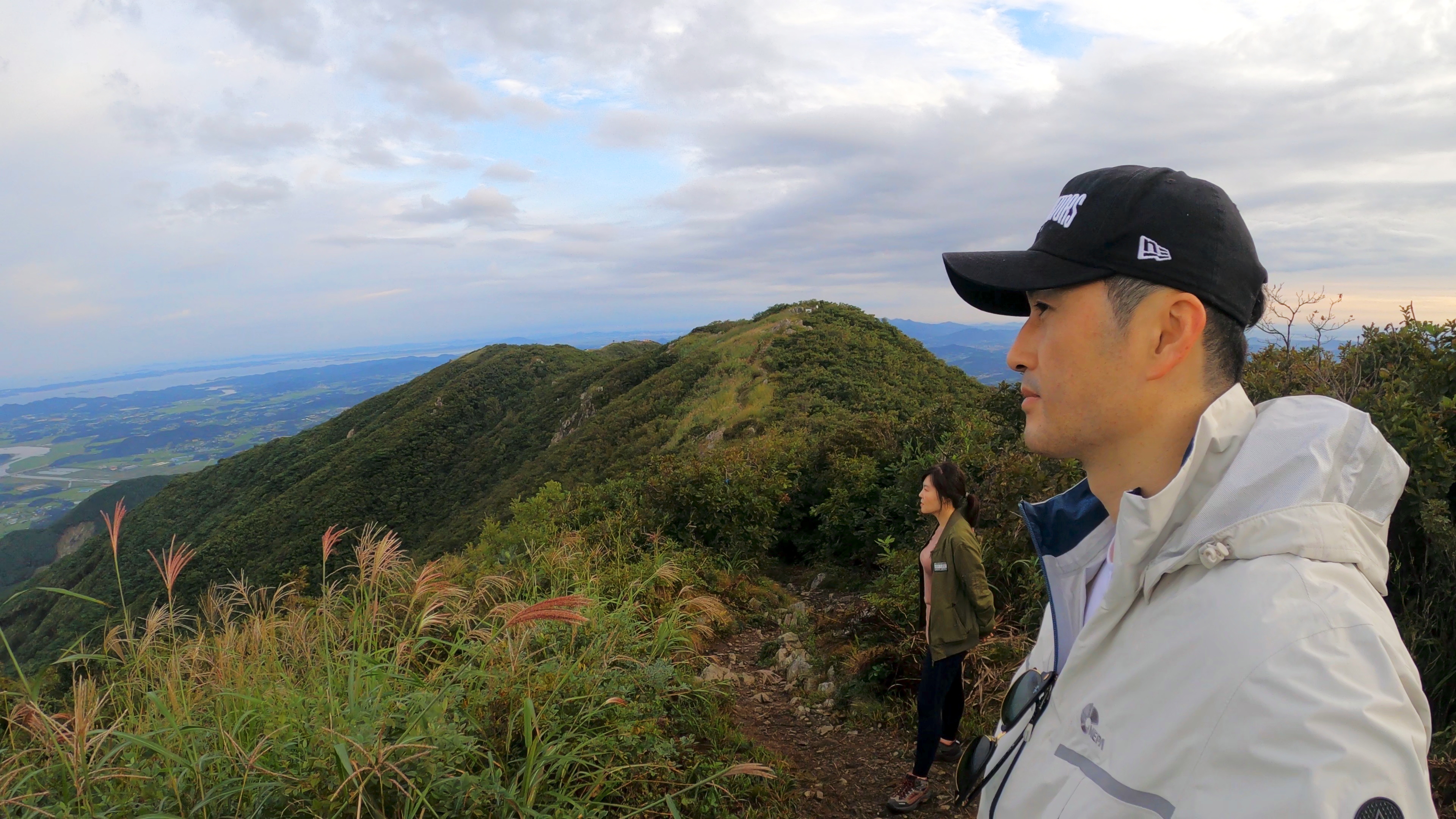 1시간 가량의 등산끝네 정상 부근 도착. 억새와 여명이 어울려 장관을 이룬다.