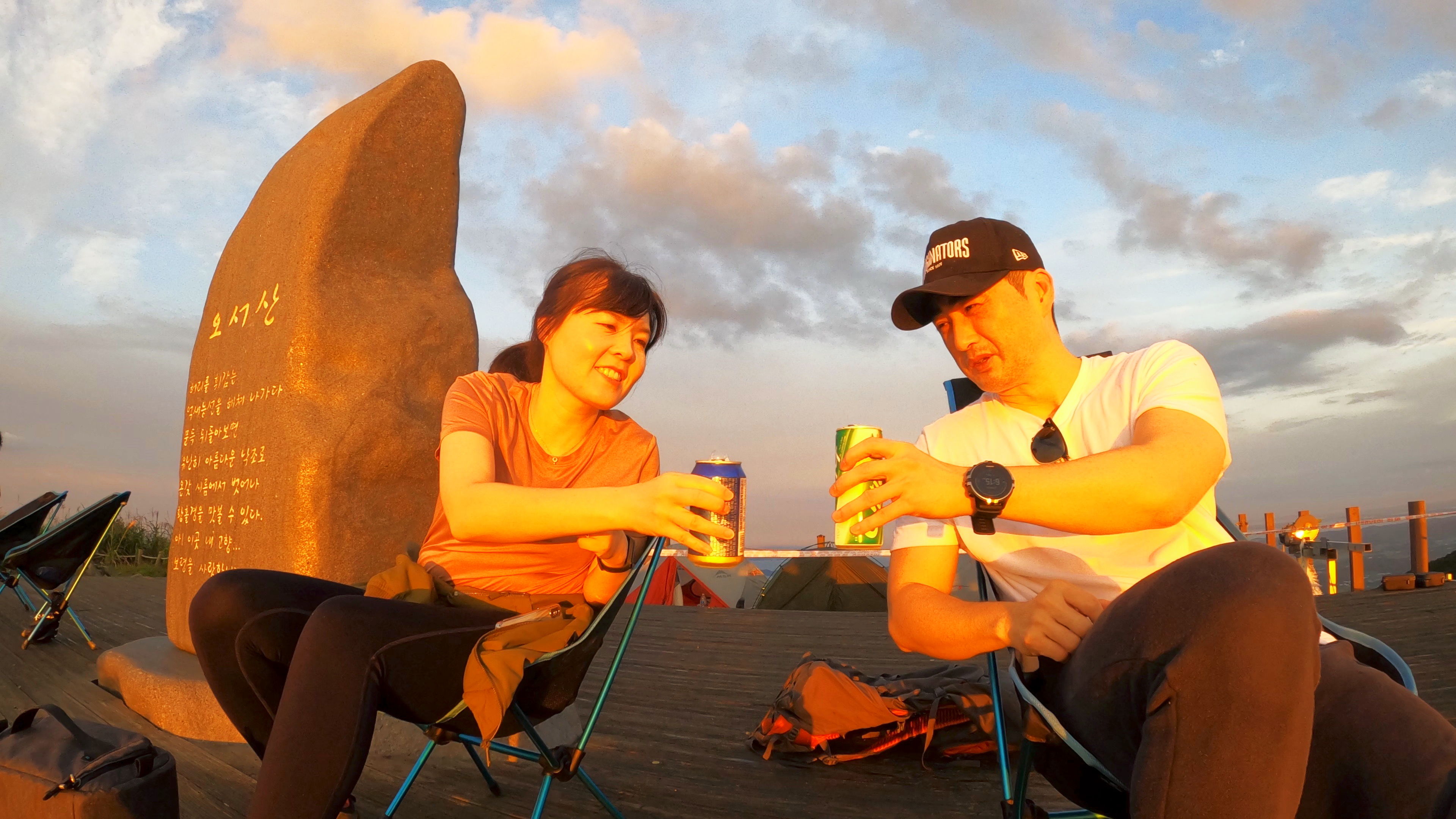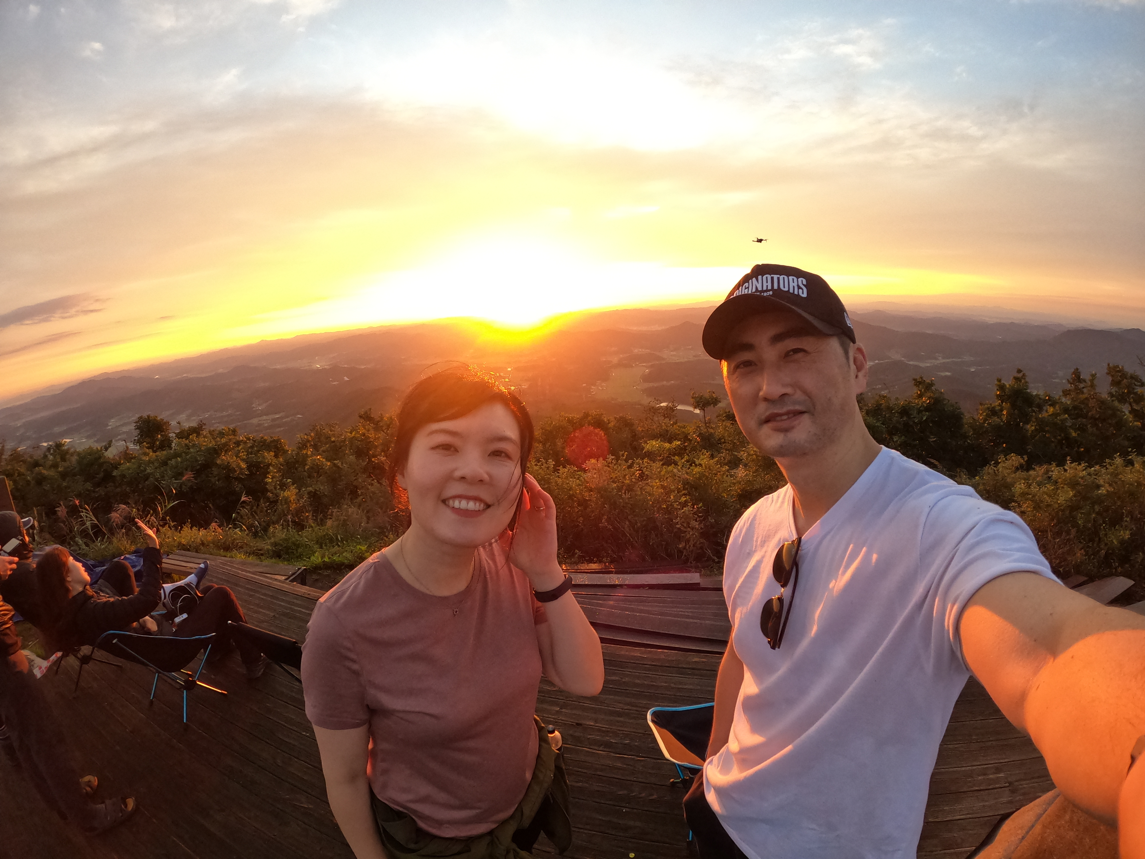 정상 전망대에 도착하니 캠핑족들이 해뜨는걸 기다리고 있었고 우리는 마치 백패킹을 하고 1박을 한 사람마냥 자연스럽게 자리를 펼치고 관람모드에 들어갔다.