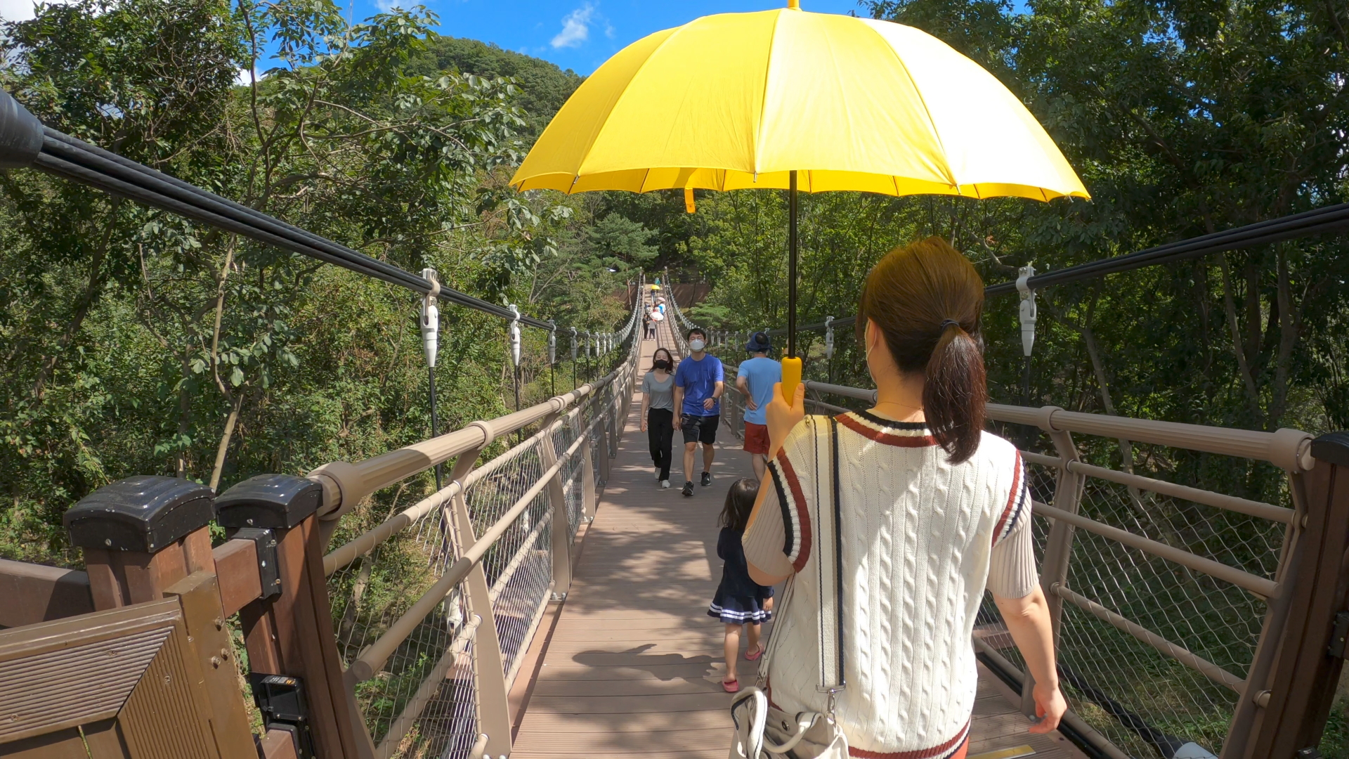 출렁다리에서 재인폭포가 정면으로 바라보인다.