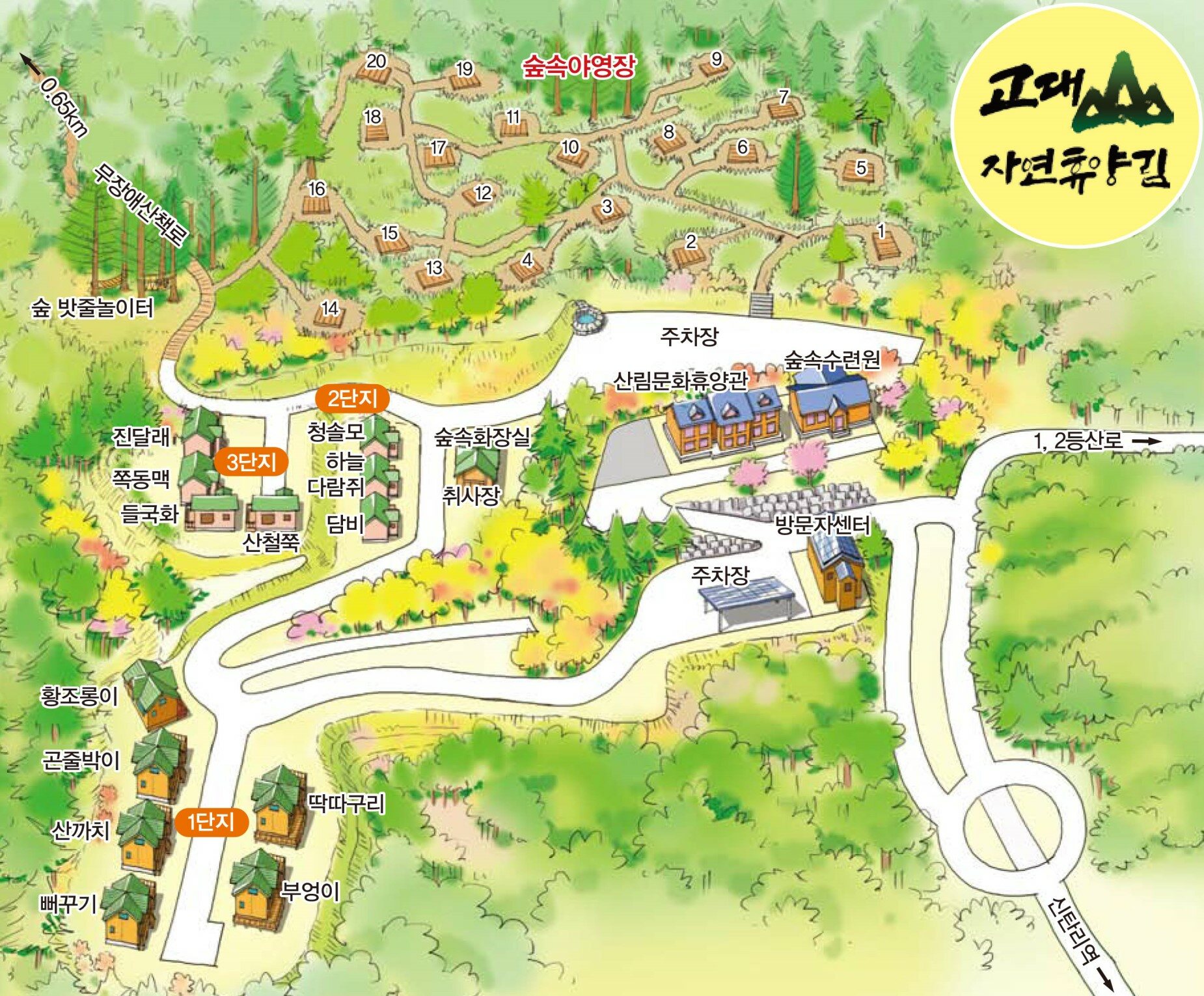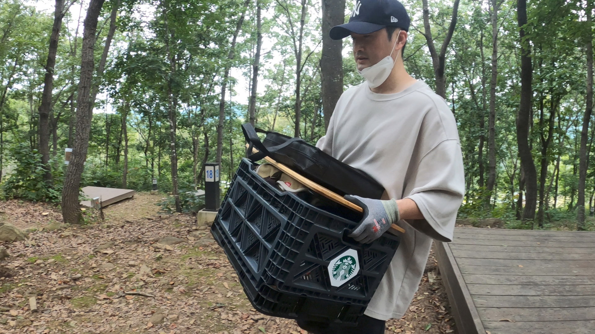 그리고 연천 고대산 자연휴양림 도착. 산 언덕에 야영장이 하나씩 있는 구조라 주차장에서 짐을 들고 올라가야 했다.