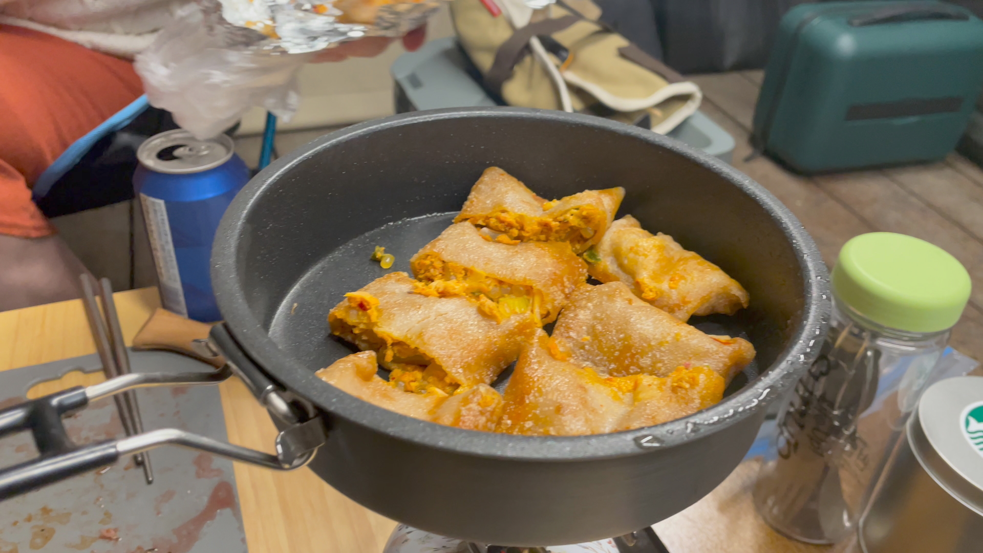 저녁시간이 되어 우선 점심때 먹다가 싸들고 온 메밀전병을 시작으로
