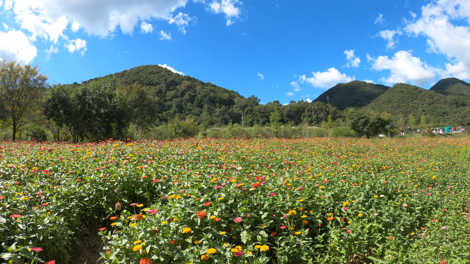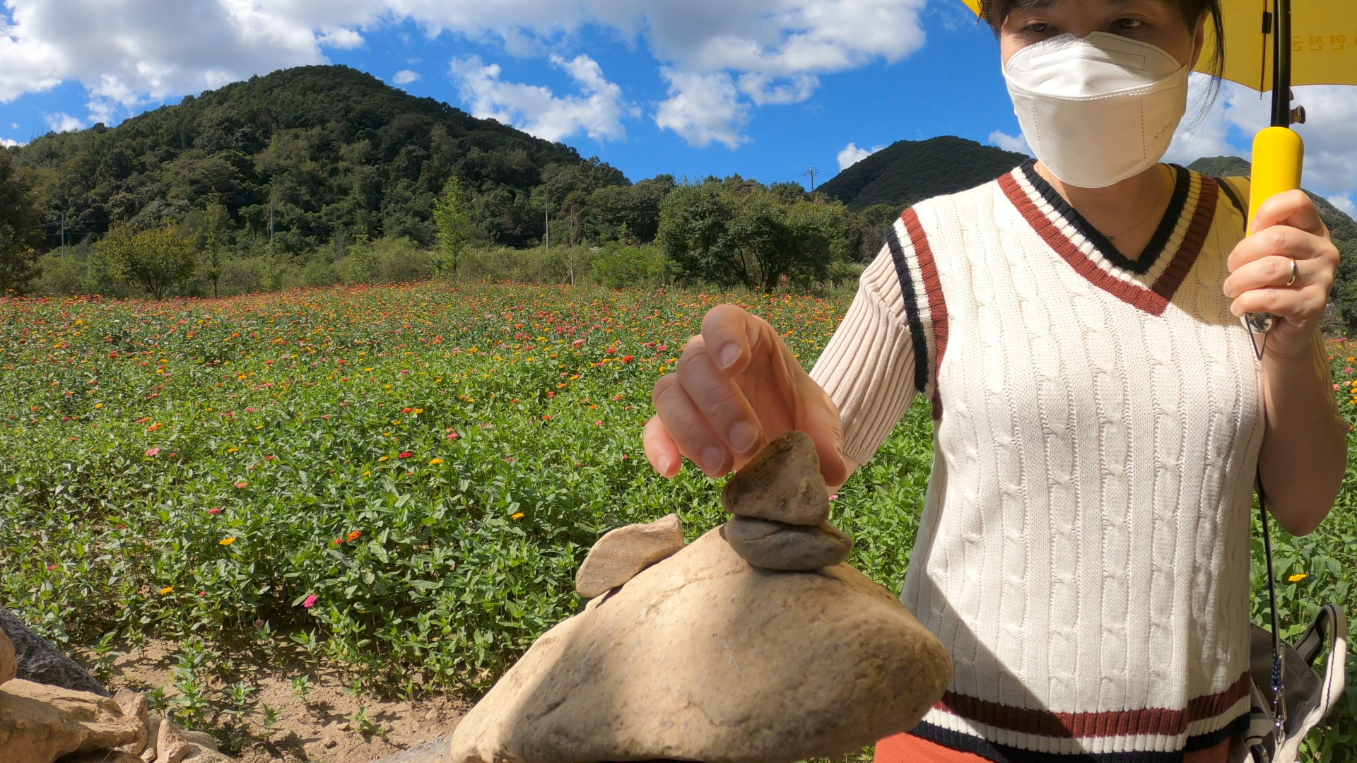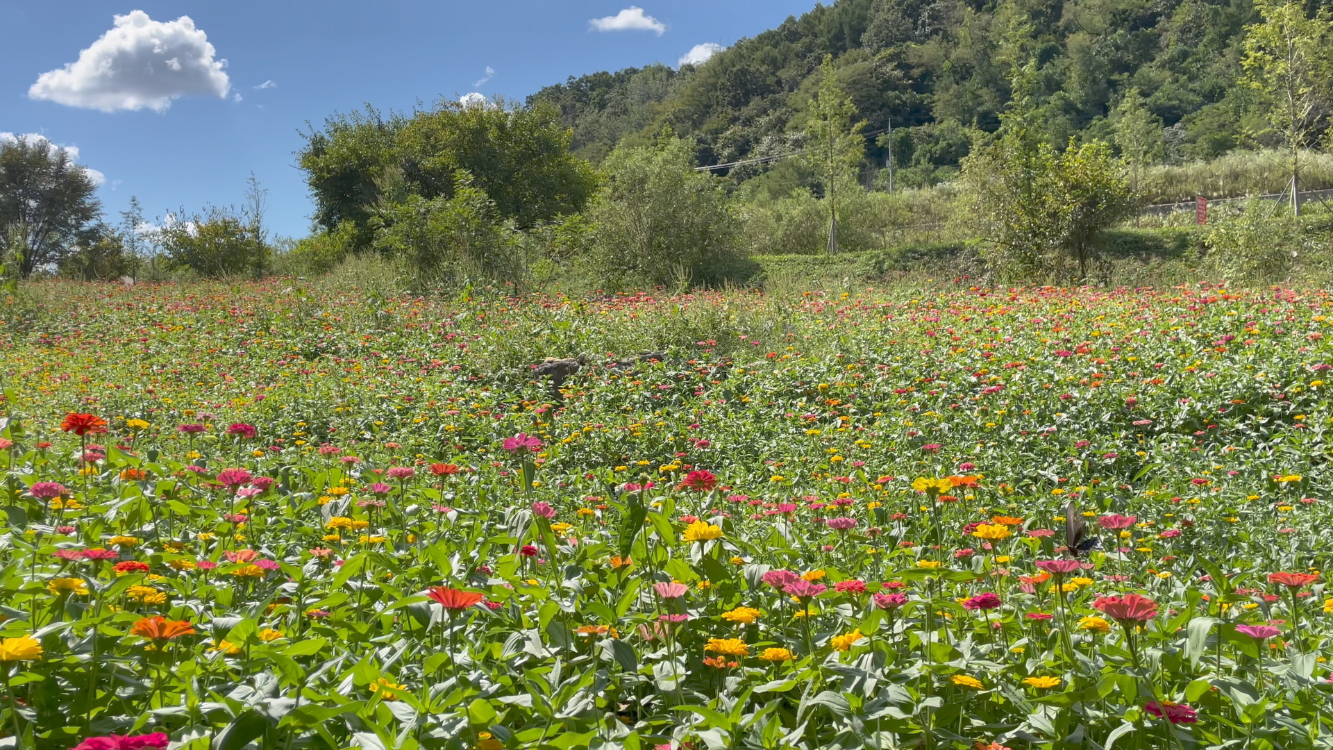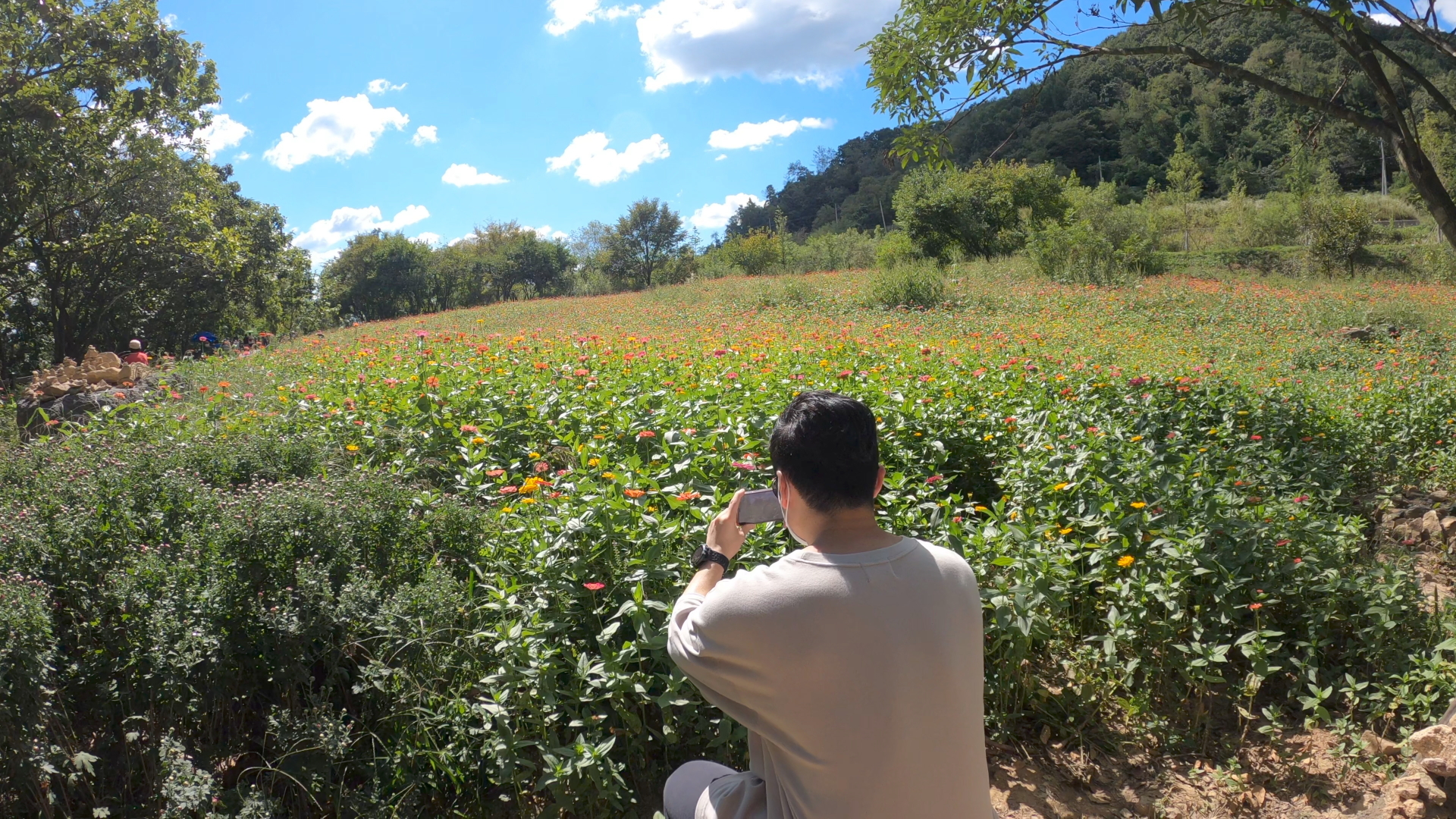 화창한 가을하늘 아래, 알록달록 꽃밭이 이어져 있었다.