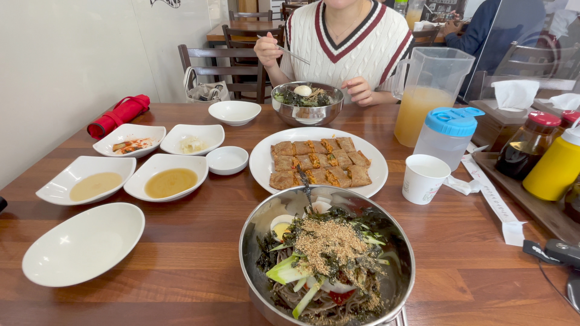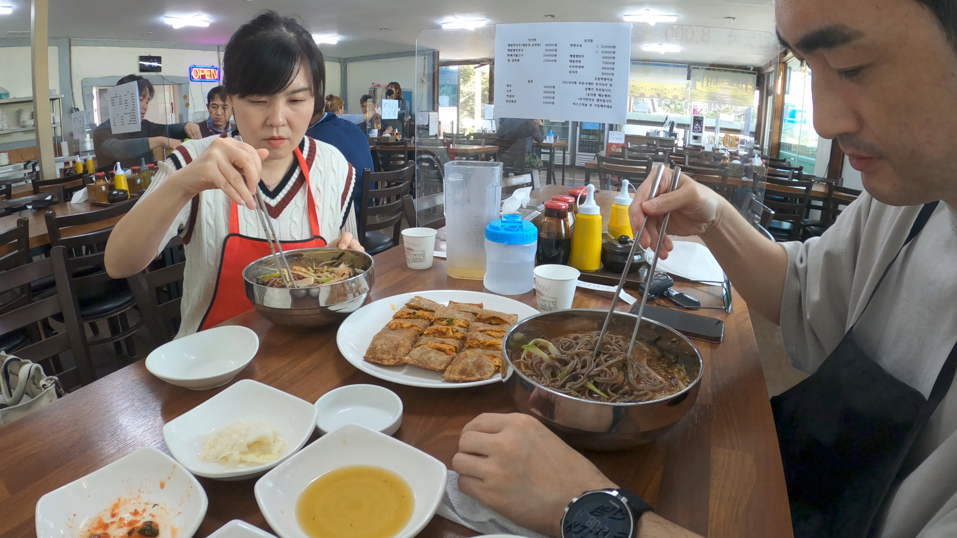 막국수와 메밀전병을 시켰는데, 막국수가 양이 많아서 메밀전병은 포장해서 캠핑장에서 나중에 해결했다.