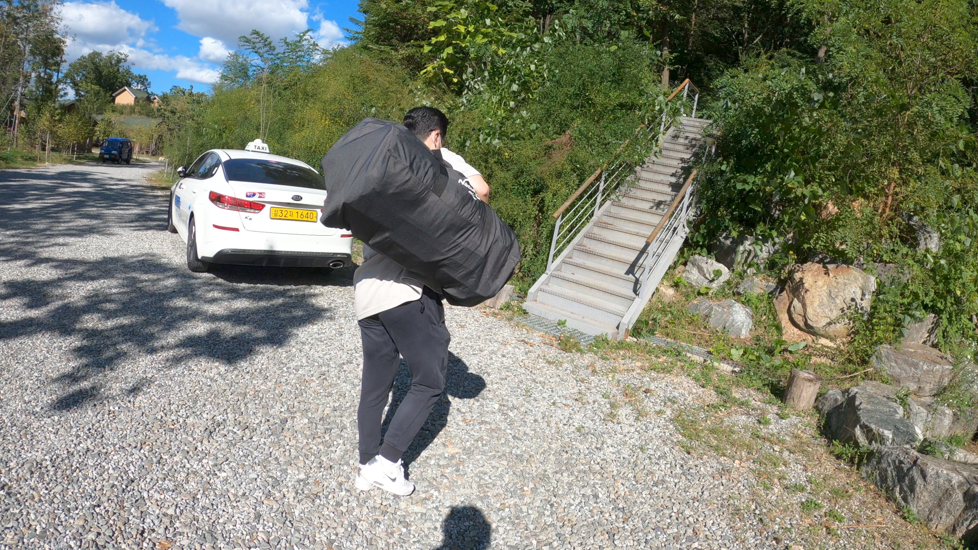 그리고 연천 고대산 자연휴양림 도착. 산 언덕에 야영장이 하나씩 있는 구조라 주차장에서 짐을 들고 올라가야 했다.