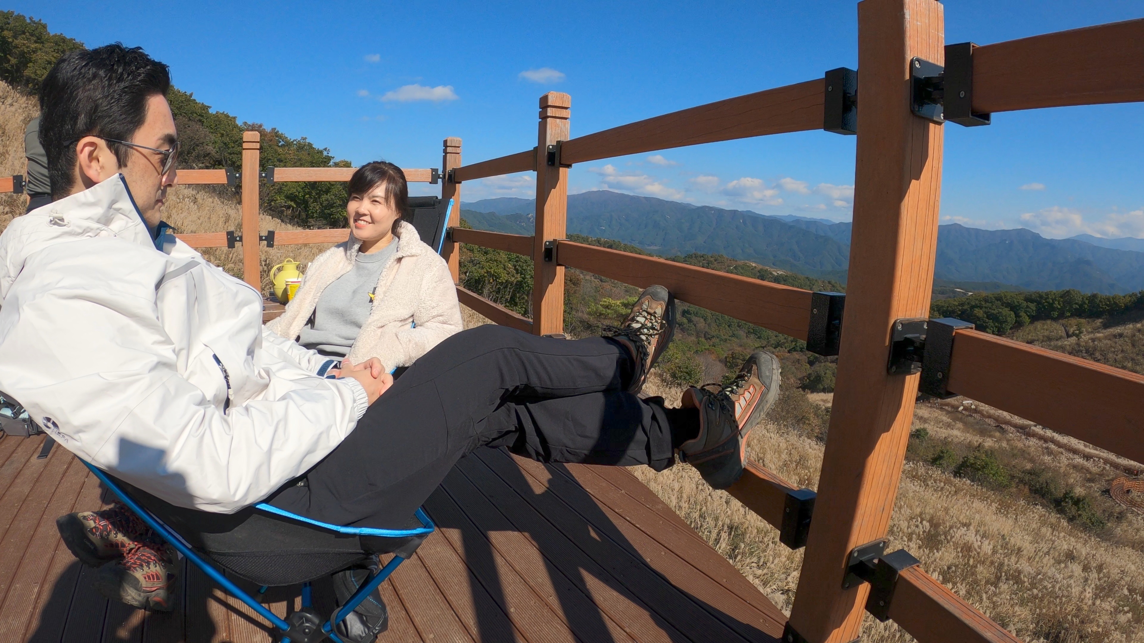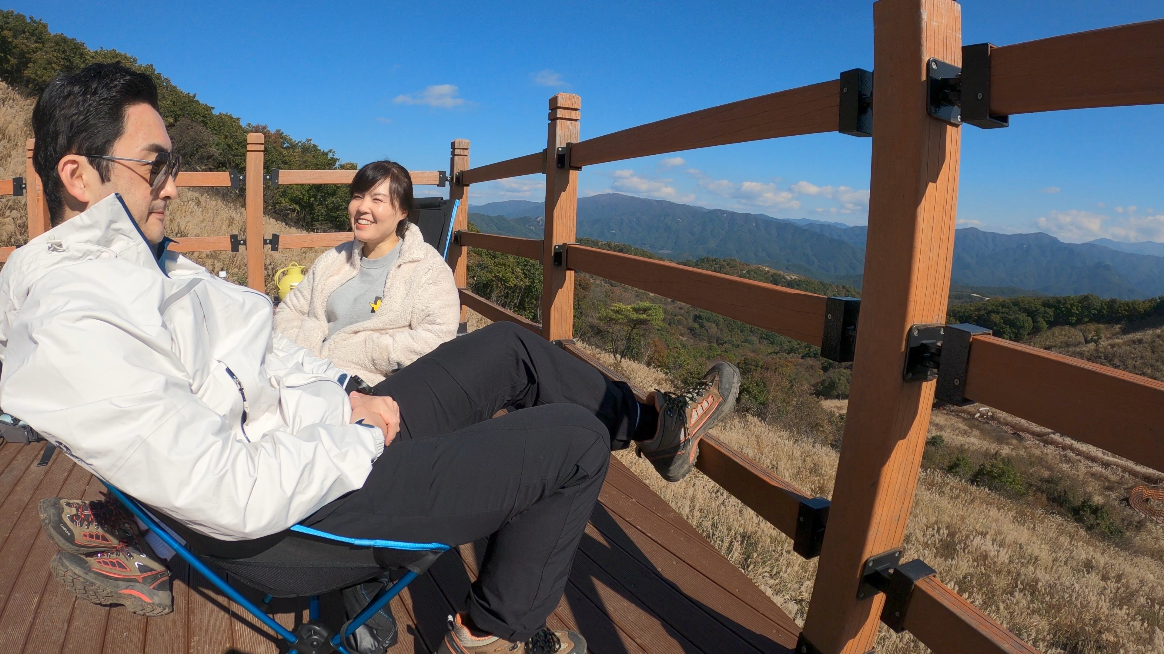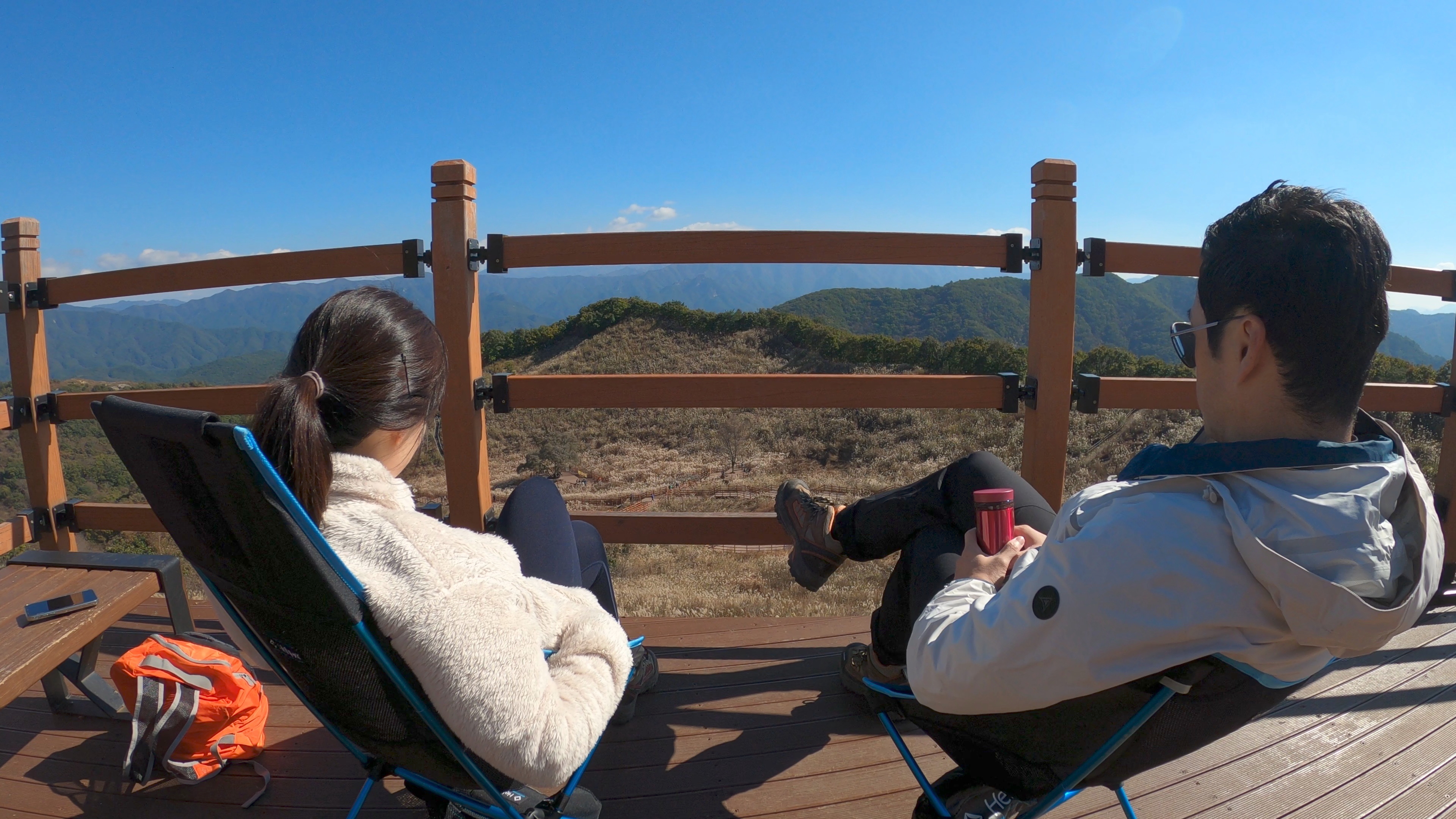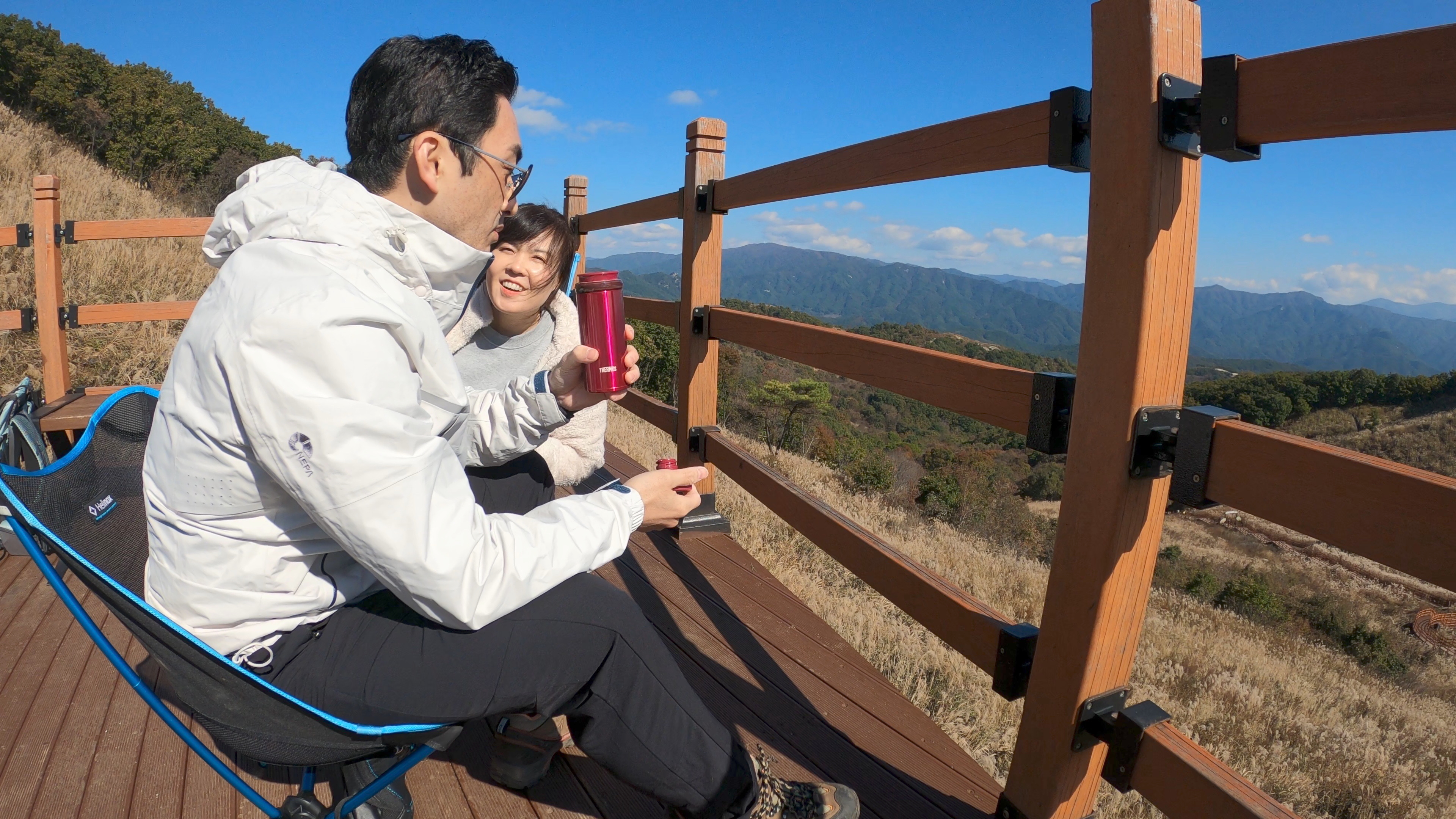 미리 준비해온 보온병의 커피를 마시며 경치 감상
