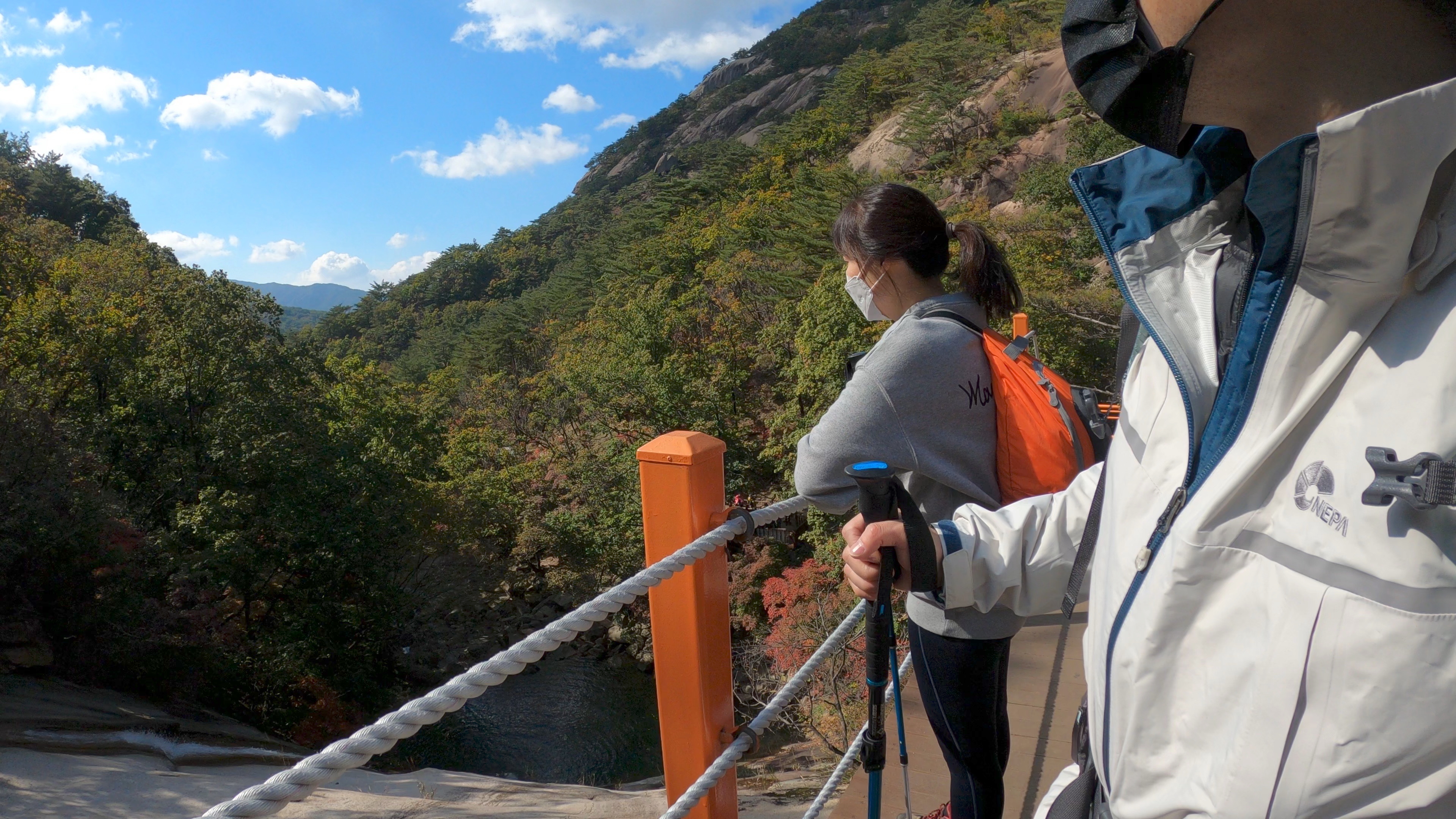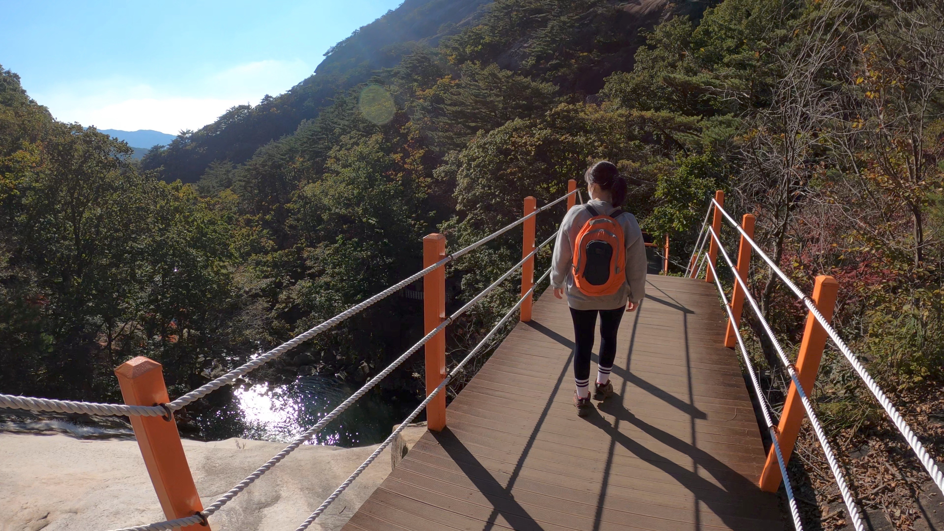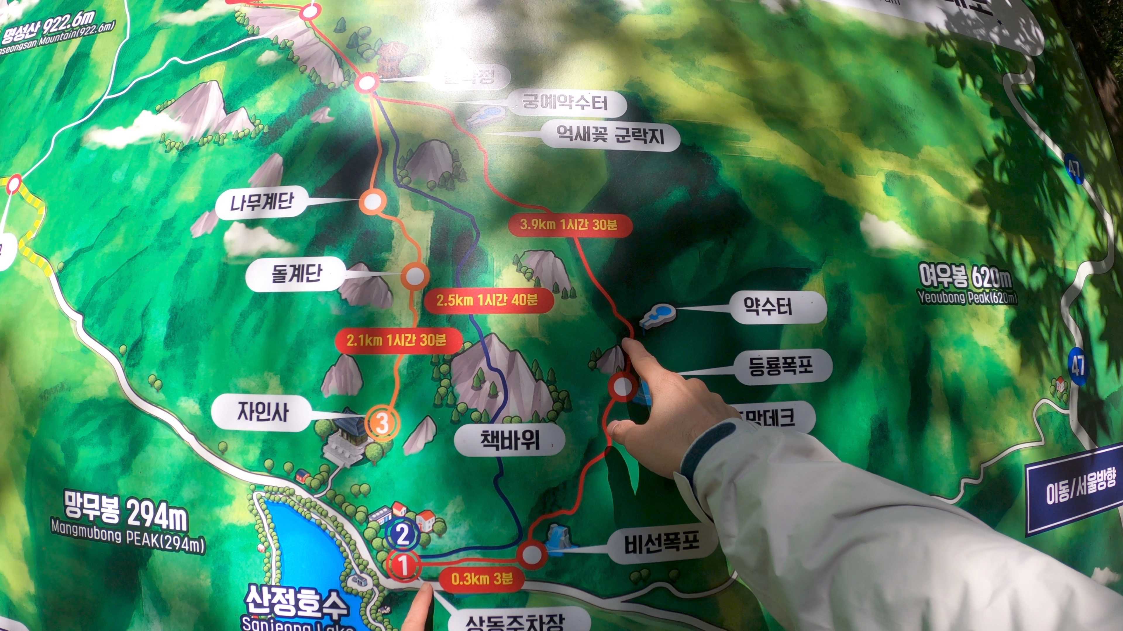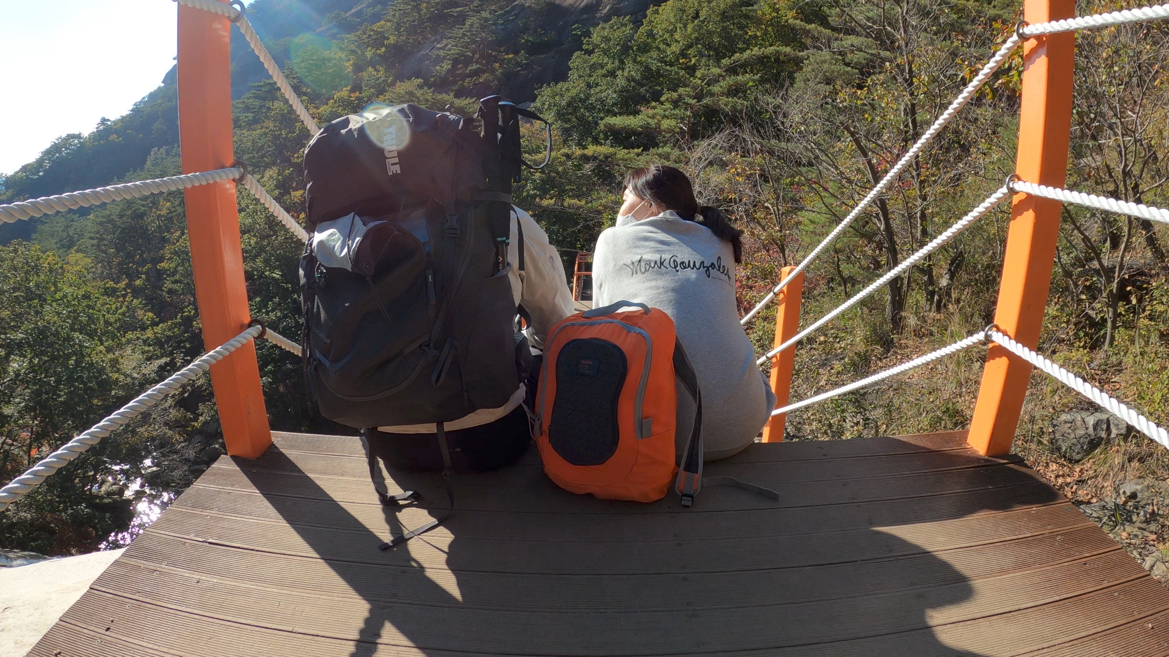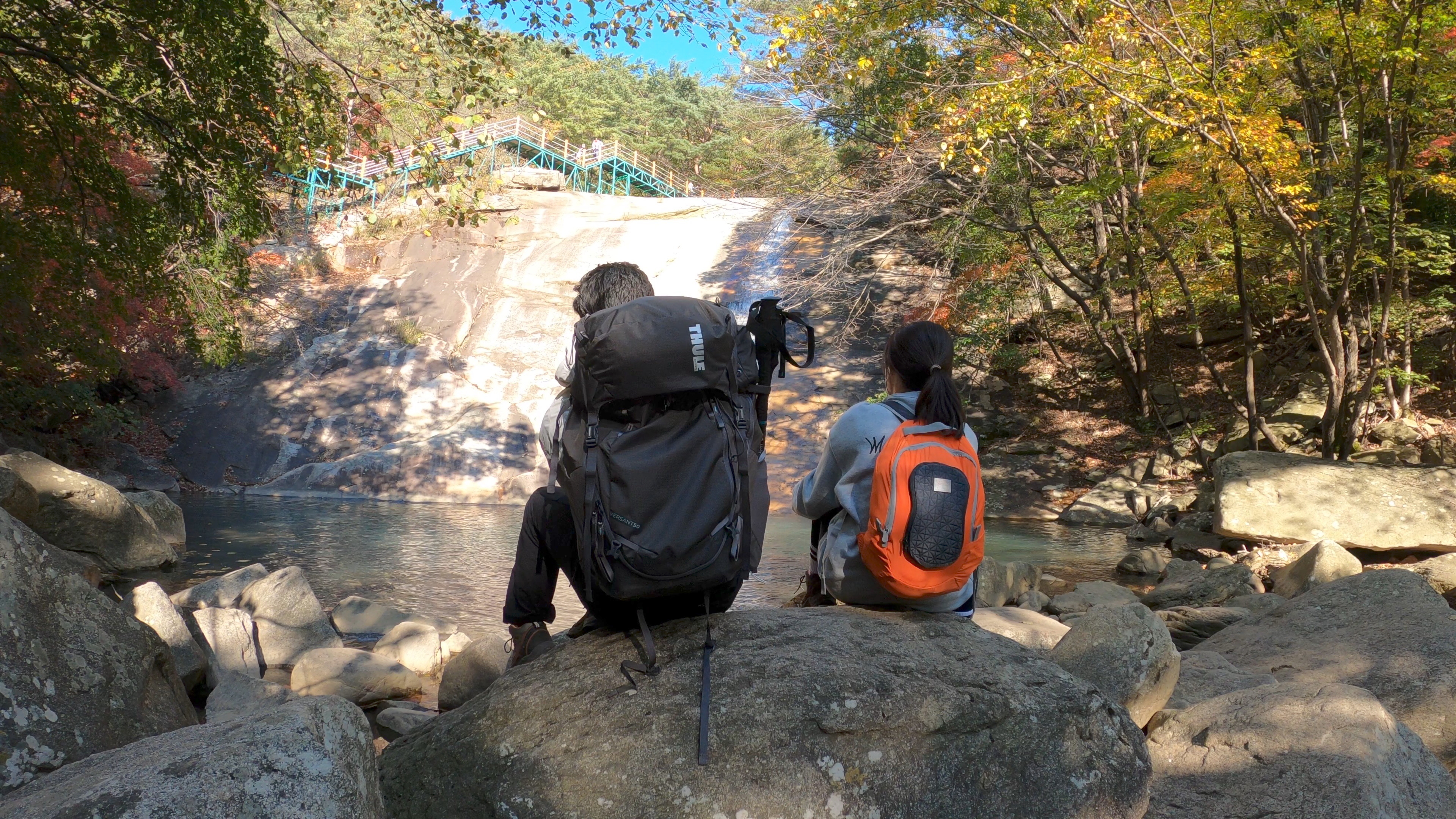 등룡폭포를 바라보며 잠시 휴식