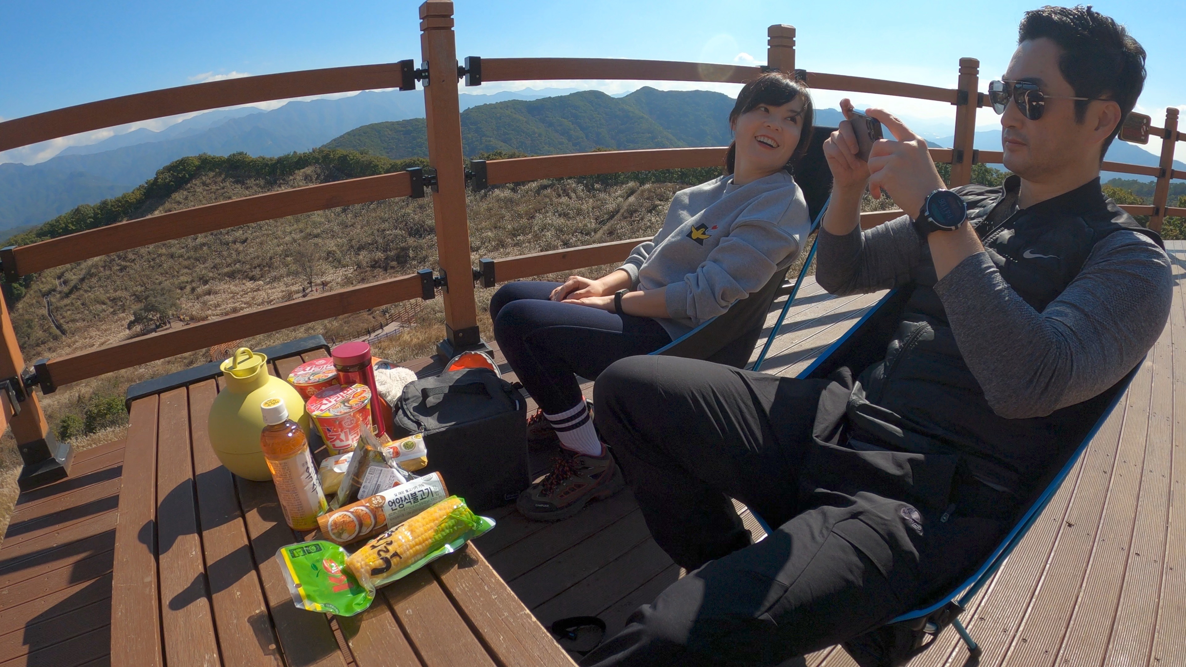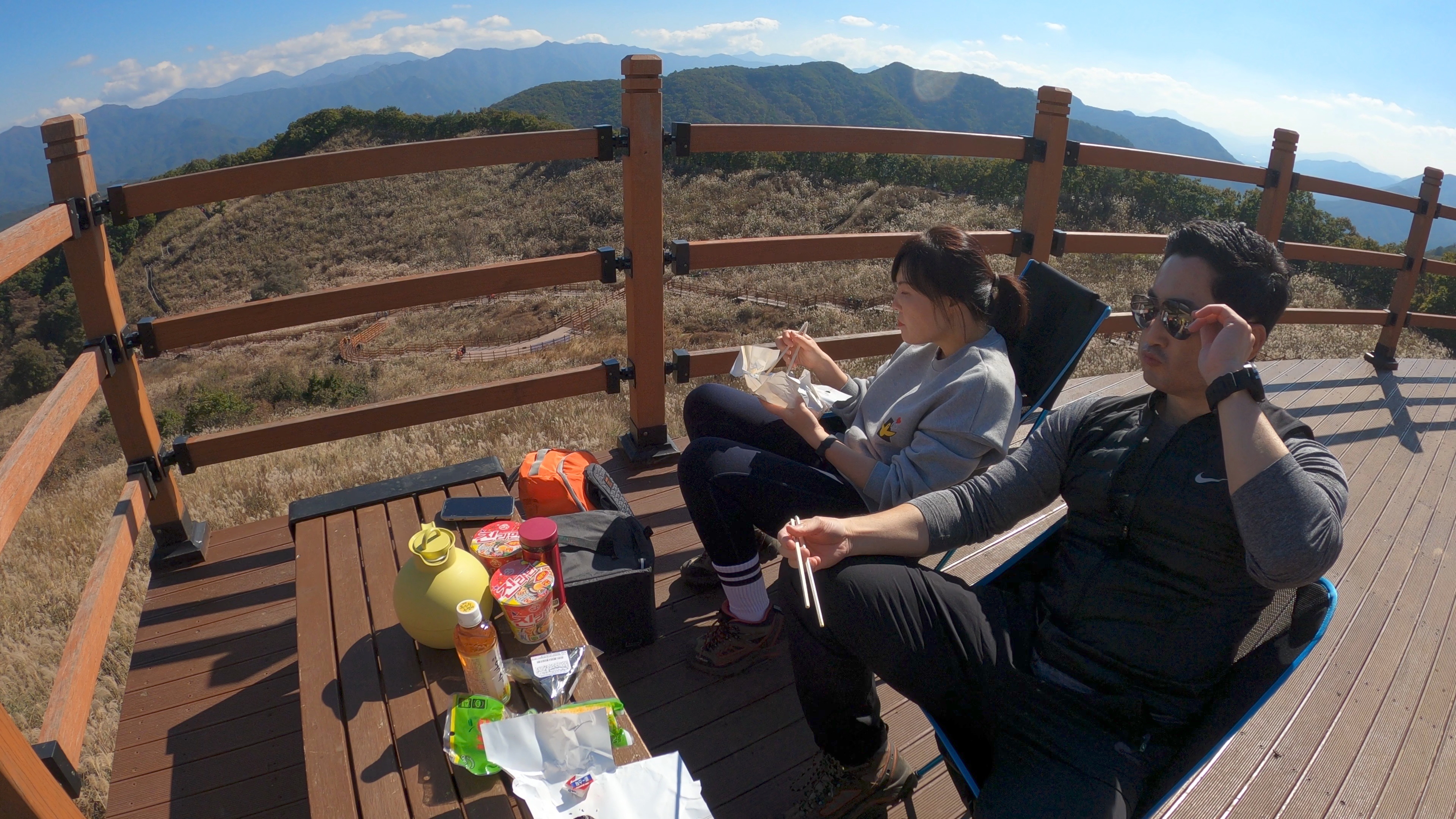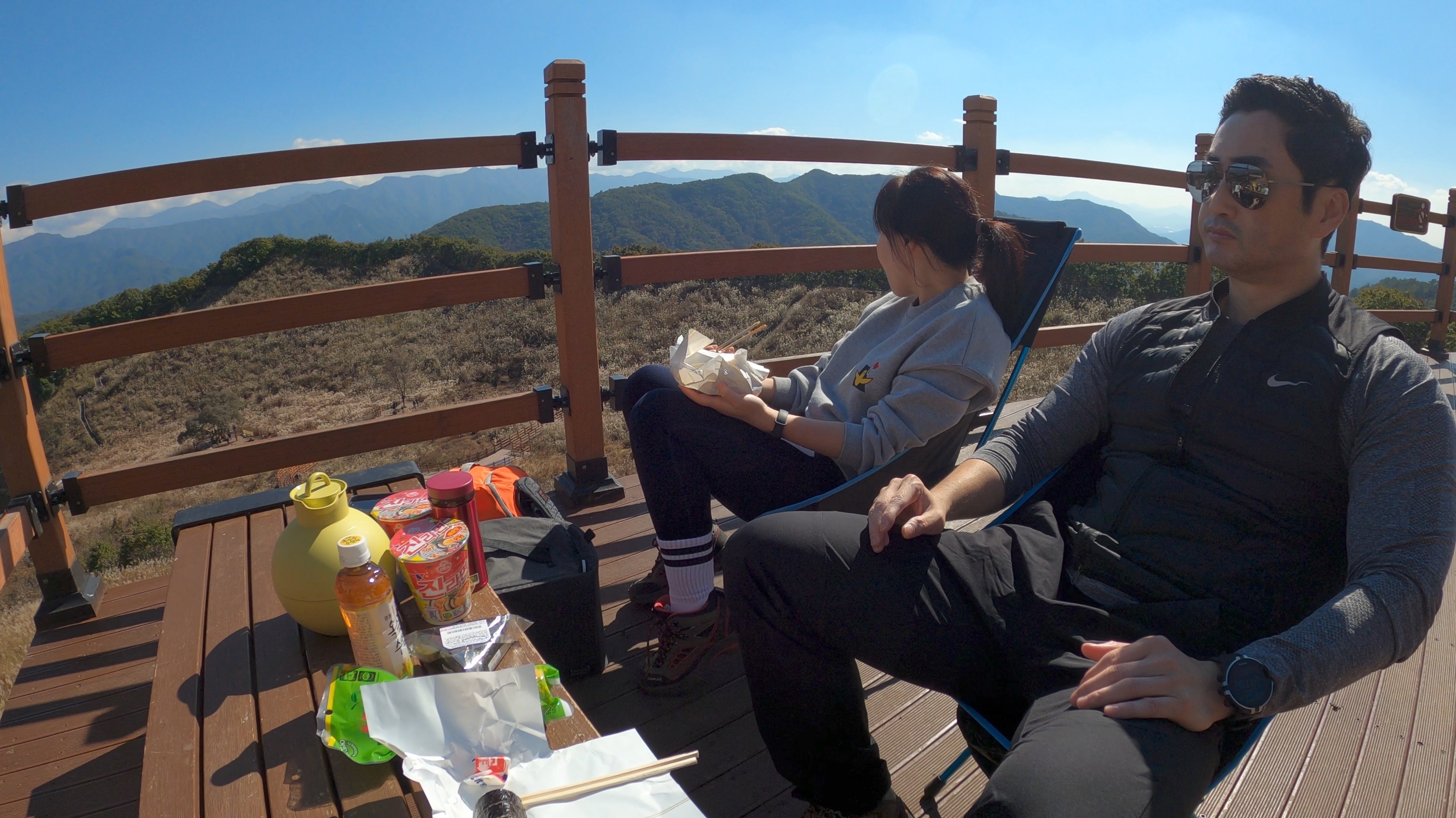 위쪽에 있는 전망데크에 자리를 펼치고 간단한 점심 시작.