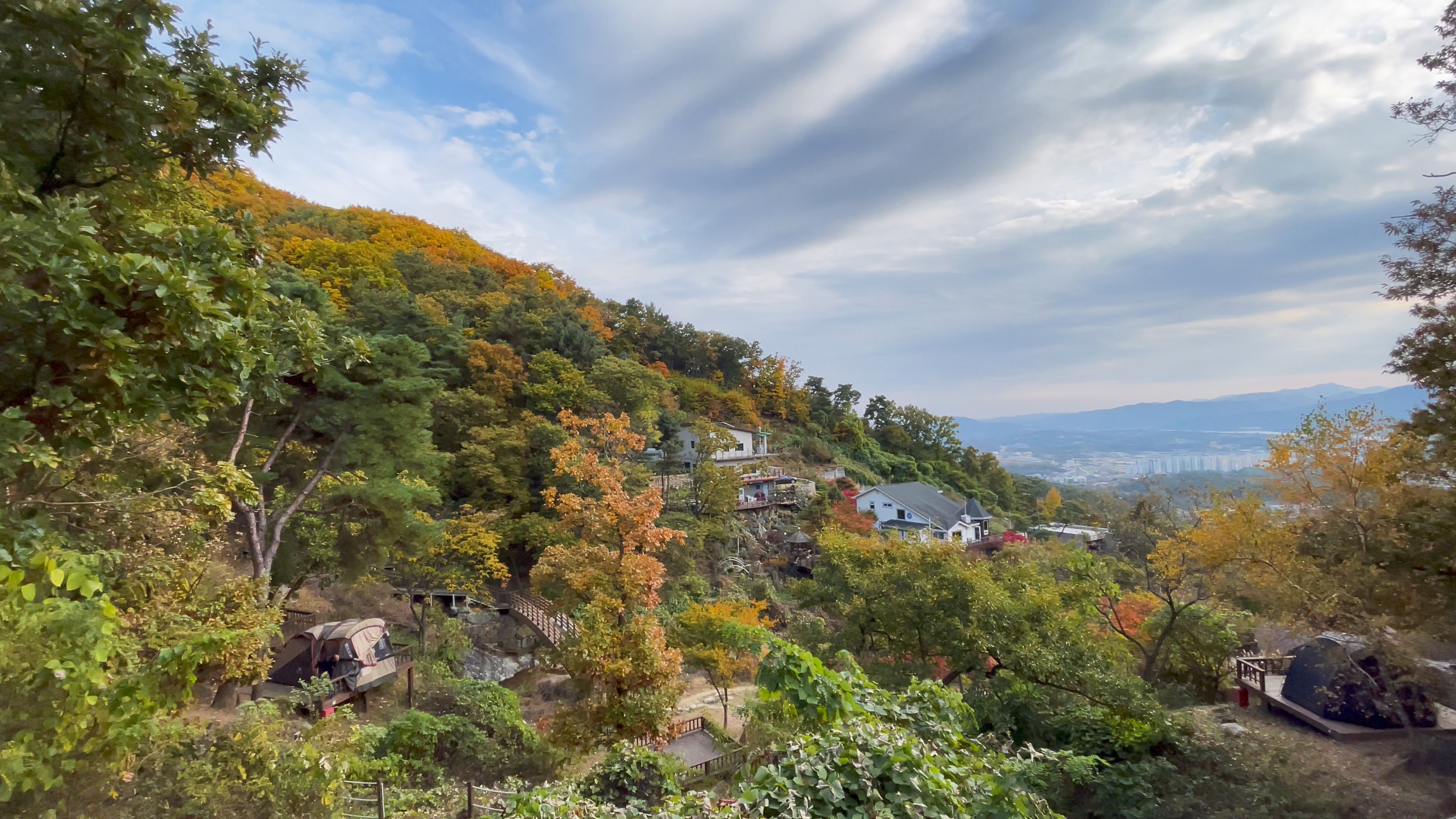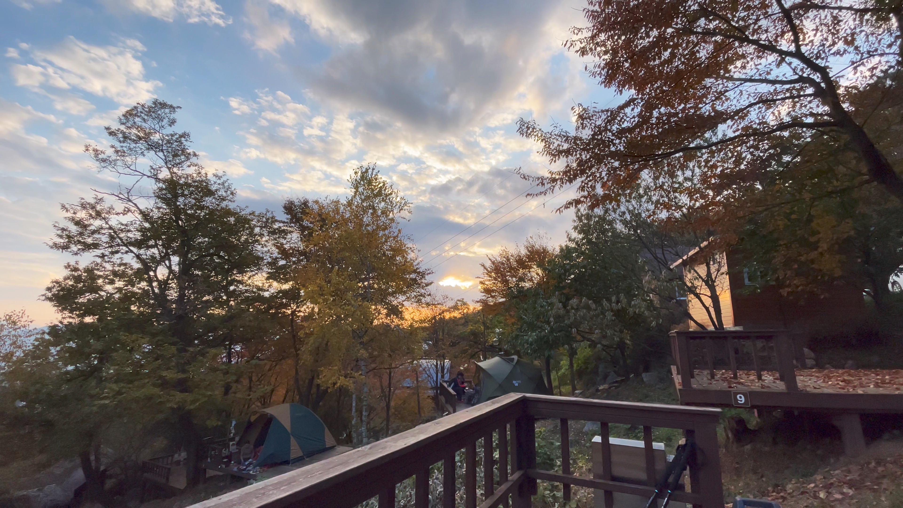 텐트 설치후 가볍게 맥주 한잔하고 주변 산책을 나섰더니, 여기저기 가을 단풍이 화사하다.