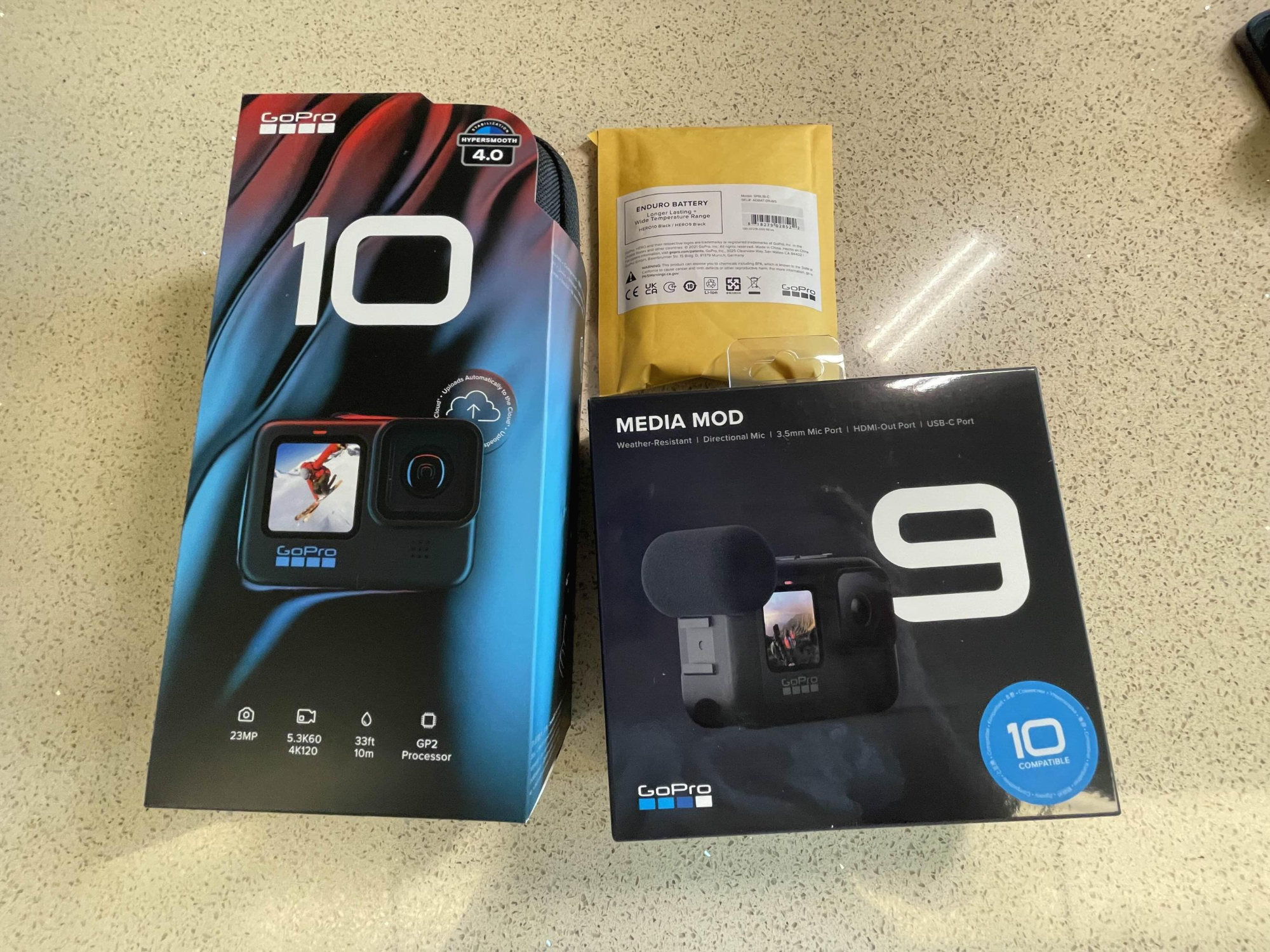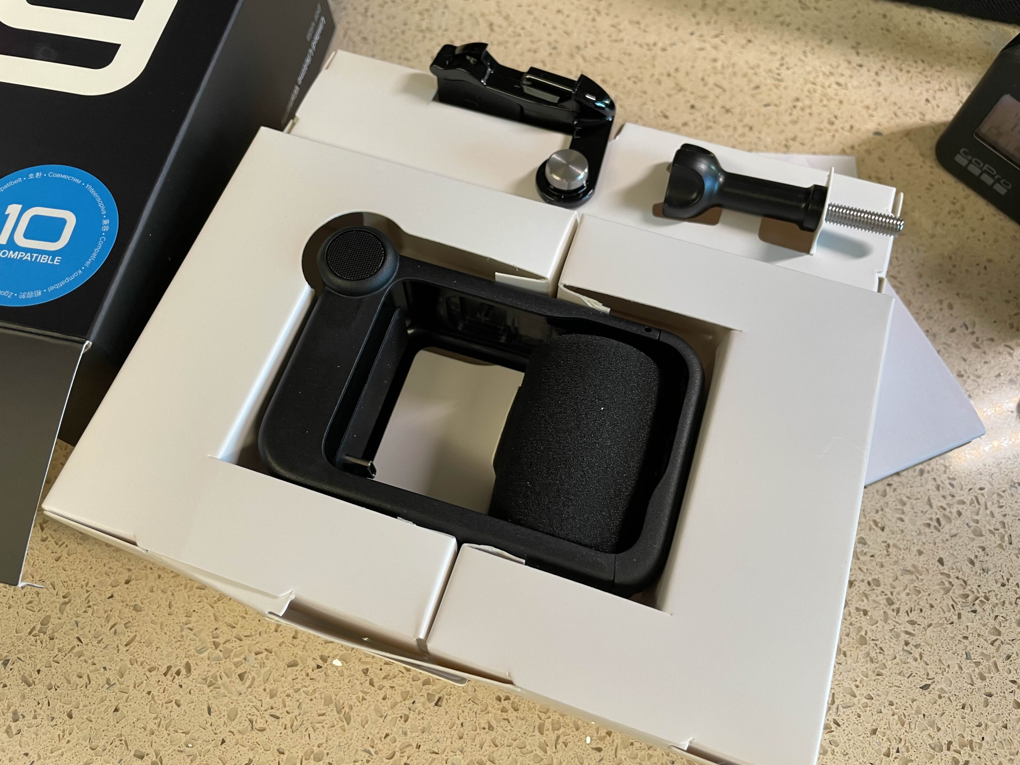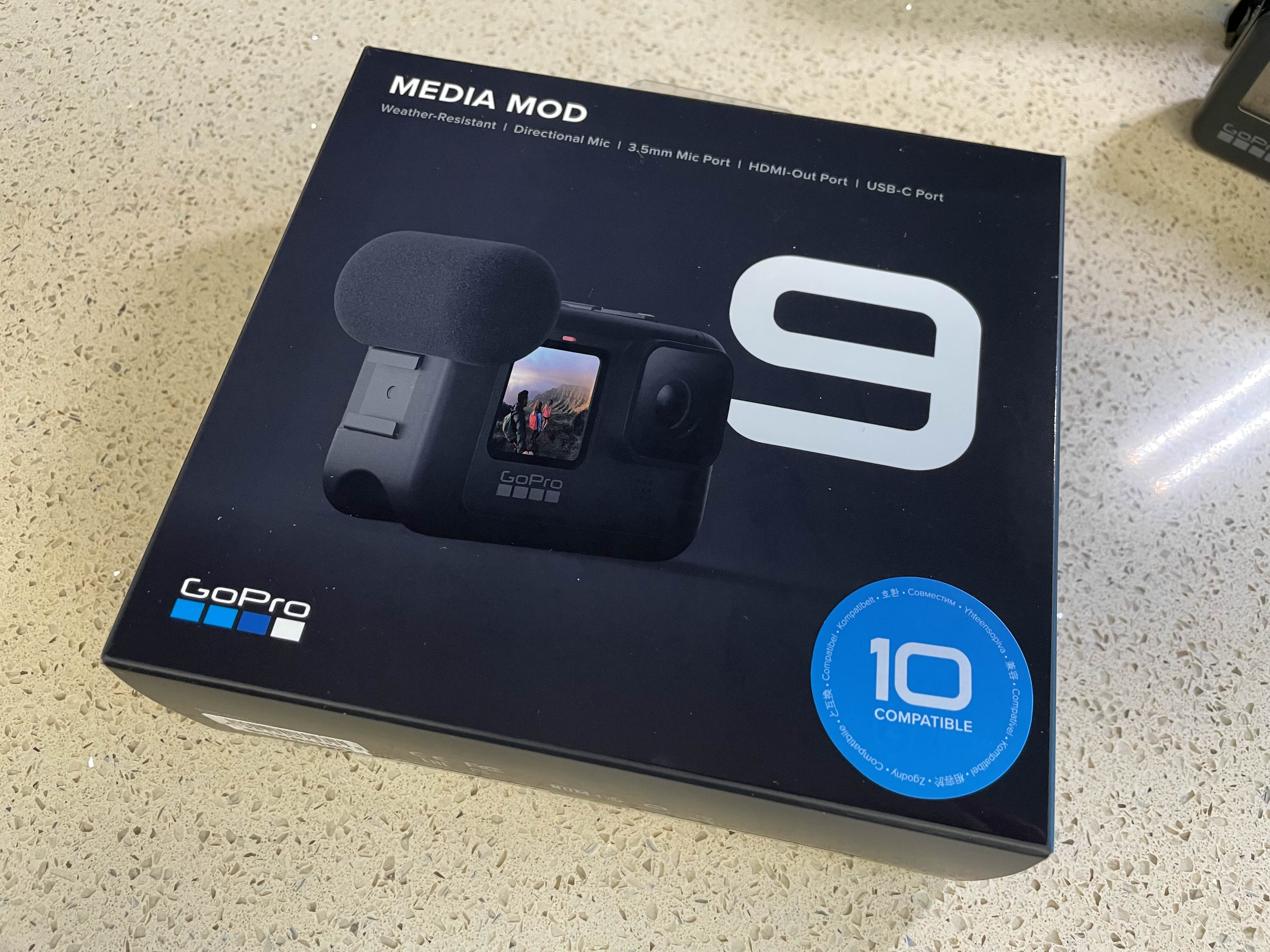 외장마이크 연결을 위해서 꼭 있어야 하는 부속품. 고프로8의 미디어모드가 있으나 사이즈가 커지는 바람에 맞질 않아 새로 구입해야 했다. 미디어모드가 9전용인데, 고프로9과 10은 같은 사이즈라, 스티커로 10 호환이라고 붙어있다.