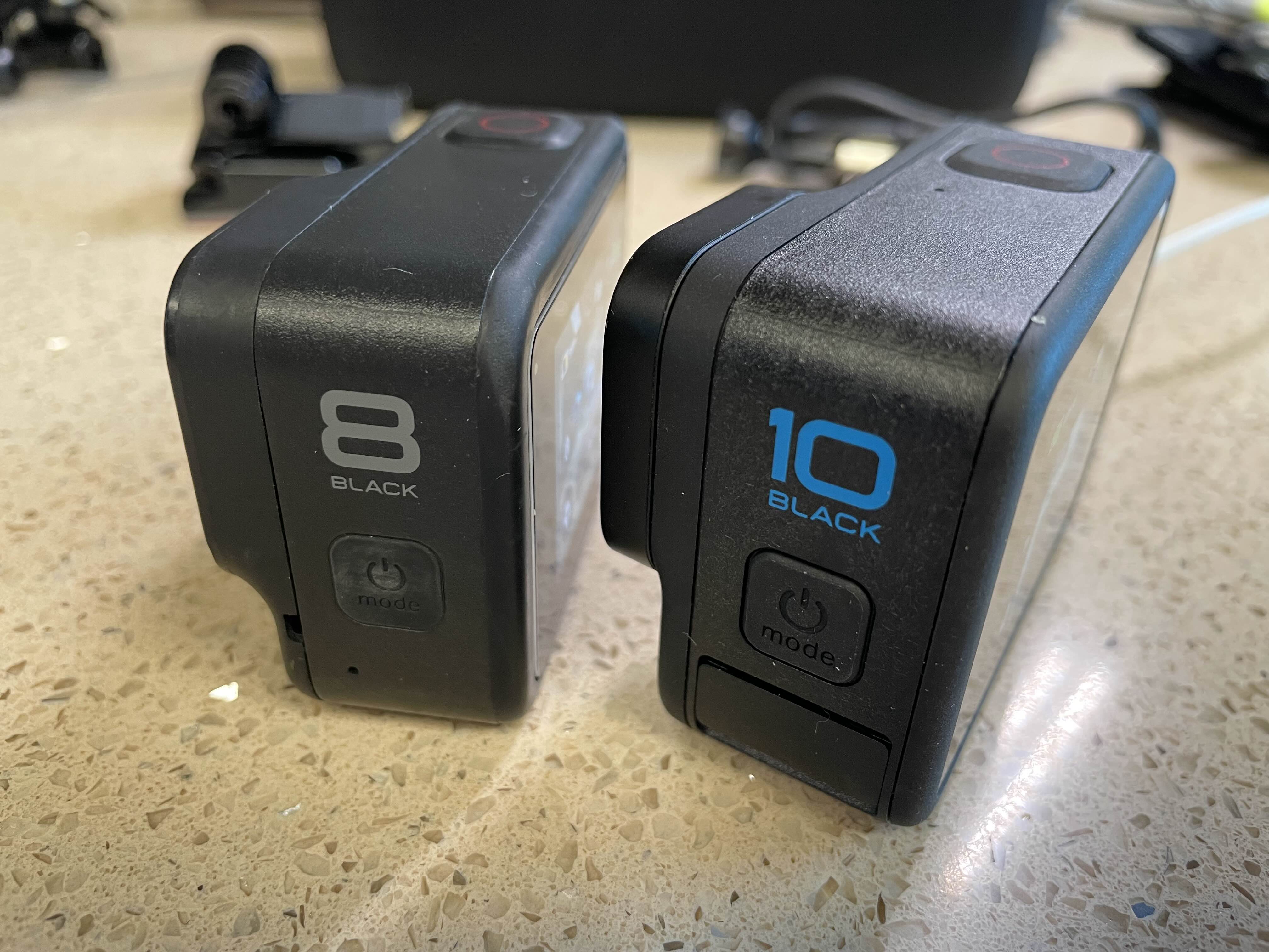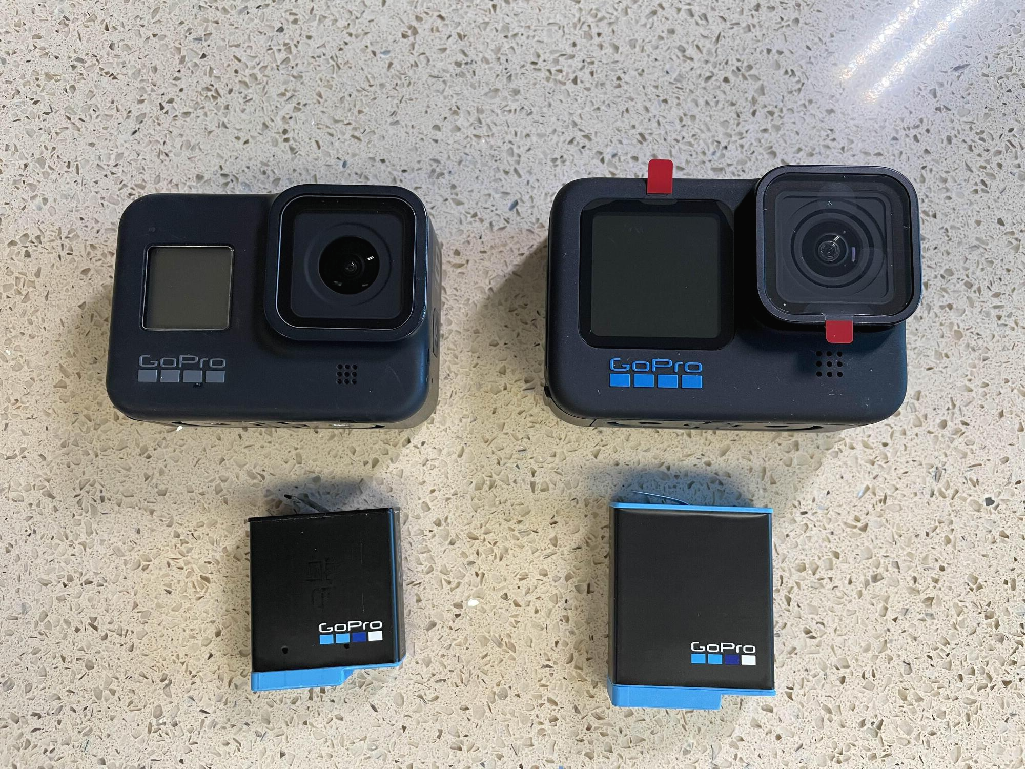 고프로 8과의 비교. 전체적으로 기기 사이즈가 커지고 배터리도 커졌다.