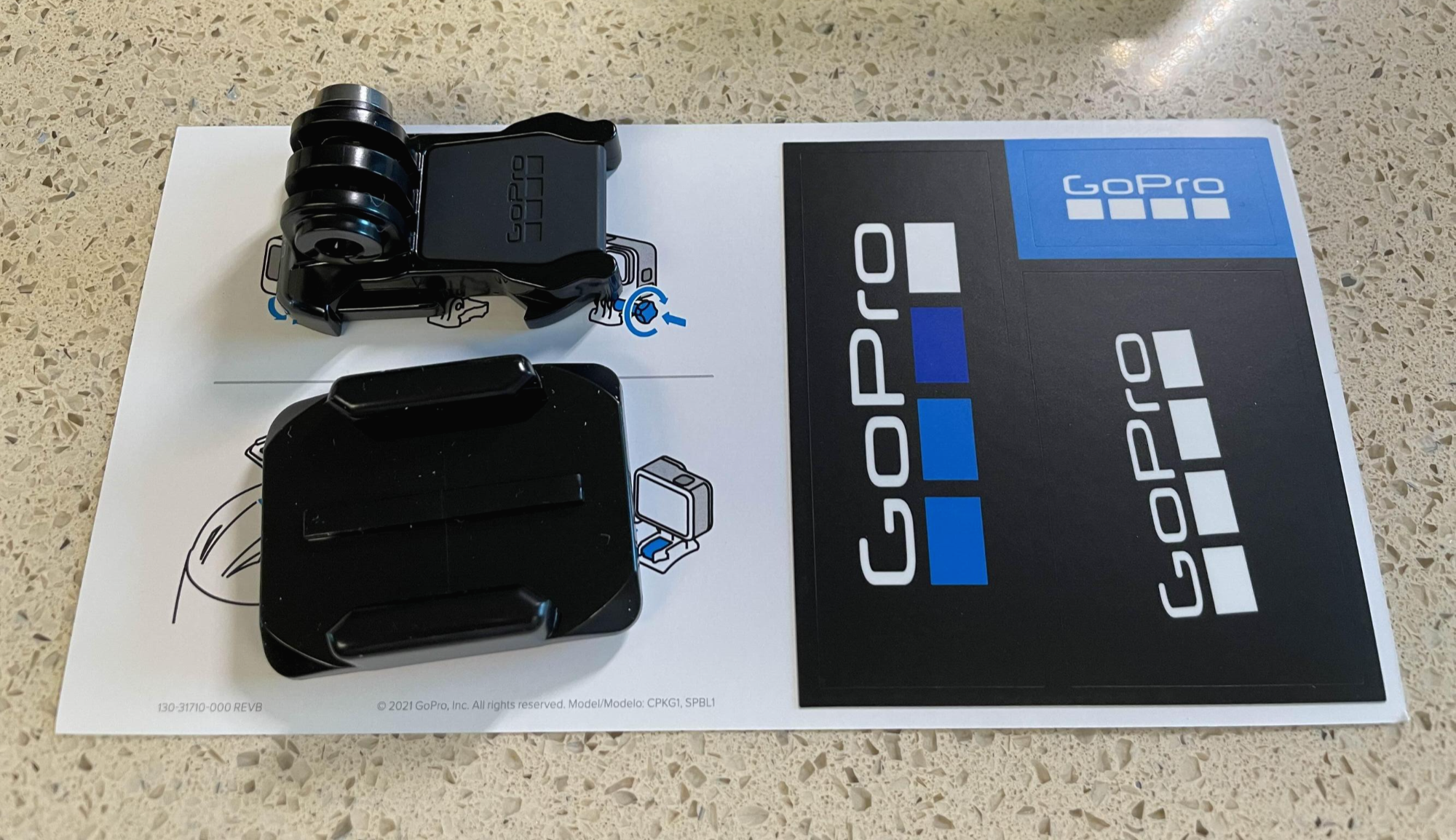 부속품으로 들어있던 곡선마운트와 브라켓. 스티커도 들어있다.