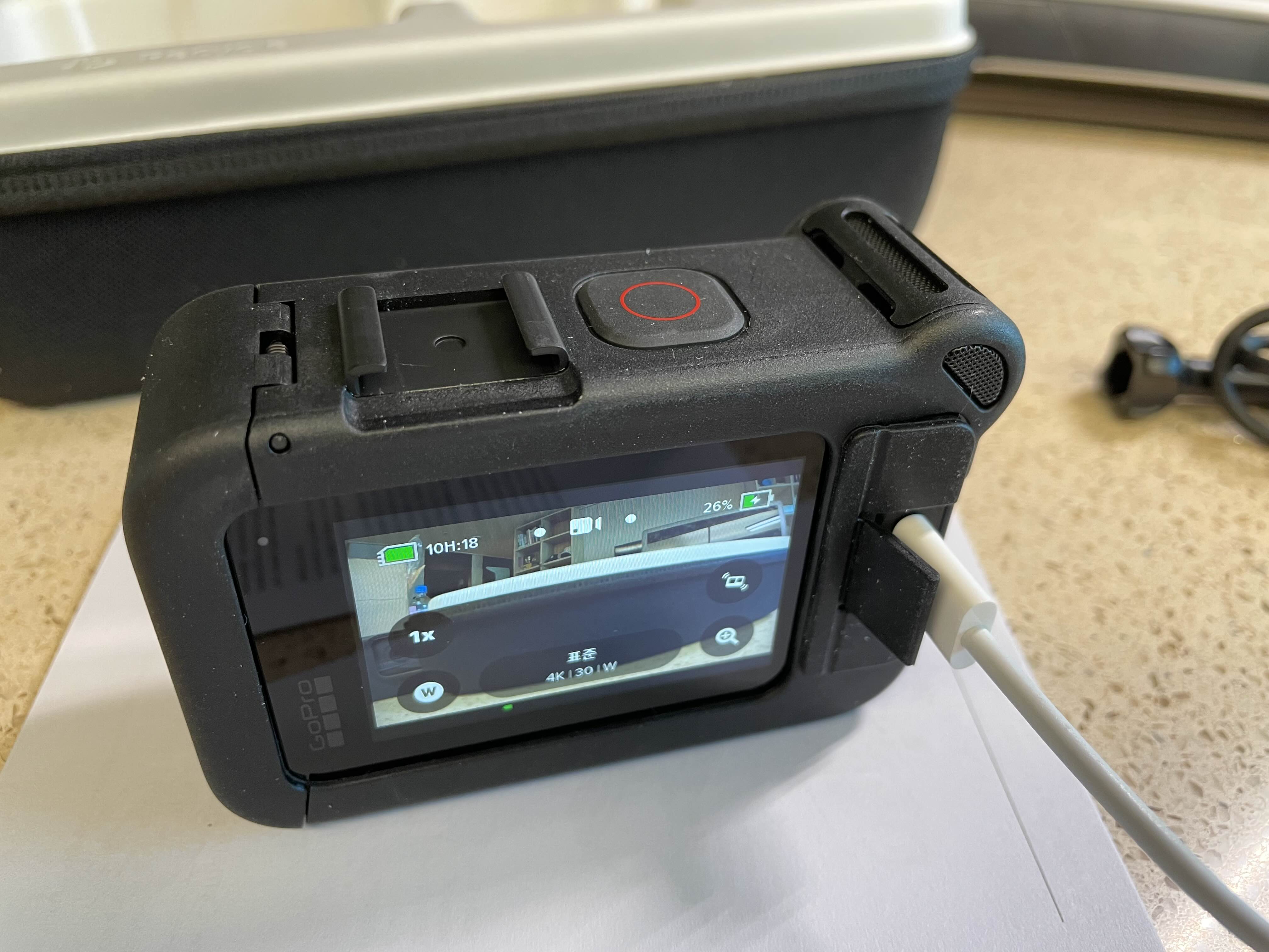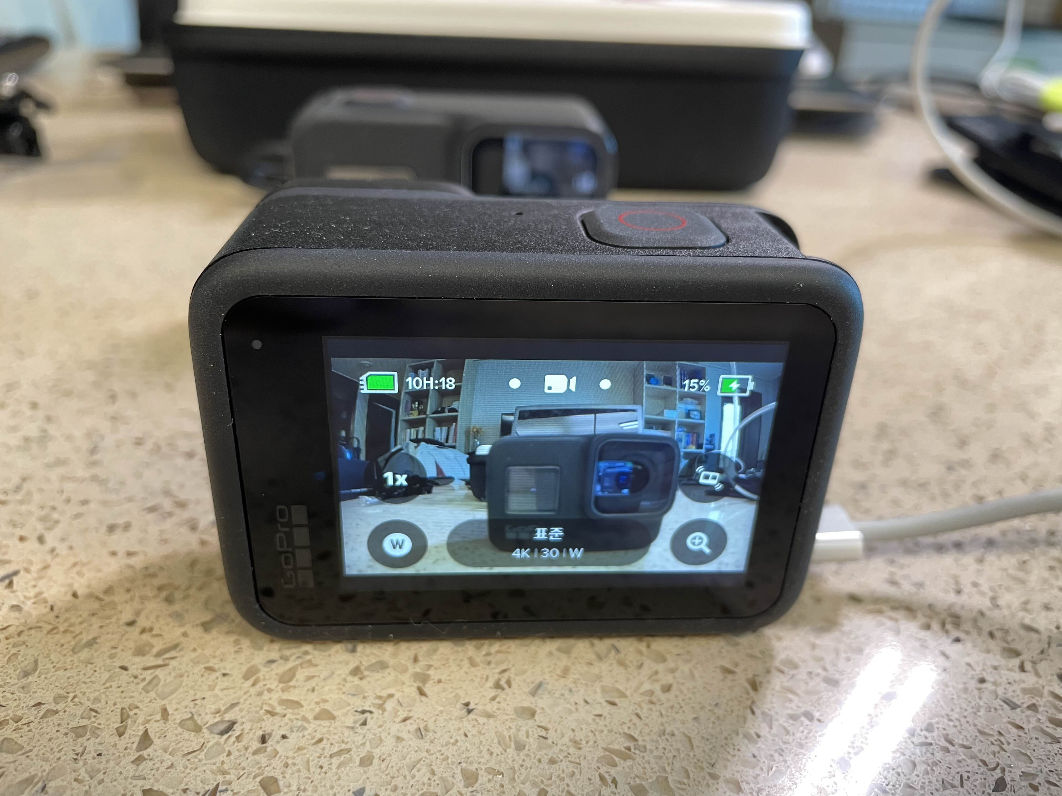받아들고 전원을 켜자 10% 남짓 배터리가 남아있어 바로 충전과 함께 펌웨어를 업데이트 하는데, 잠깐 조작해봐도 전작 고프로에 비해서 터치감감이 한츰 좋아졌음을 느낄수 있었다.
