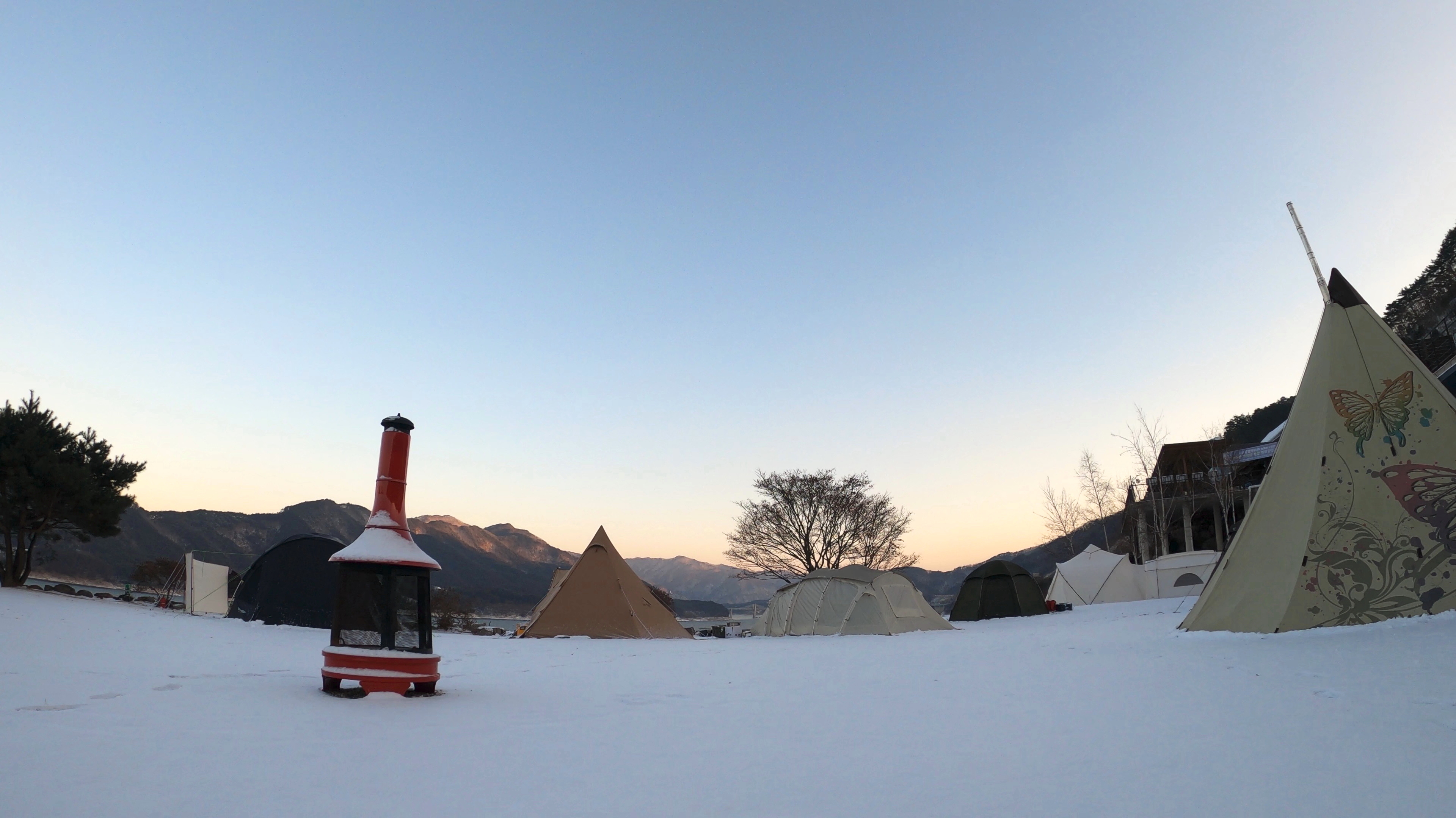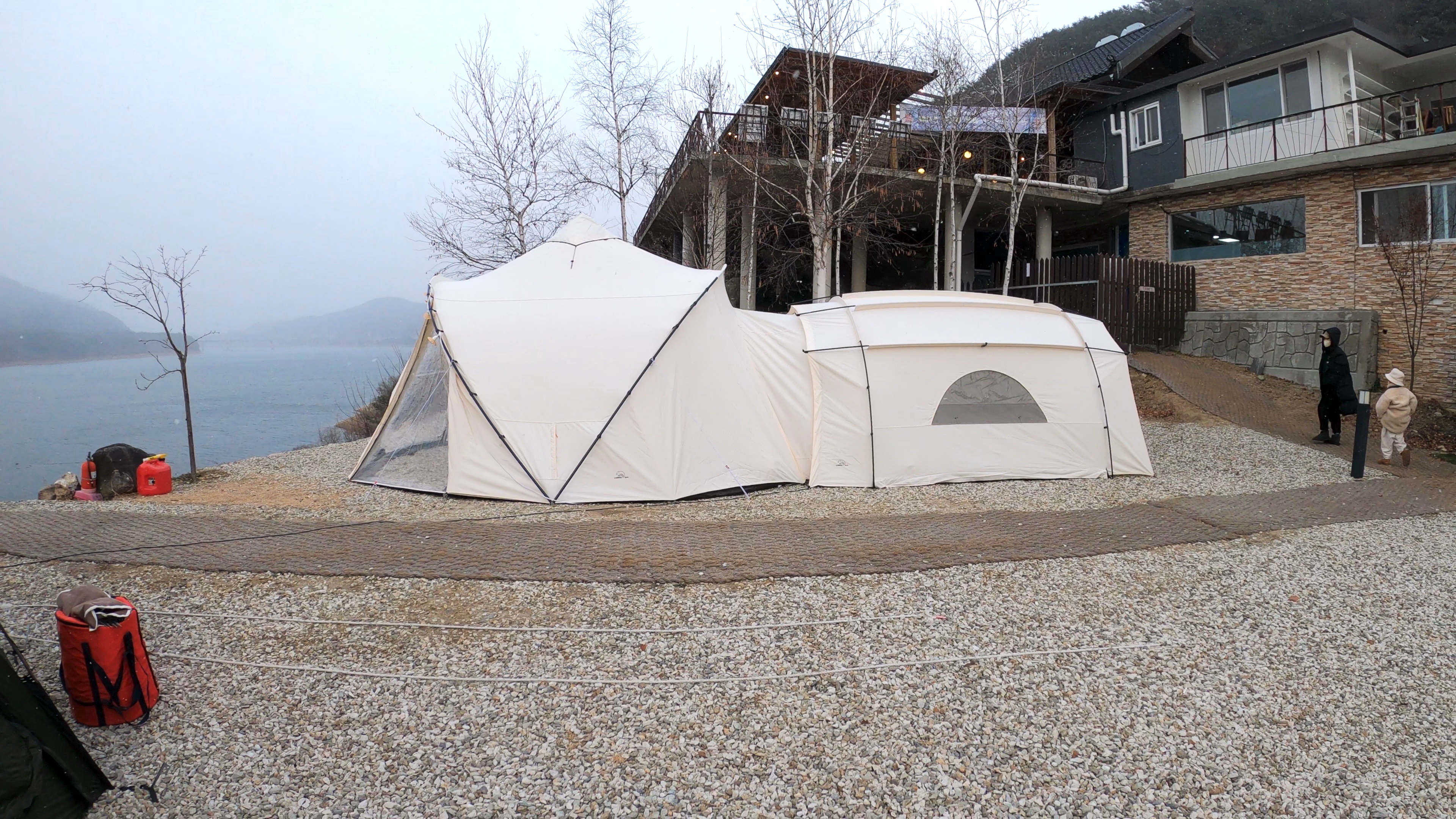 캠핑장 인근 구경. 다른 사이트는 다들 큰 리빙쉘 텐트들이다.