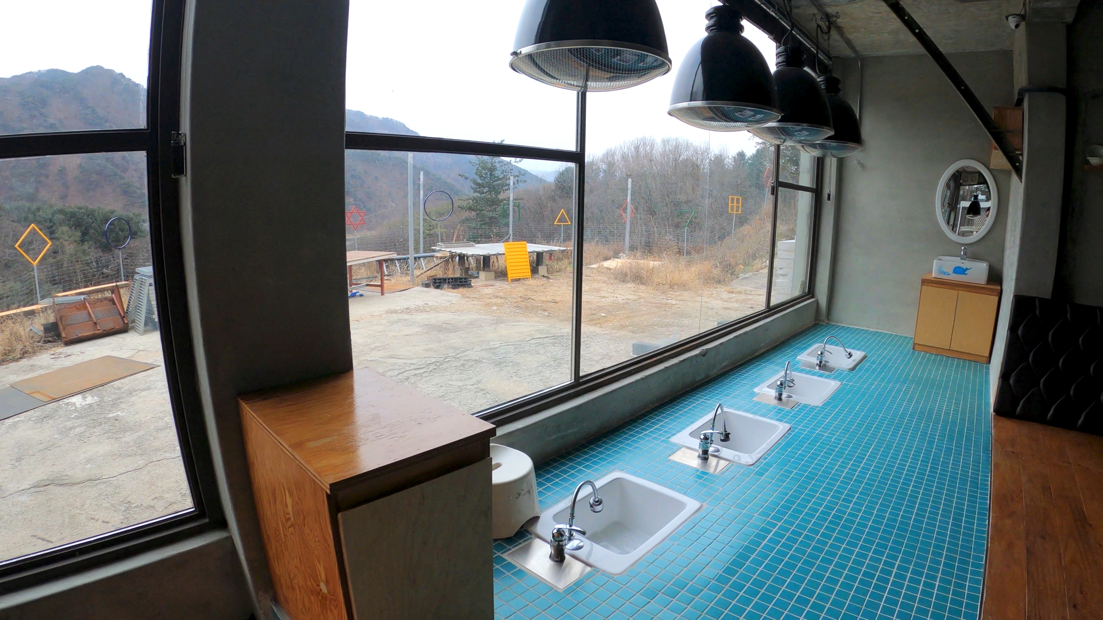 캠핑장 개수대와 샤워실. 깨끗하게 관리가 되고 있었다.