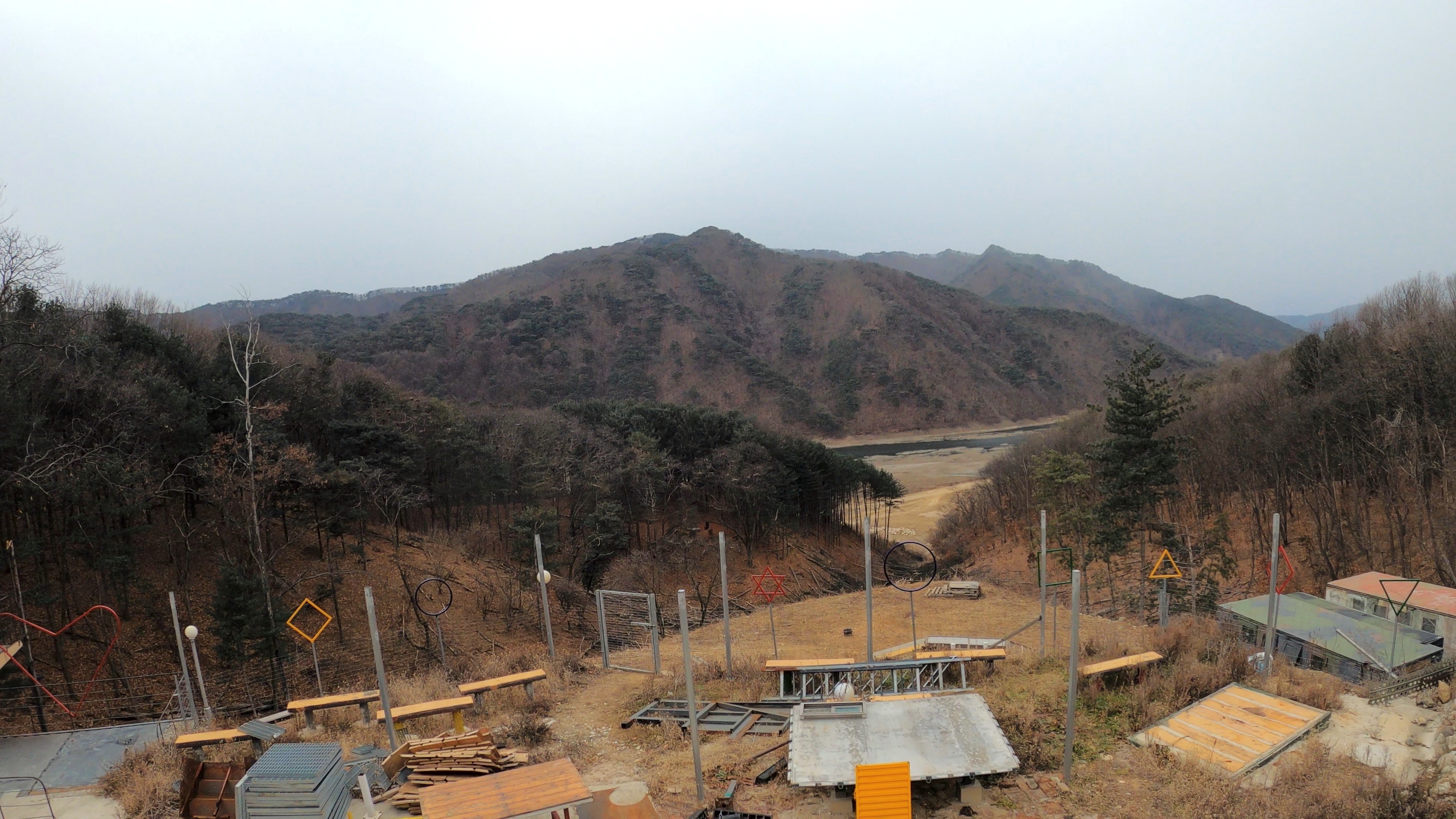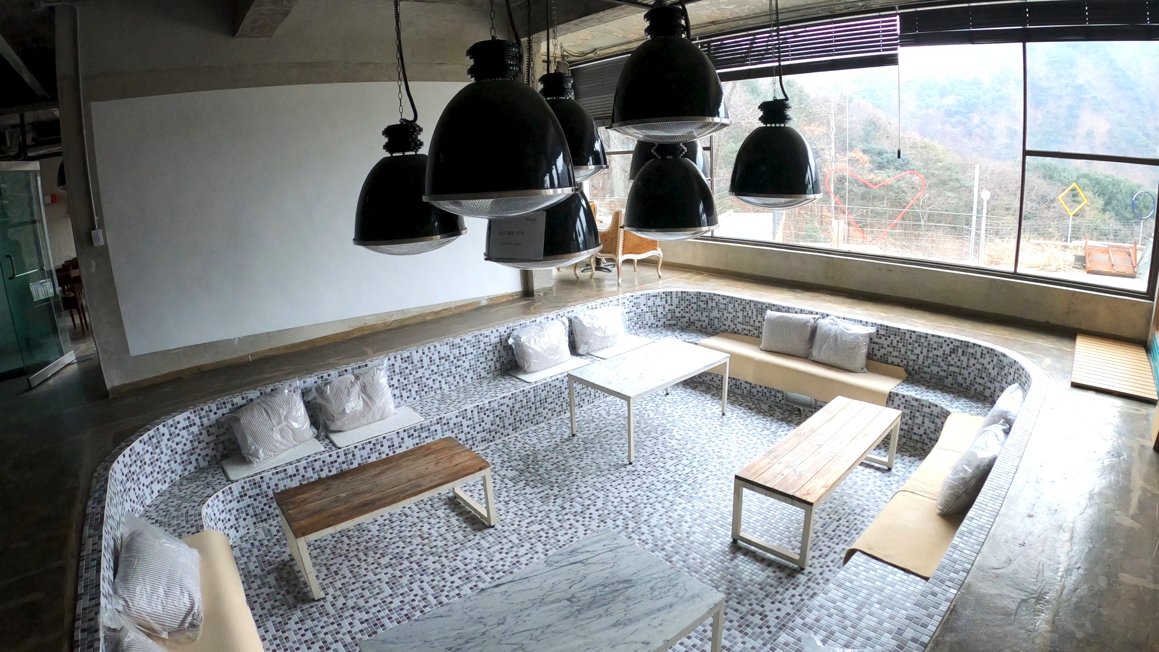 카페 밖에 내려다 보이는 풍경. 앞쪽으로 공사가 한창이었는데, 캠핑장으로 개조하는 중이라고 한다.