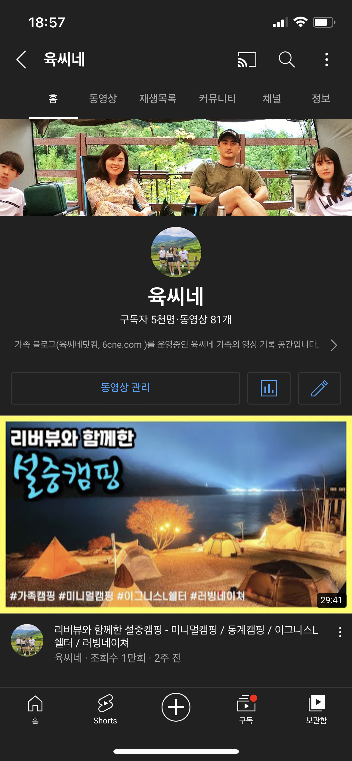 오늘부로 구독자 5천명, 캠핑이라는 주제로 사람들이 찾기 시작한 채널인데 내가 캠핑 유튜브가 맞나 싶기도 하고,,