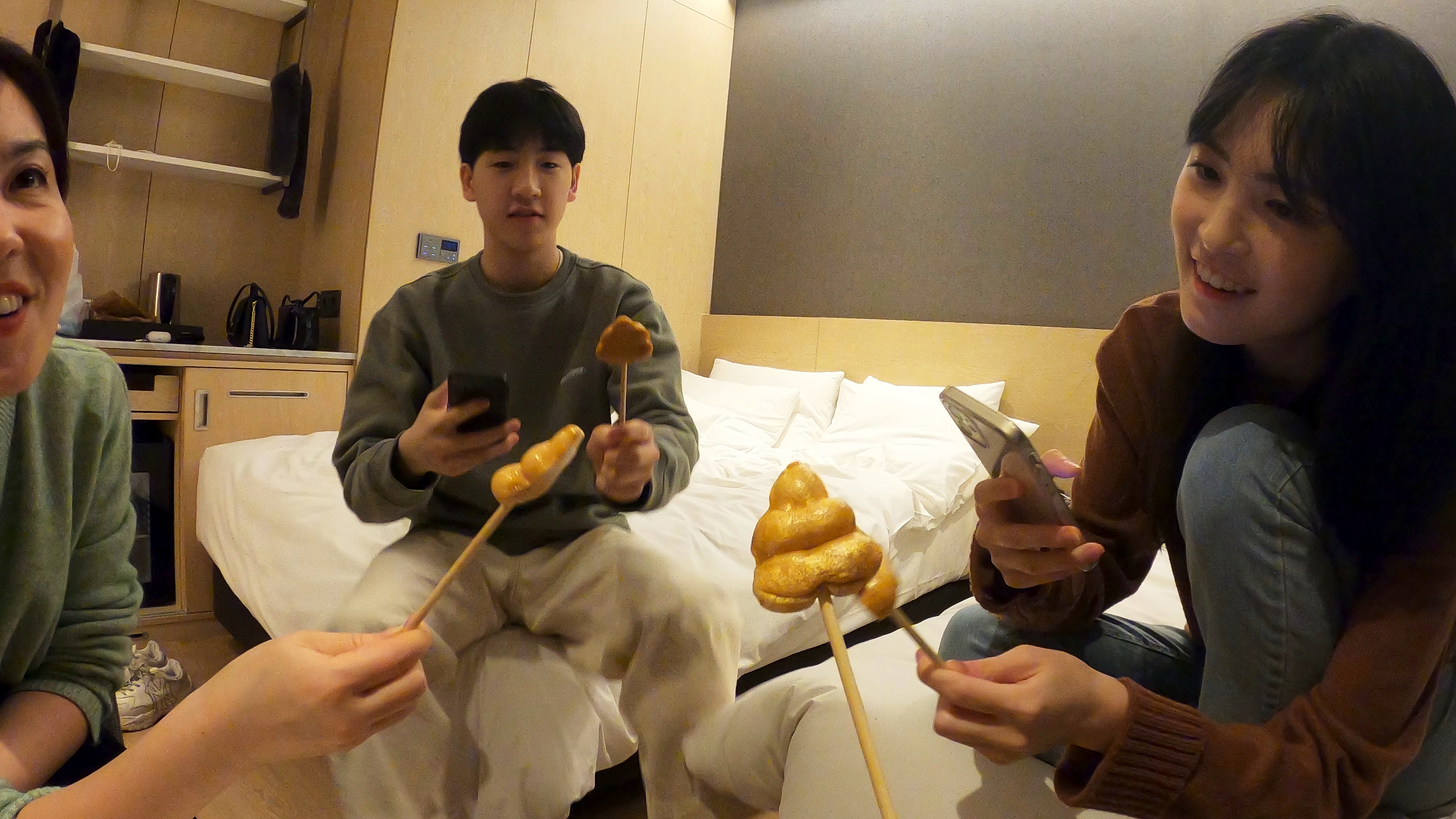 호텔 편의점에서 산 달고나로 크리스마스 파티