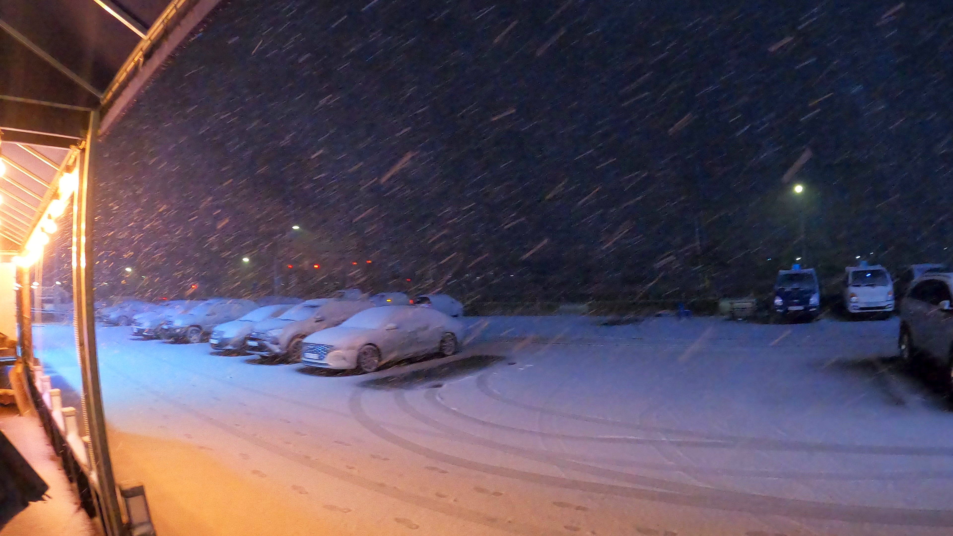 카페 앞 도로는 눈으로 이미 난장판이고, 차 바퀴가 헛돌아 밀어주는 차들도 보이고, 난리였다. 호텔 야외에 주차를 해 둔 터라, 조금 있다가 같은 상황을 겪게 될것이라 걱정이 좀 되긴 했다.